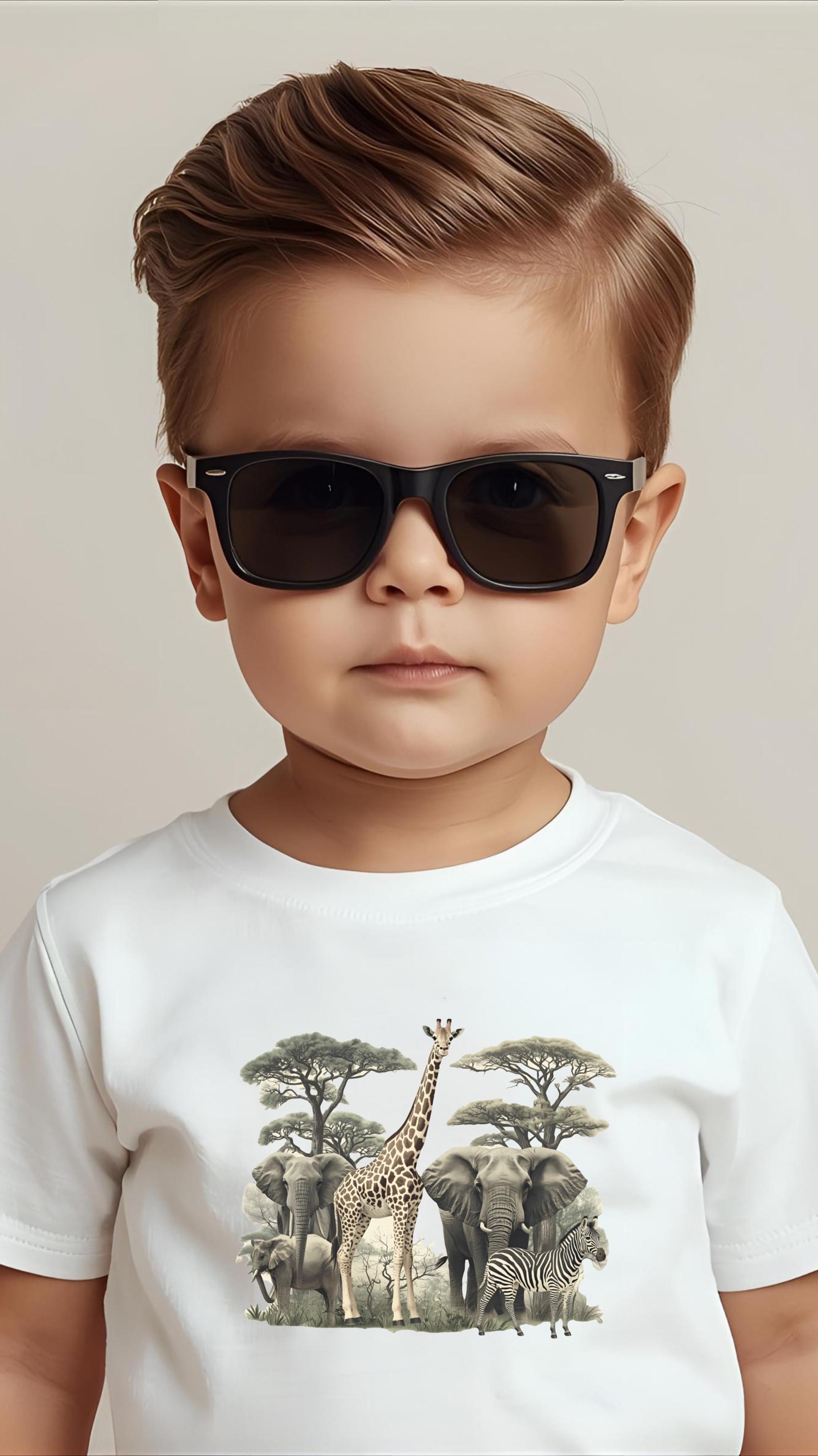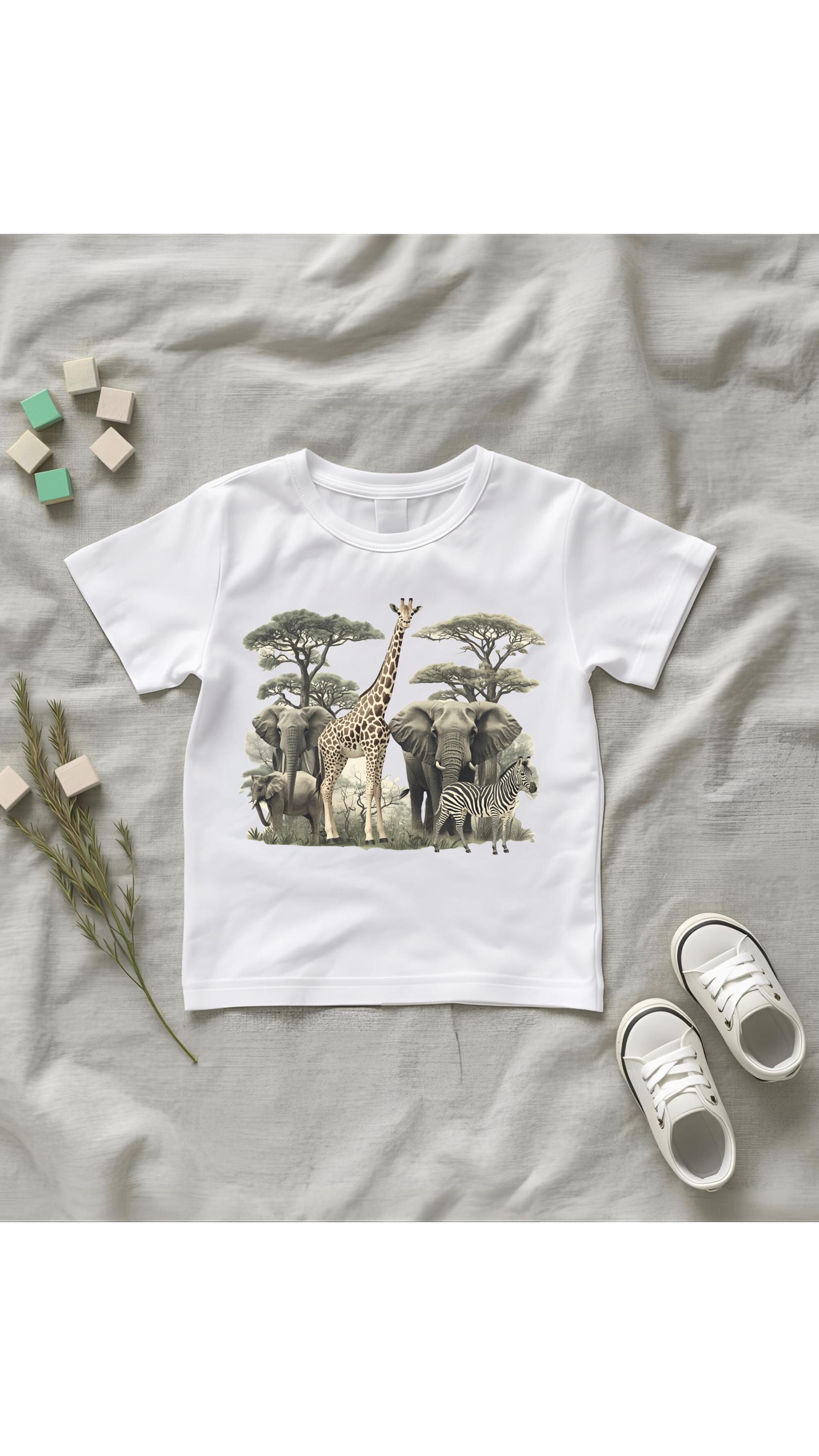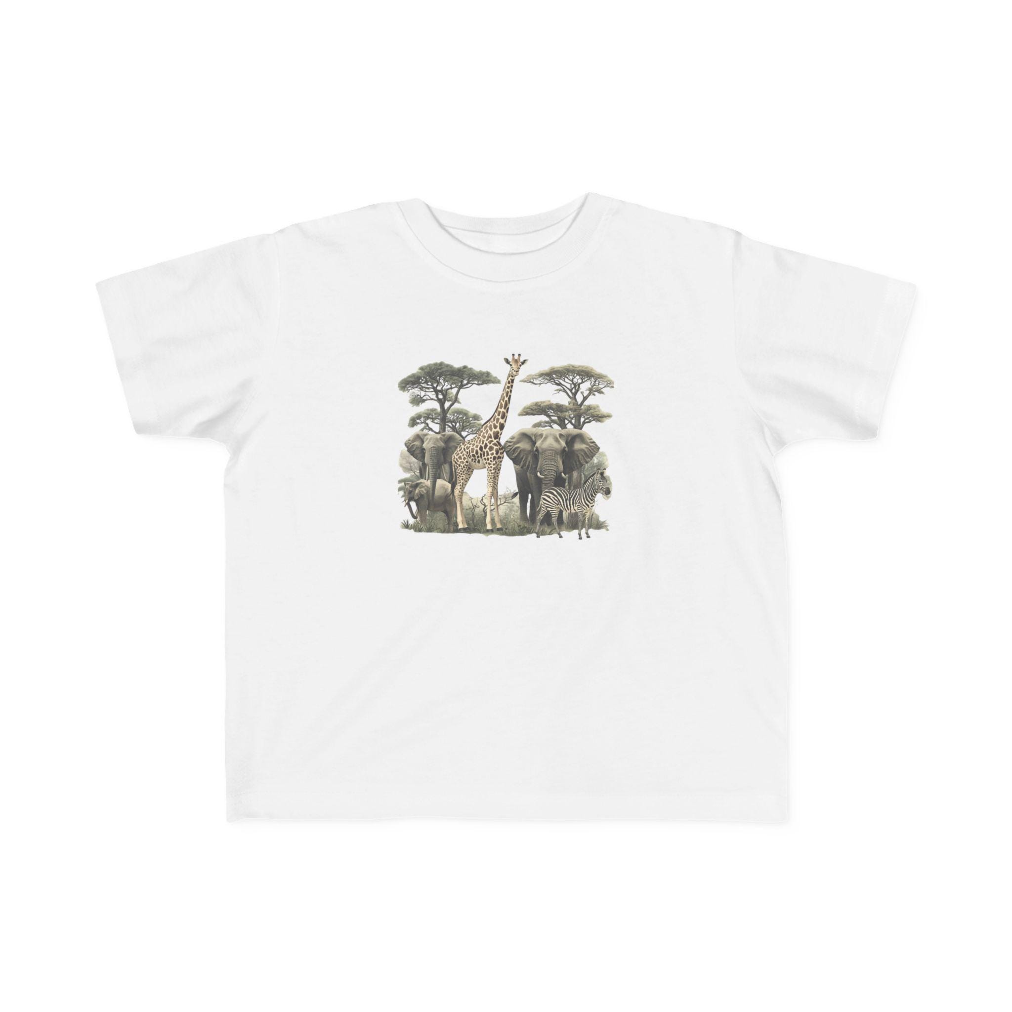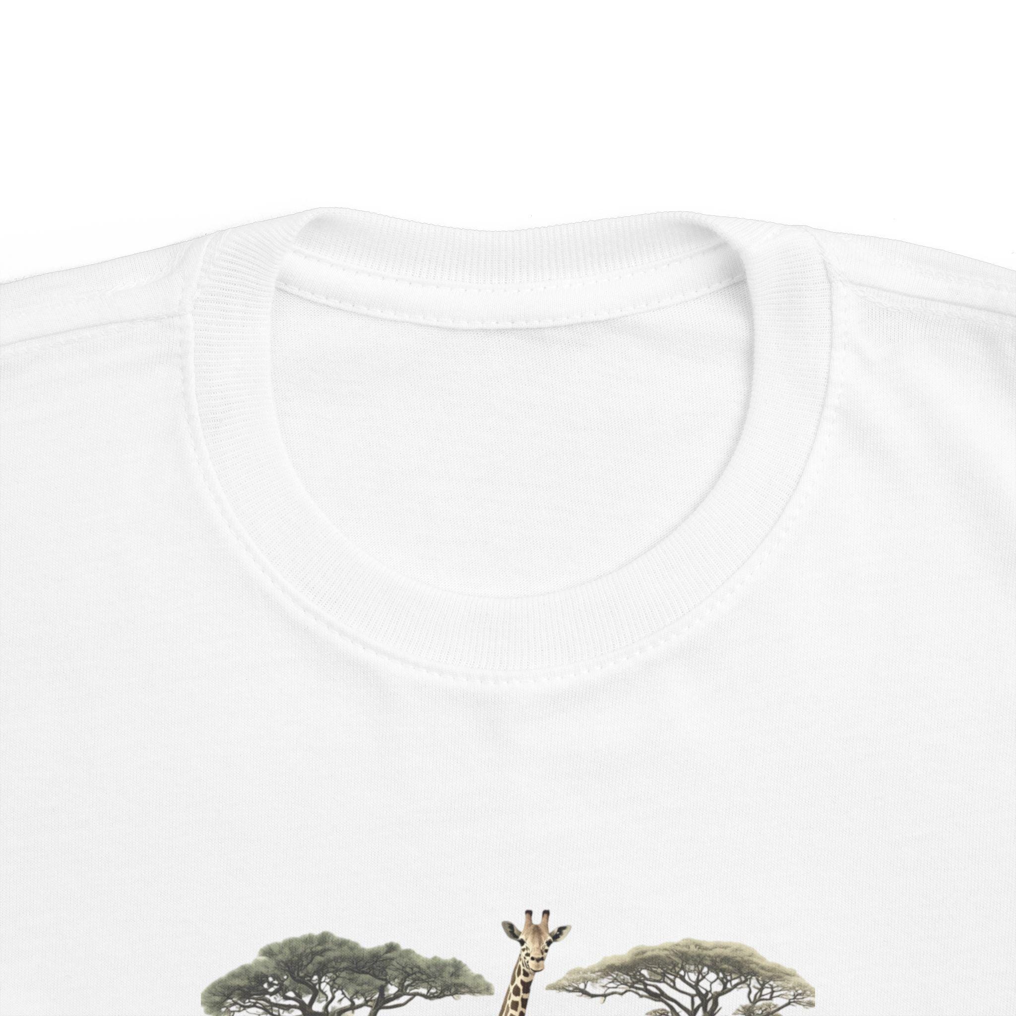 Retro vibes safari-themed tee for toddlers, perfect for the adventurous and stylish little ones. This tee brings a fun and playful feel to your child's wardrobe, ideal for casual outings and playdates. Relevant for birthdays, holidays, and everyday wear.