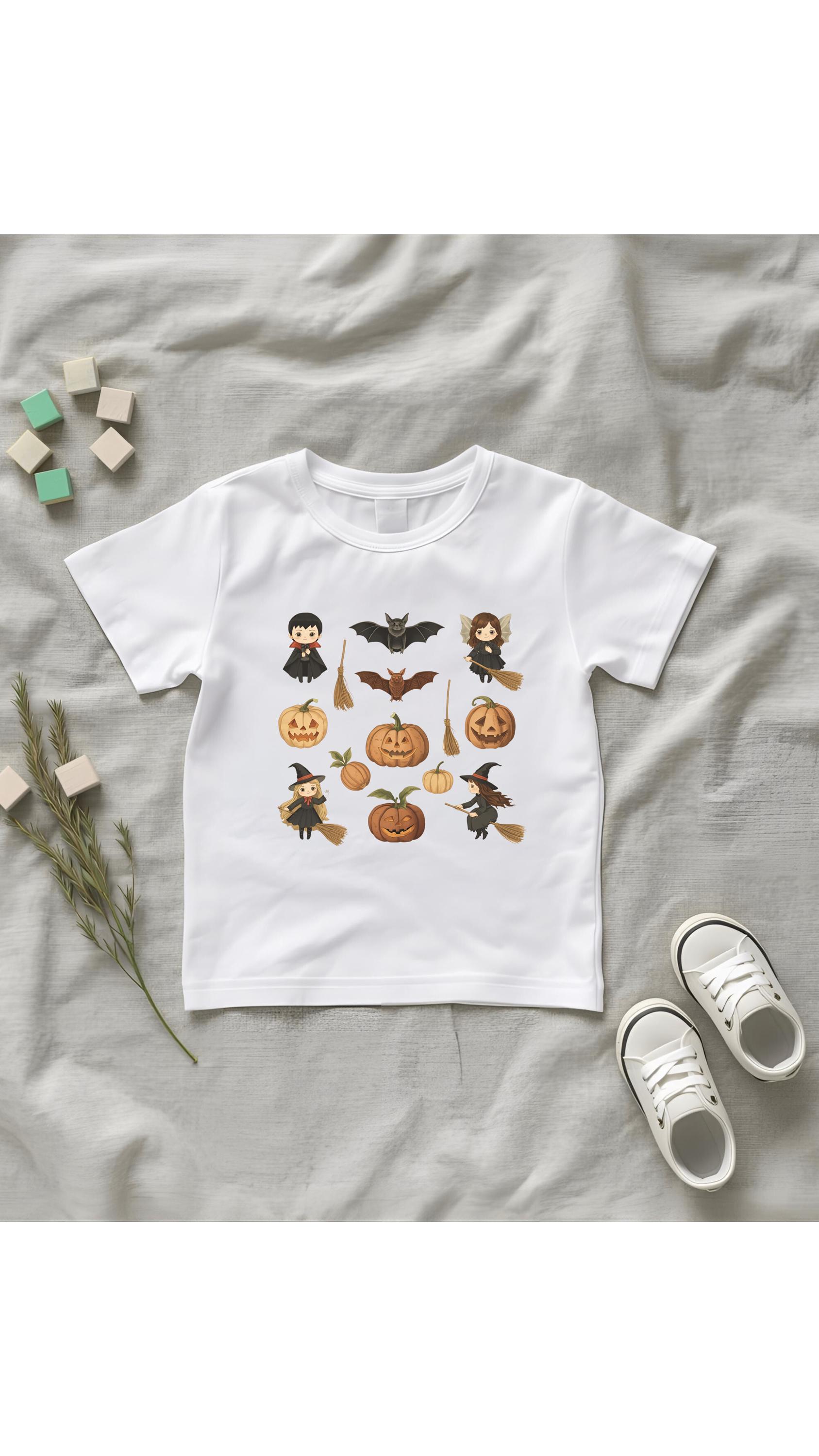Retro vibes halloween themed tee for toddlers, perfect for the adventurous and stylish little ones. This tee brings a fun and playful feel to your child's wardrobe, ideal for casual outings and playdates. Relevant for birthdays, holidays, and everyday wear.