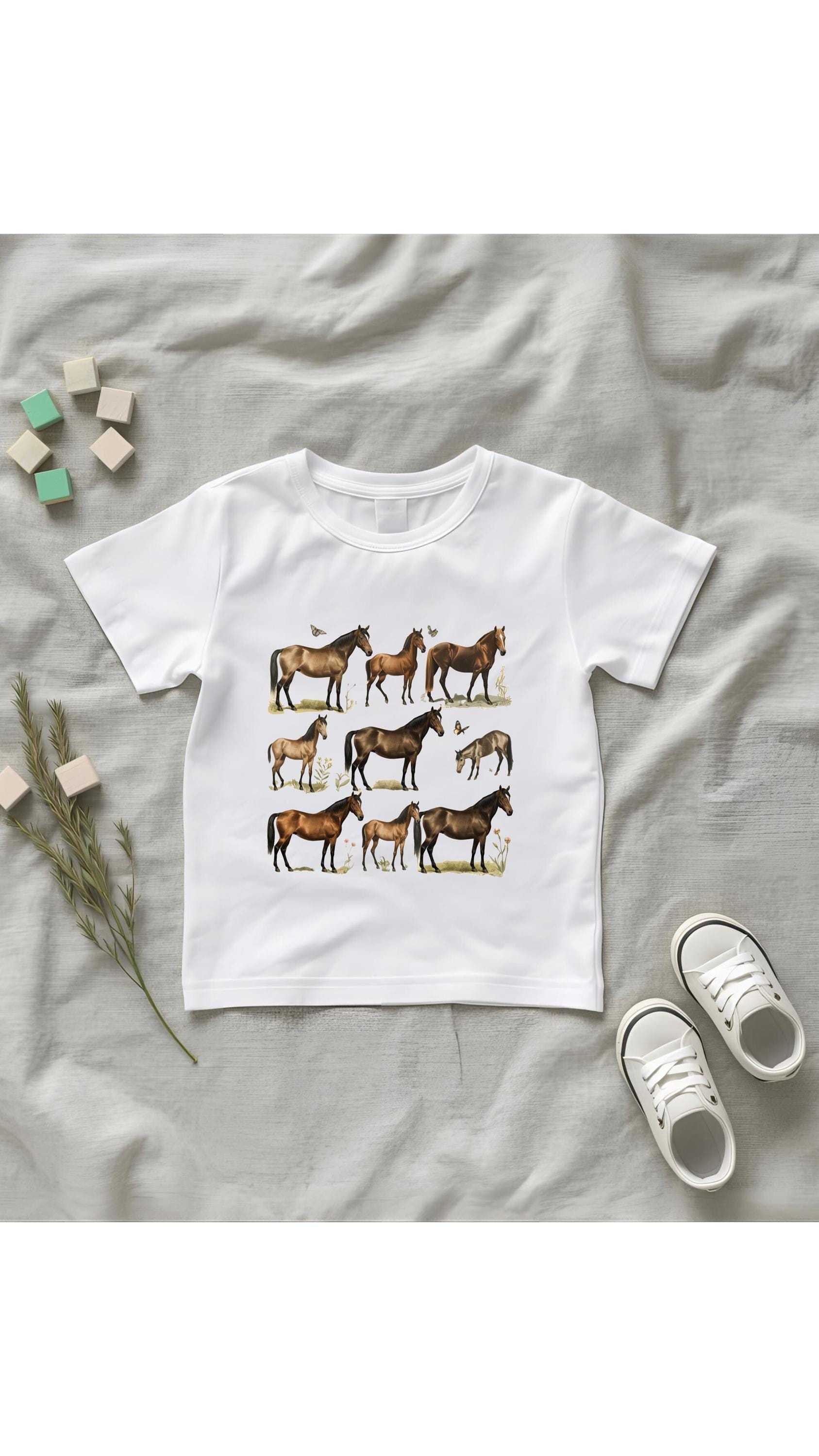 Retro vibes horses themed tee for toddlers, perfect for the adventurous and stylish little ones. This tee brings a fun and playful feel to your child's wardrobe, ideal for casual outings and playdates. Relevant for birthdays, holidays, and everyday wear.