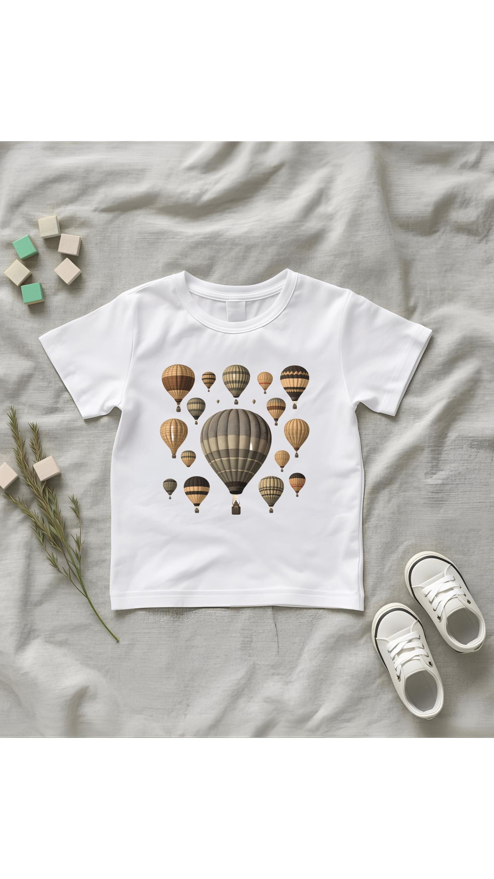 Retro vibes hot air balloons aviation themed tee for toddlers, perfect for the adventurous and stylish little ones. This tee brings a fun and playful feel to your child's wardrobe, ideal for casual outings and playdates. Relevant for birthdays, holidays, and everyday wear.