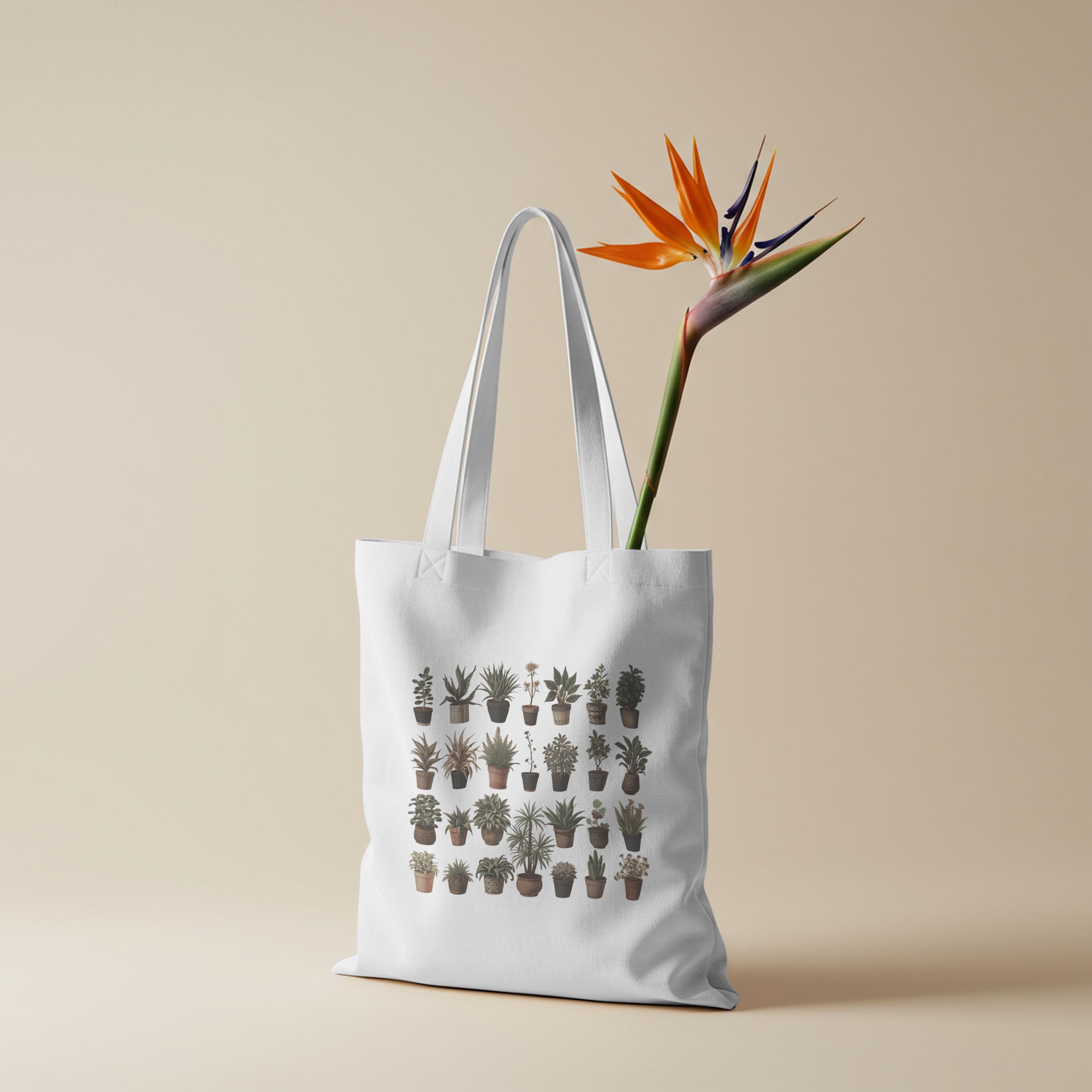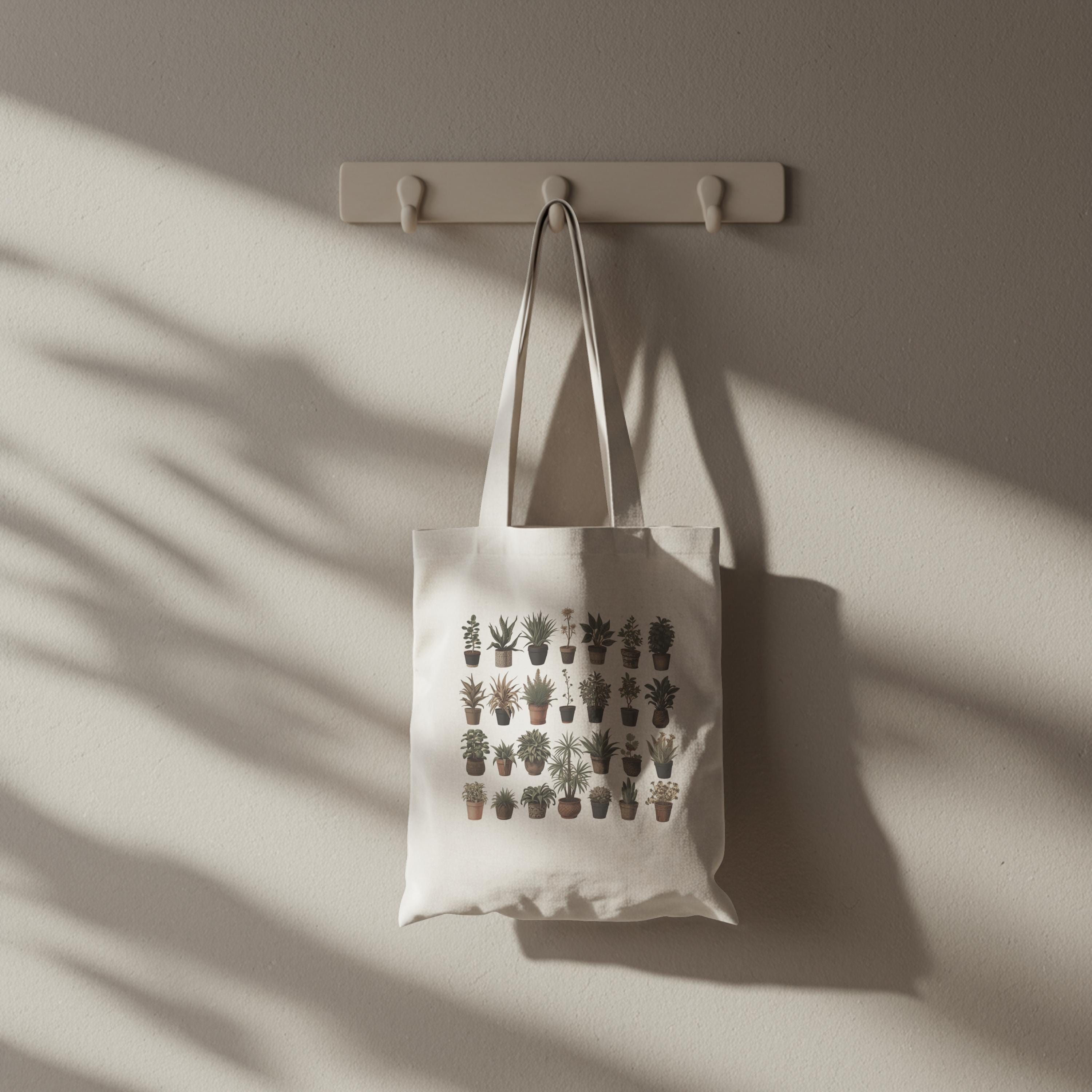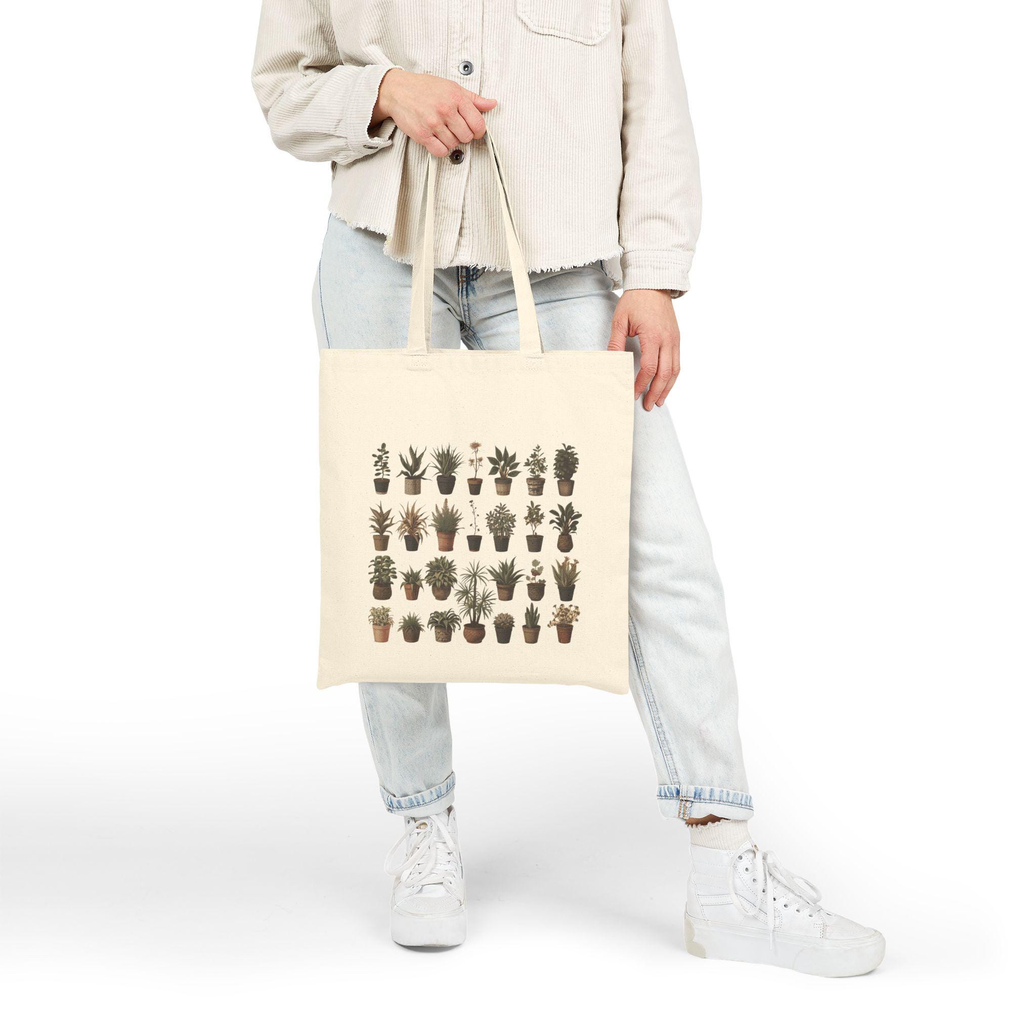 Botanical Plant Print Tote Bag: Eco-Friendly Cotton Canvas Shopping Bag
