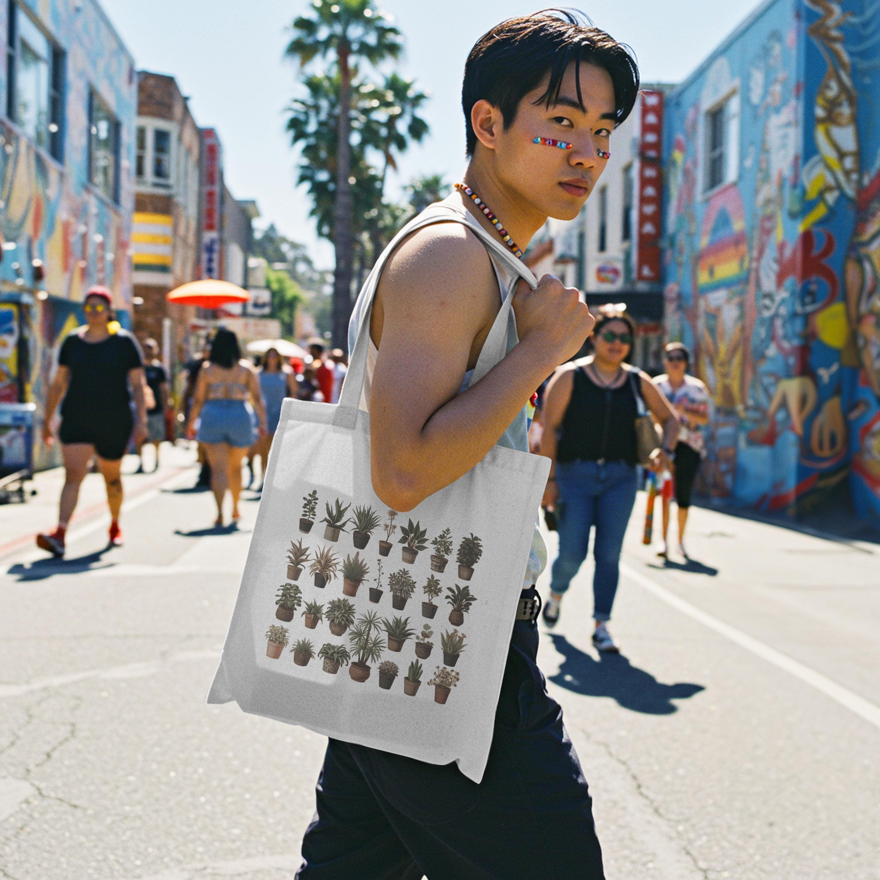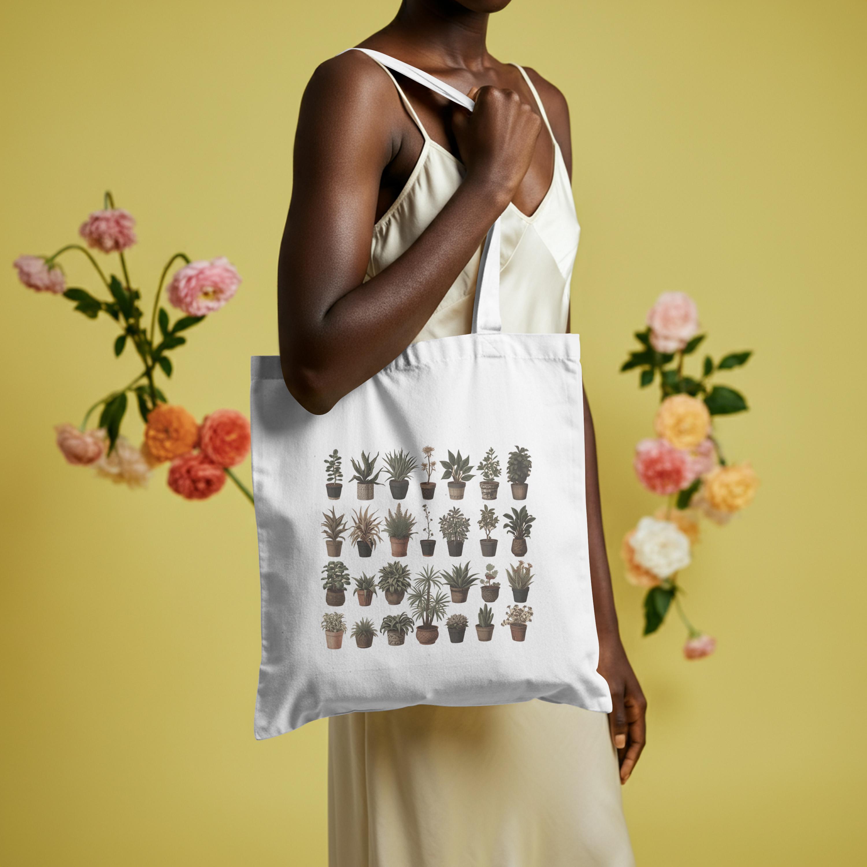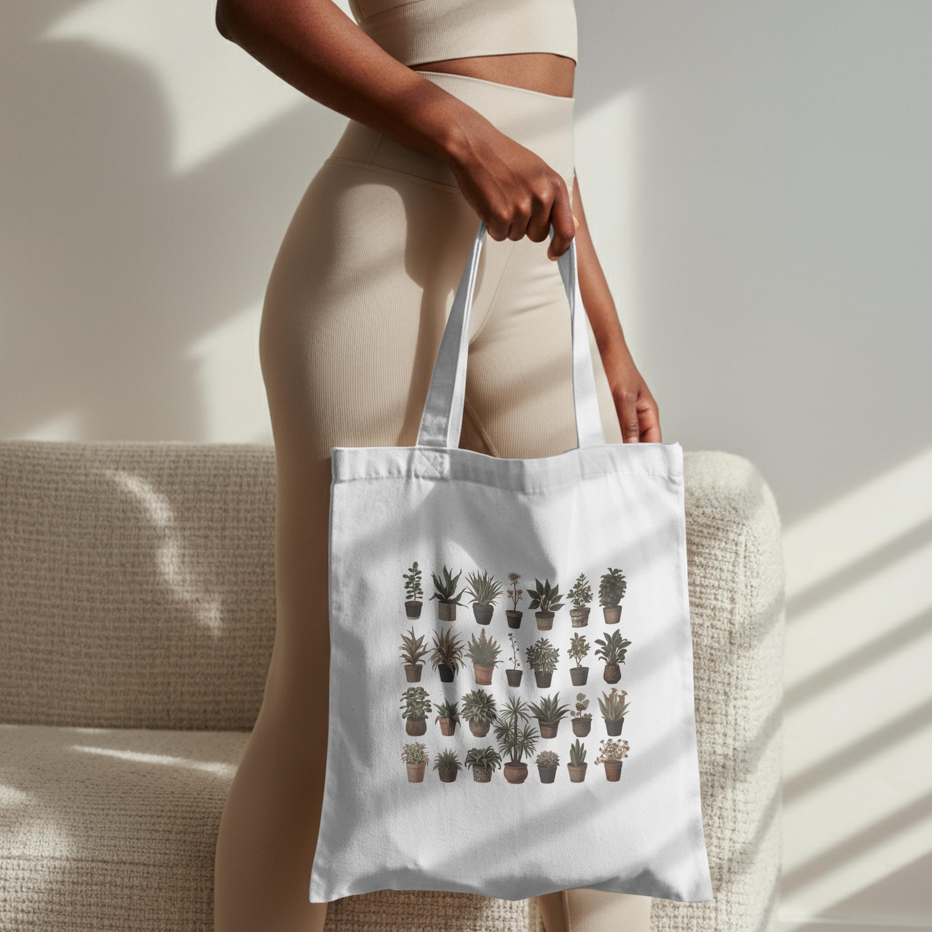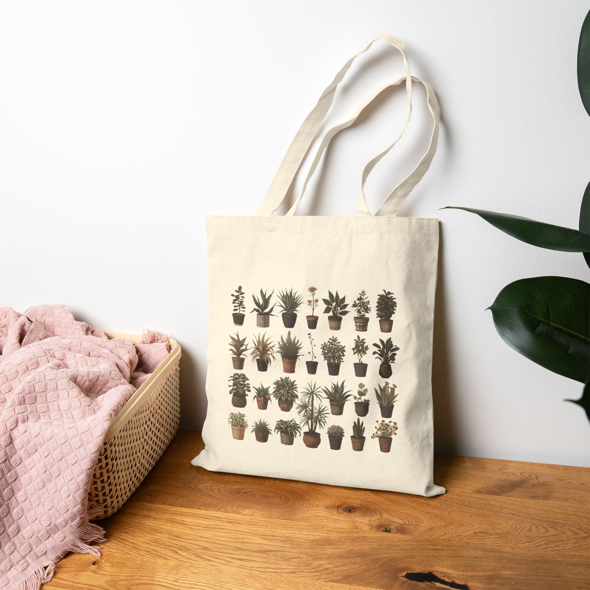Botanical Plant Print Tote Bag: Eco-Friendly Cotton Canvas Shopping Bag