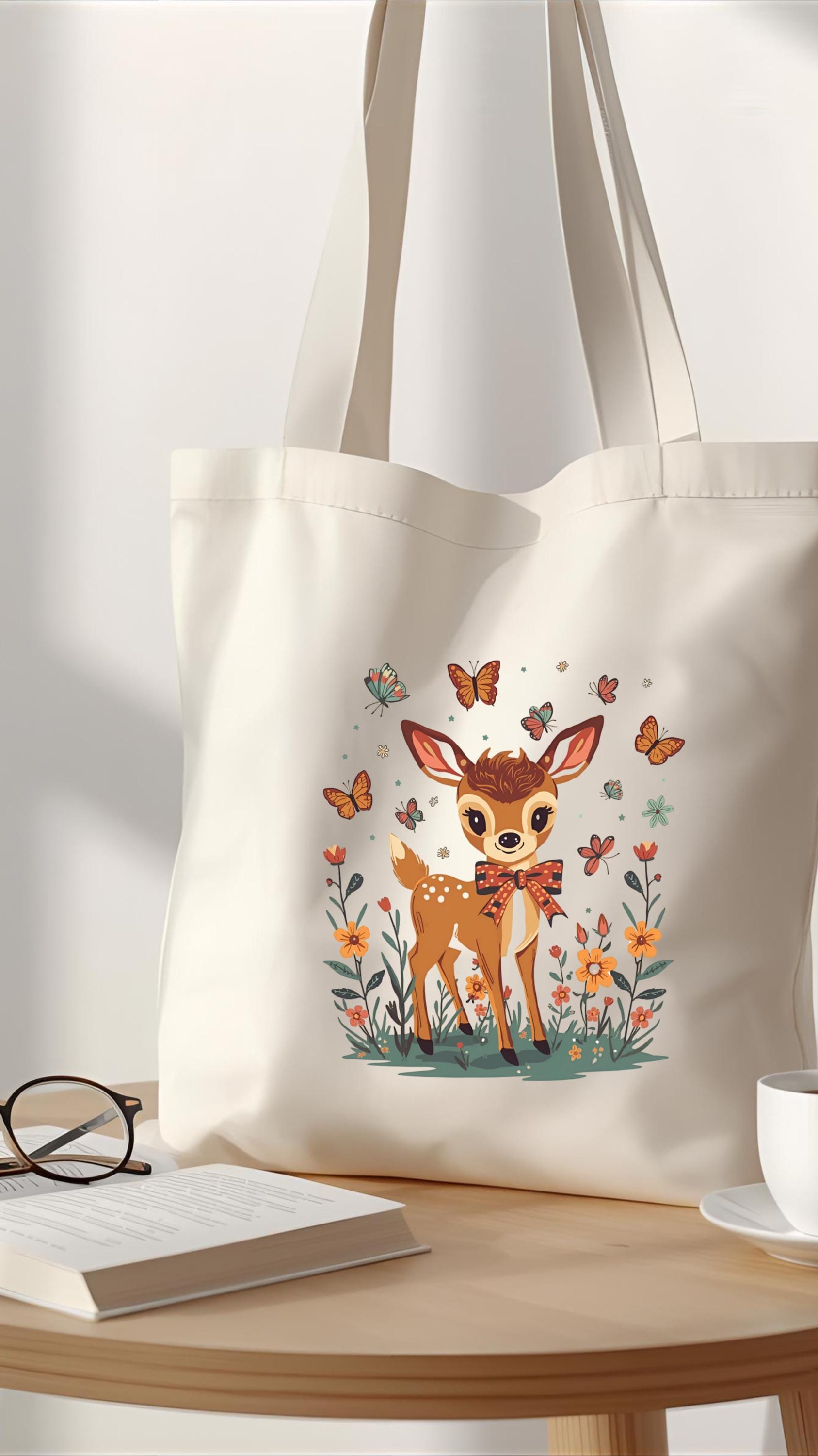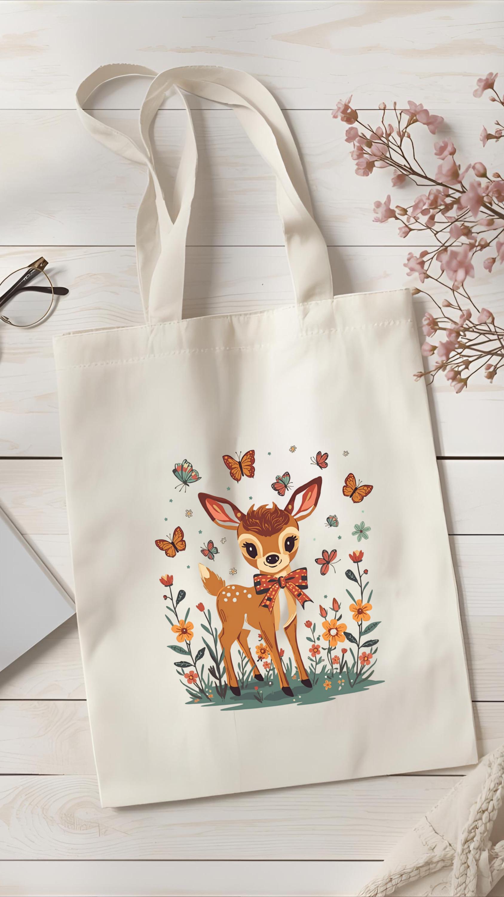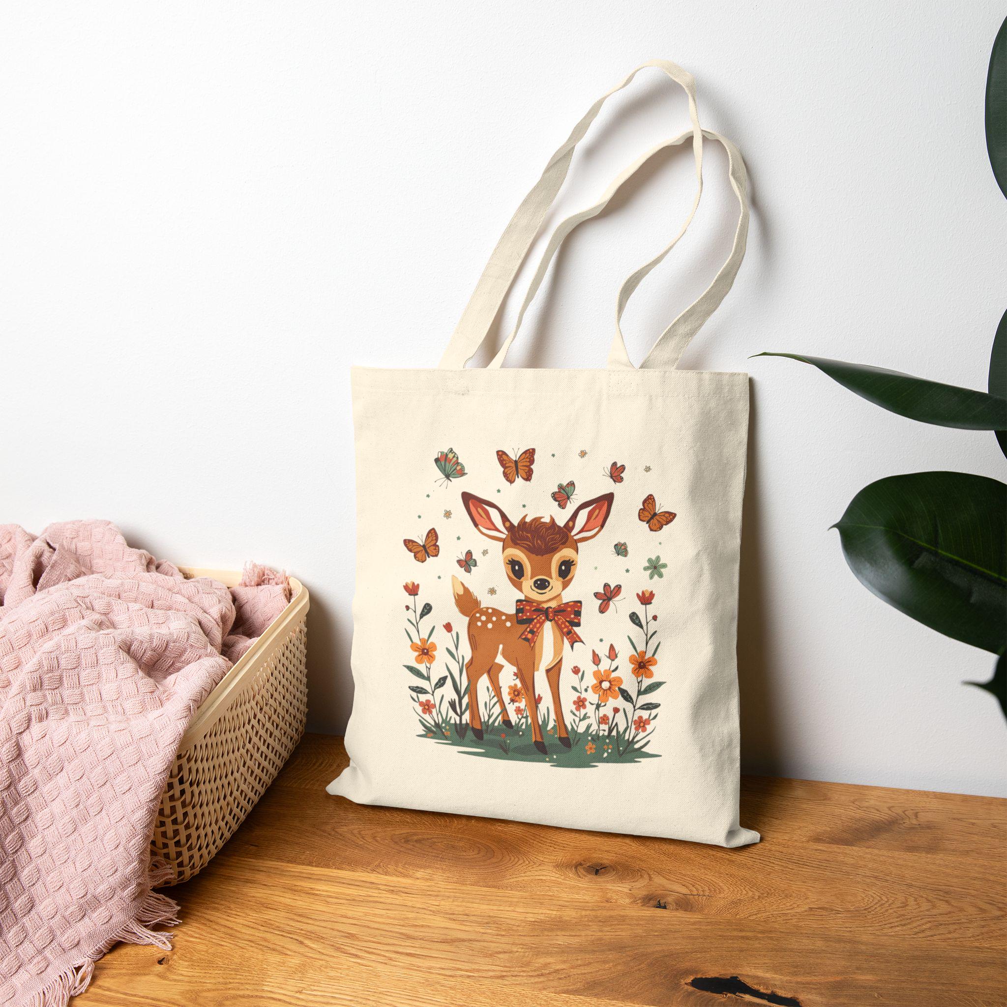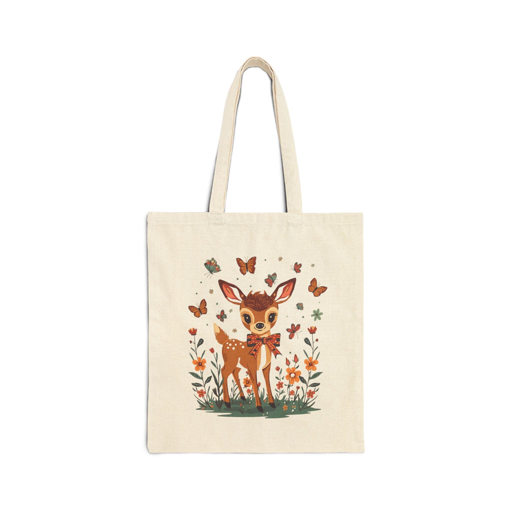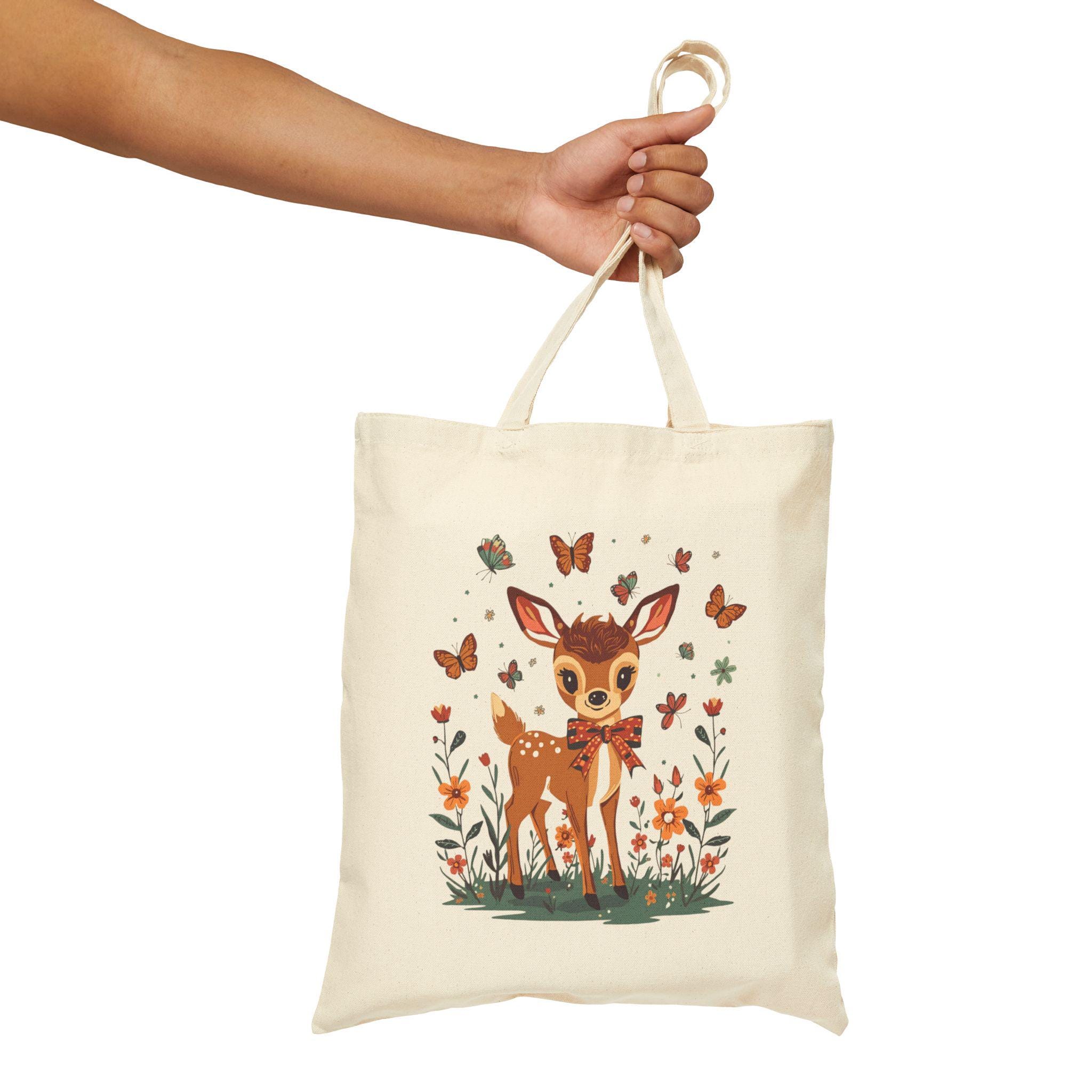This Botanical Deer and FawnsTote Bag is perfect for eco-friendly shopping. Made from 100% cotton canvas, this sturdy and durable bag is ideal for carrying groceries, books, or everyday essentials. Its natural and black color options make it versatile for any outfit or occasion. This tote bag is a must-have for nature lovers and environmentally conscious individuals, and it makes a great gift for birthdays, holidays, or just because.