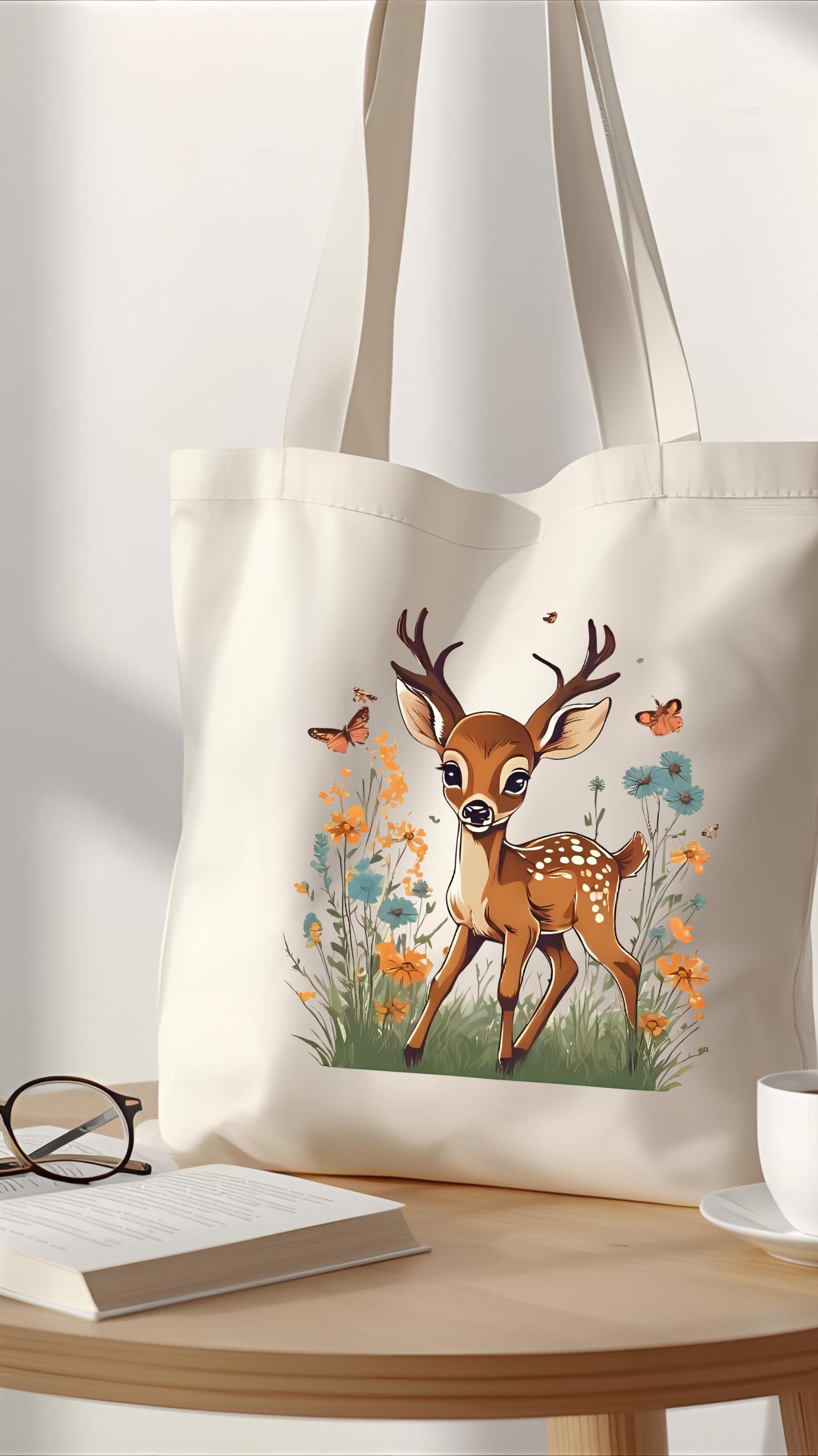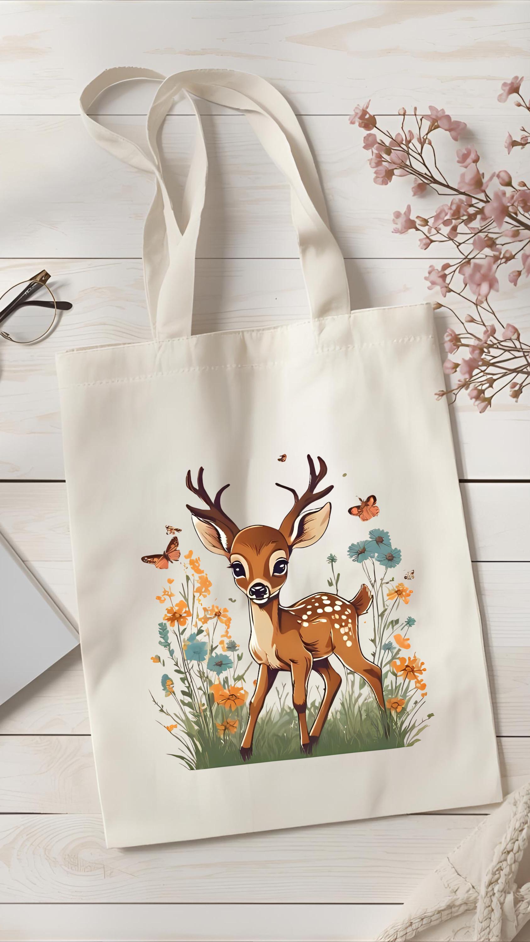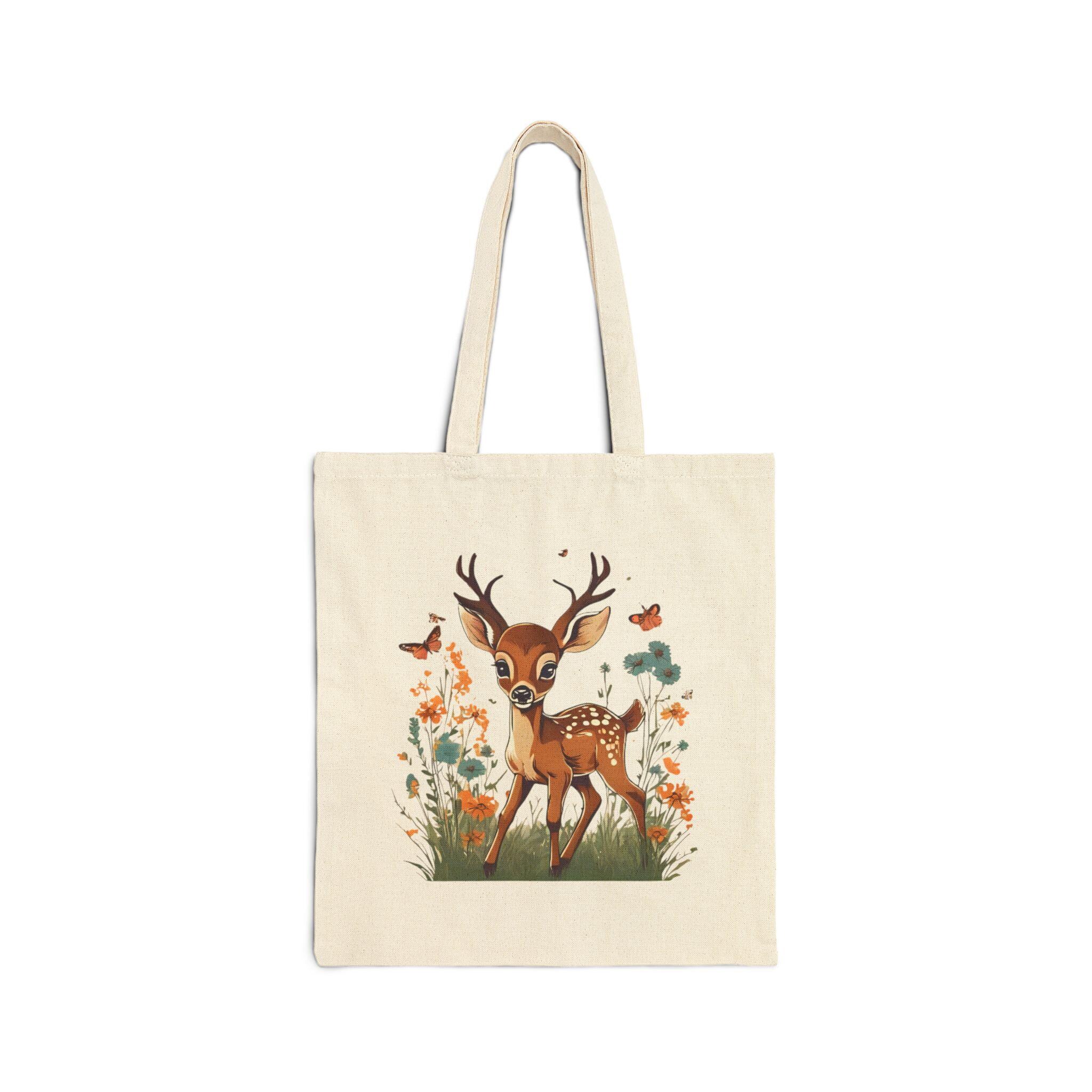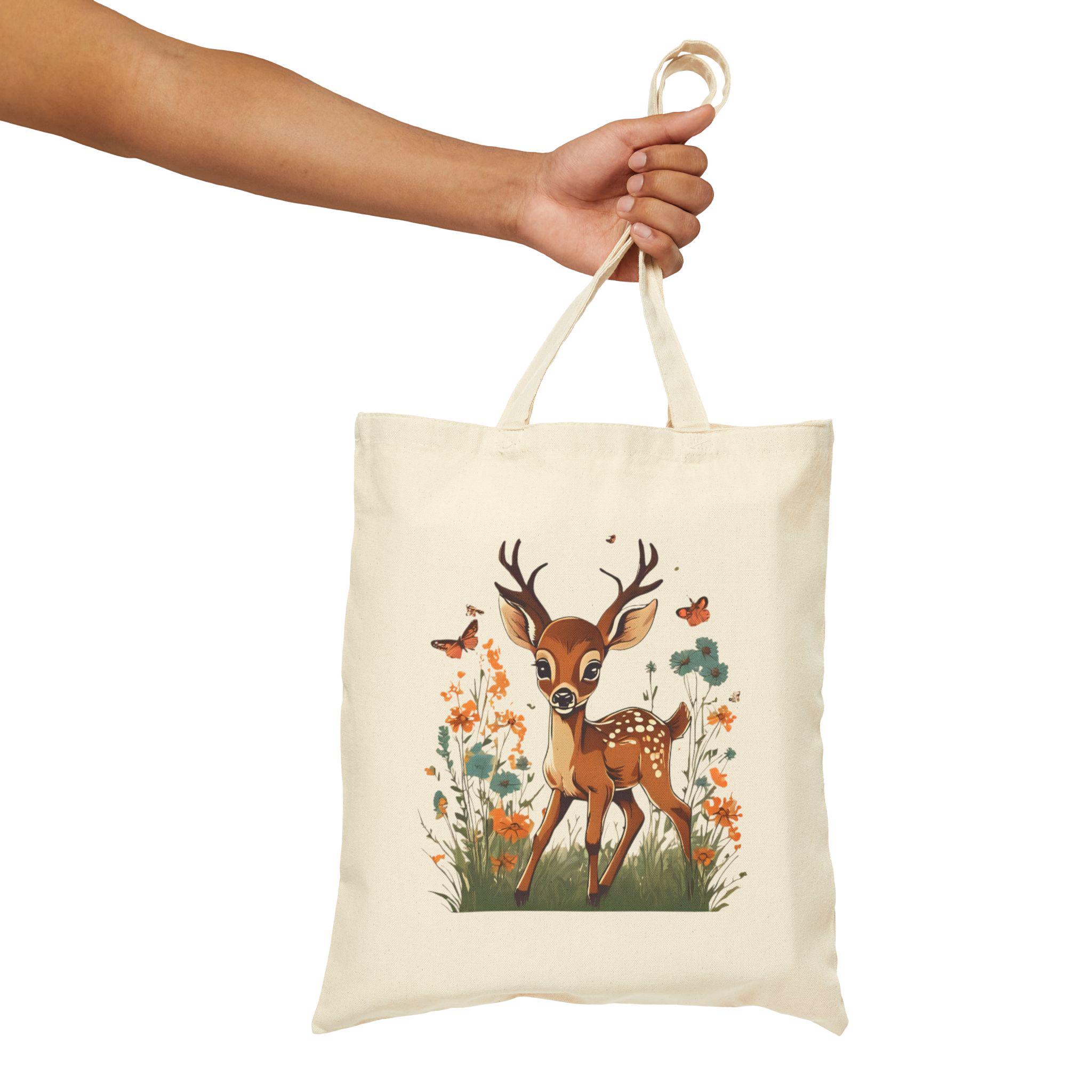 This Botanical Deer and Fawns Tote Bag is perfect for eco-friendly shopping. Made from 100% cotton canvas, this sturdy and durable bag is ideal for carrying groceries, books, or everyday essentials. Its natural and black color options make it versatile for any outfit or occasion. This tote bag is a must-have for nature lovers and environmentally conscious individuals, and it makes a great gift for birthdays, holidays, or just because.