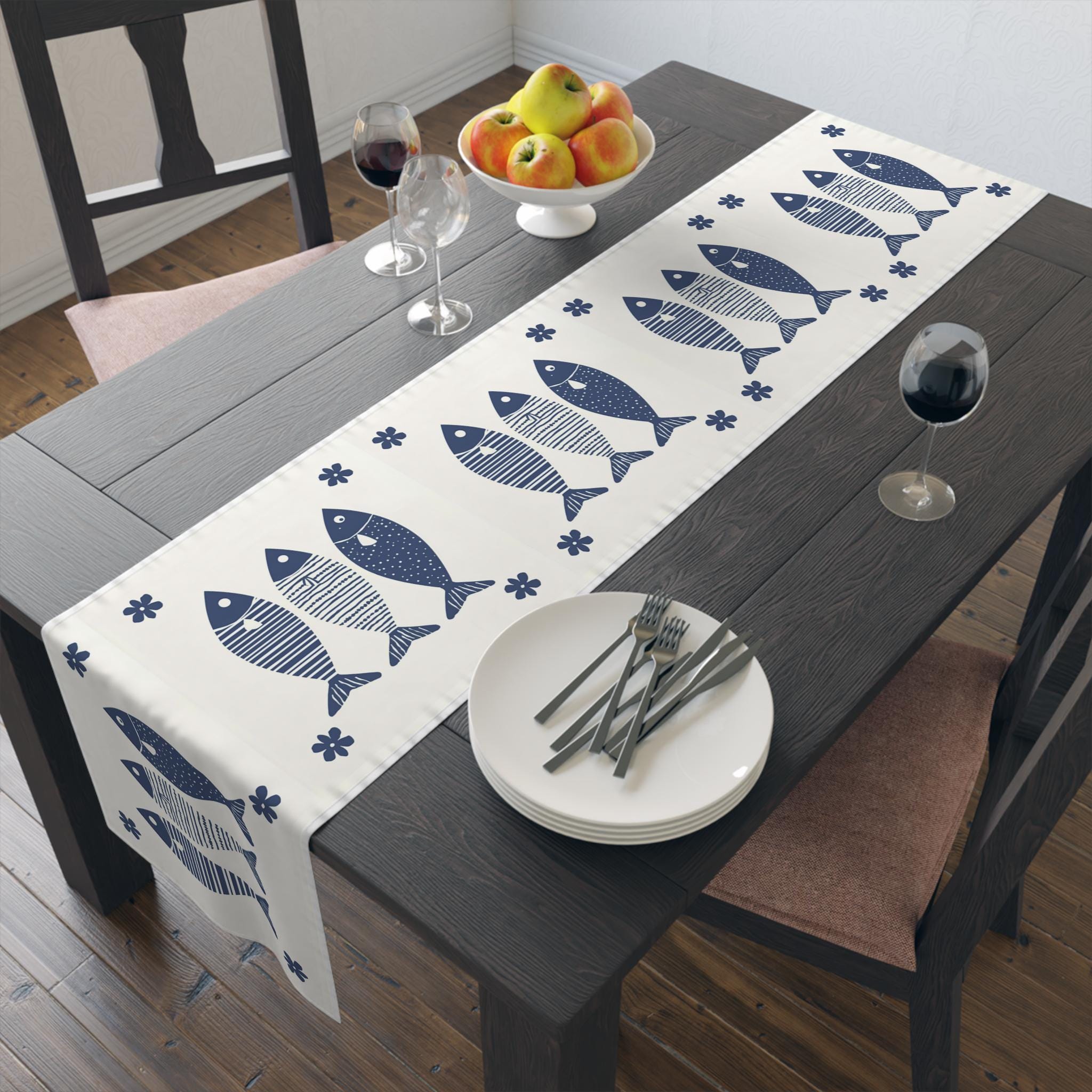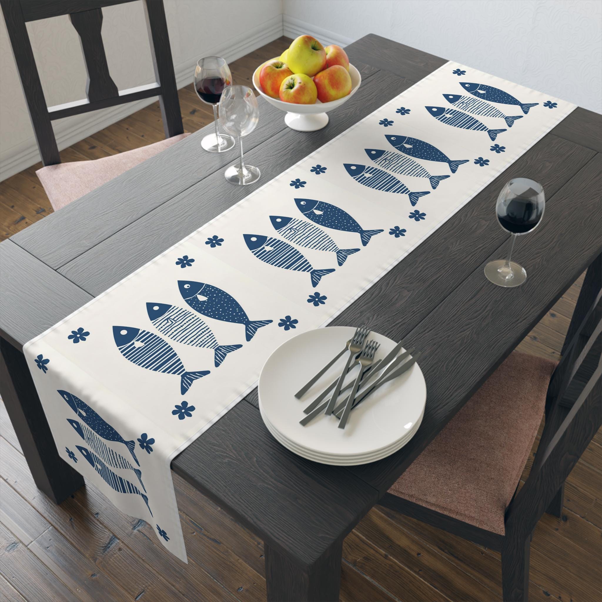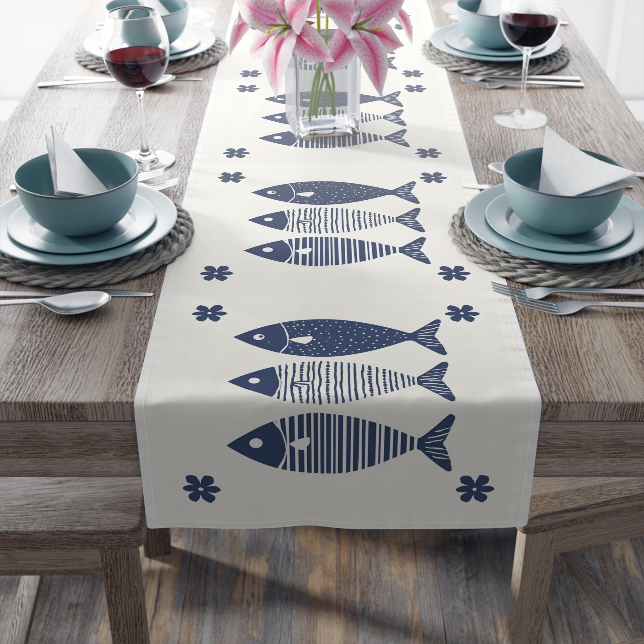 Elevate your dining experience with this charming Table Runner. Designed to bring a fresh and whimsical touch to your table setting, it features a delightful fish pattern that adds character and style. Perfect for family gatherings, casual dinners, or special occasions like beach-themed parties and summer barbecues, this table runner creates a warm and inviting atmosphere. Whether you’re entertaining friends or enjoying a quiet family meal, it sets the stage for memorable moments. Ideal for ocean lovers and those who appreciate nautical decor, this piece will beautifully complement a variety of interior styles and serve as a conversation starter at your next gathering.