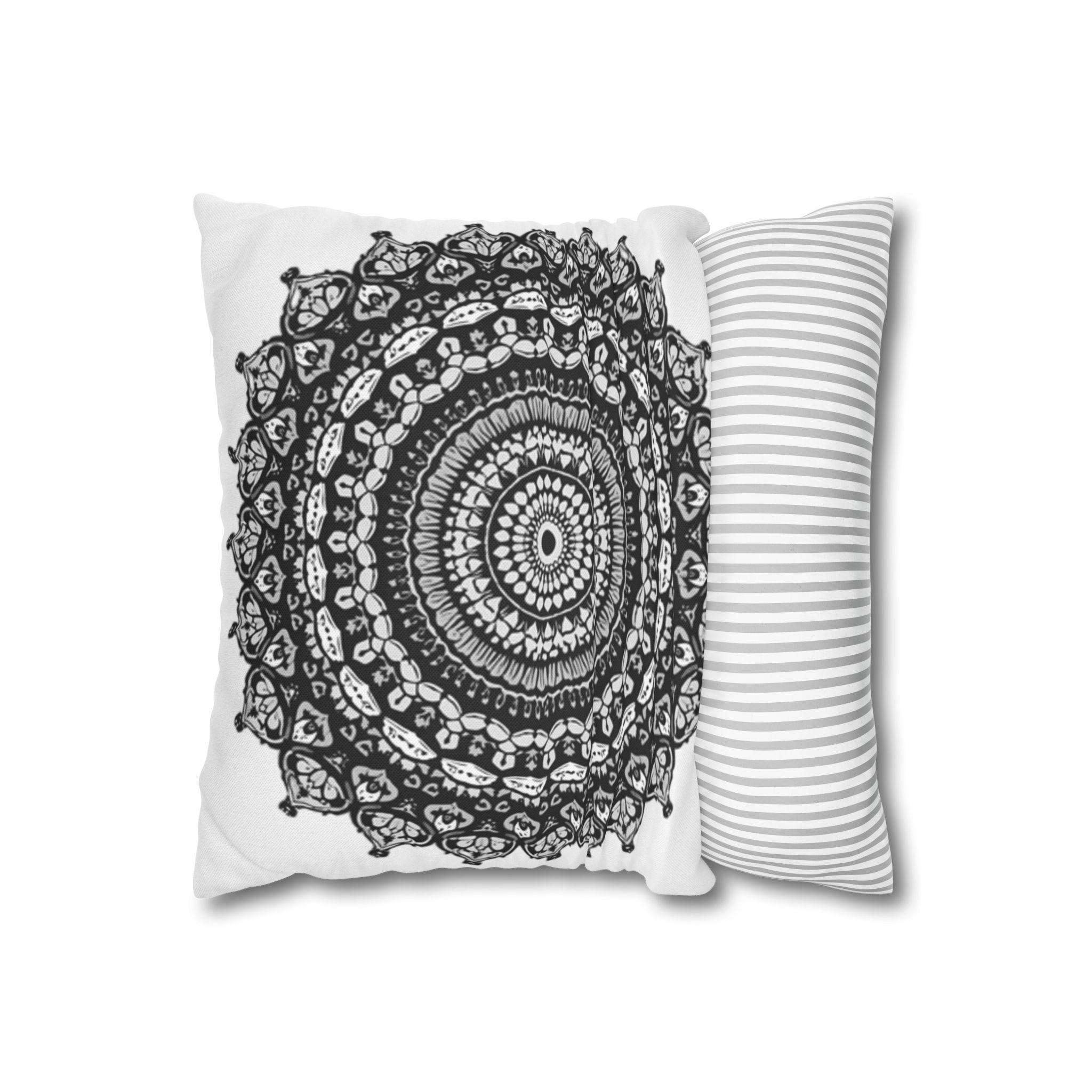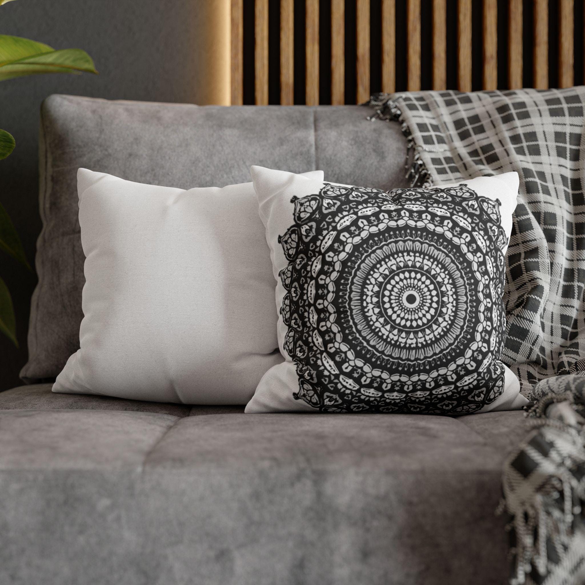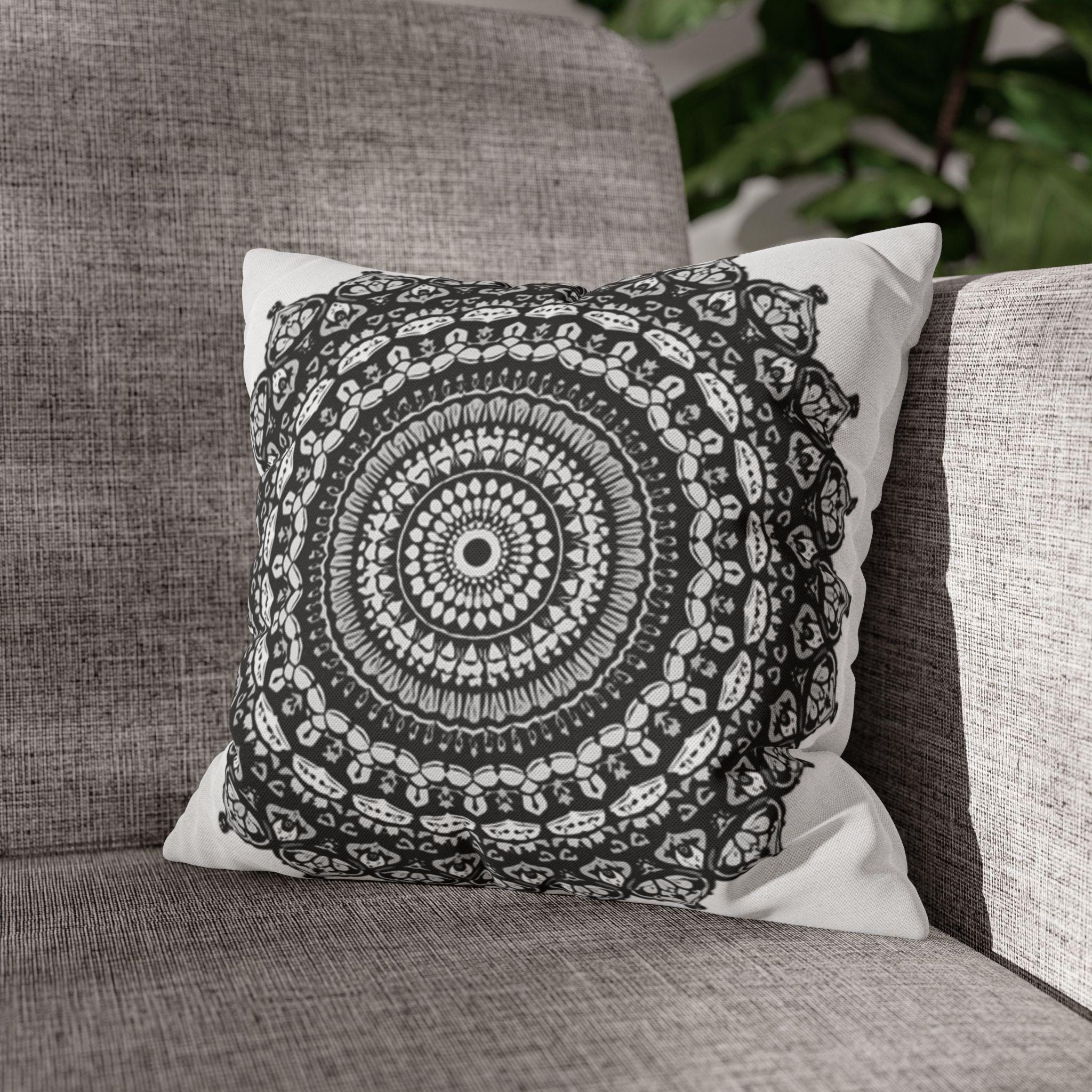 Bohemian Mandala Monochrome Pillowcase, Ethnic Cushion Cover, Decorative Throw Pillow, Bedroom Decor, Home Accent Cushion for Office