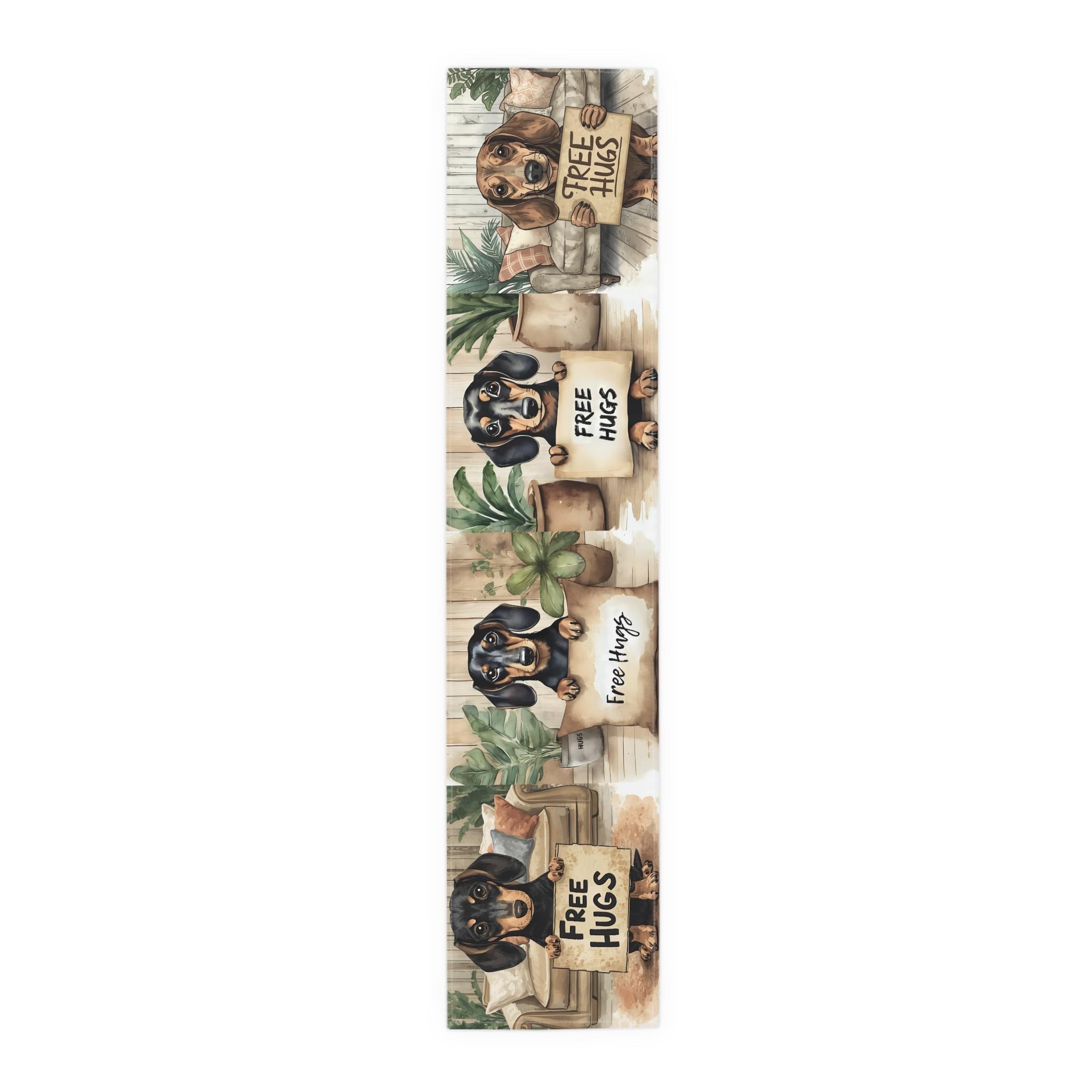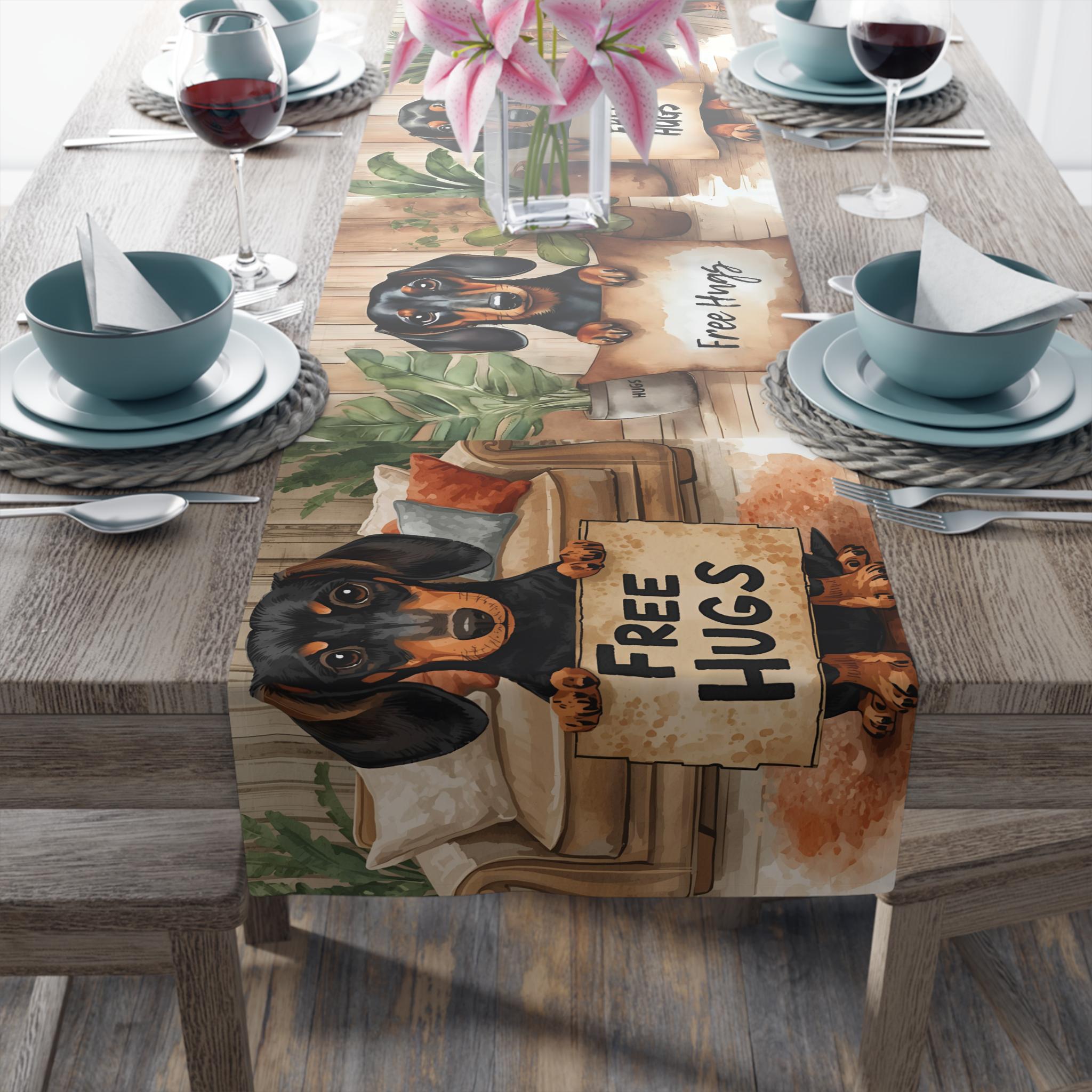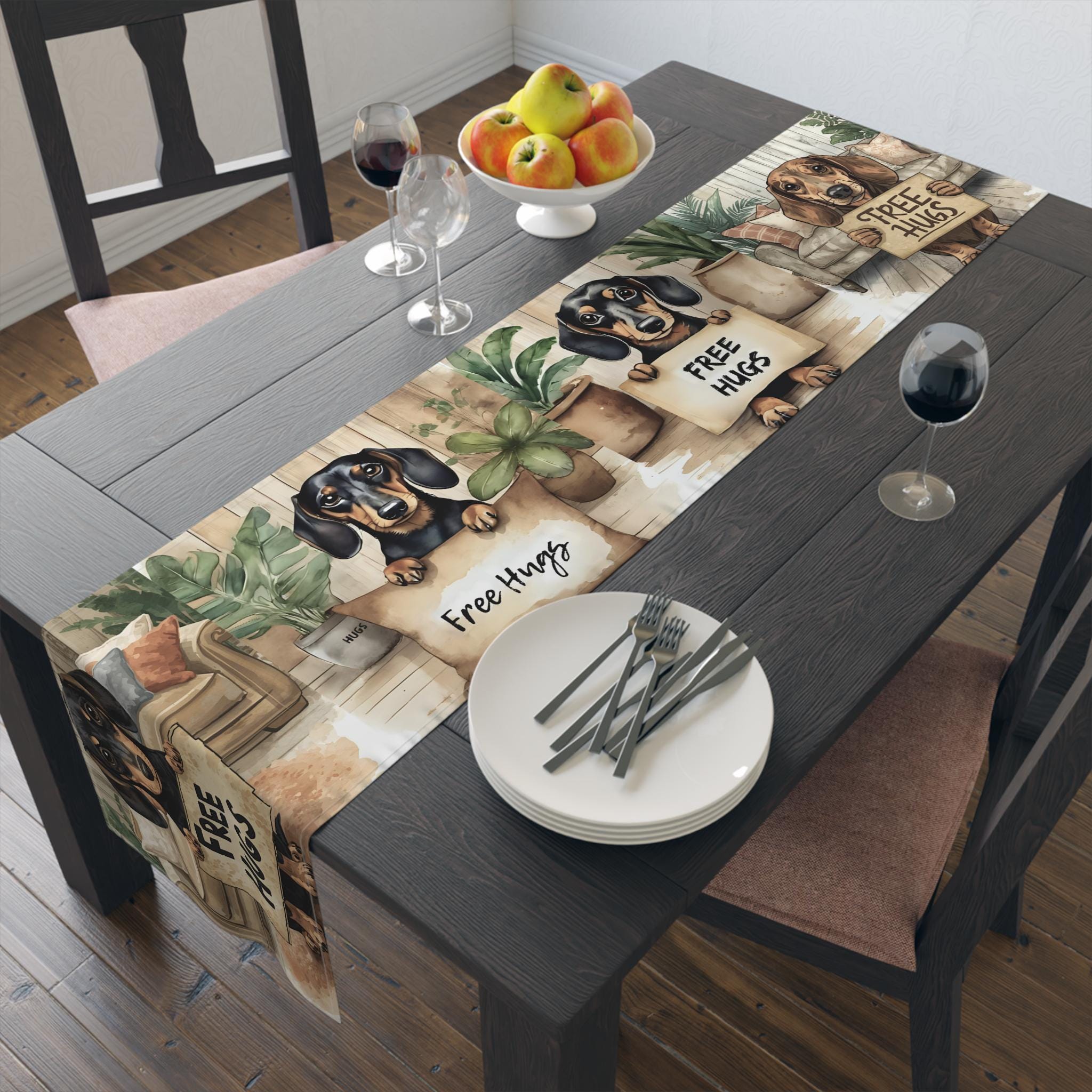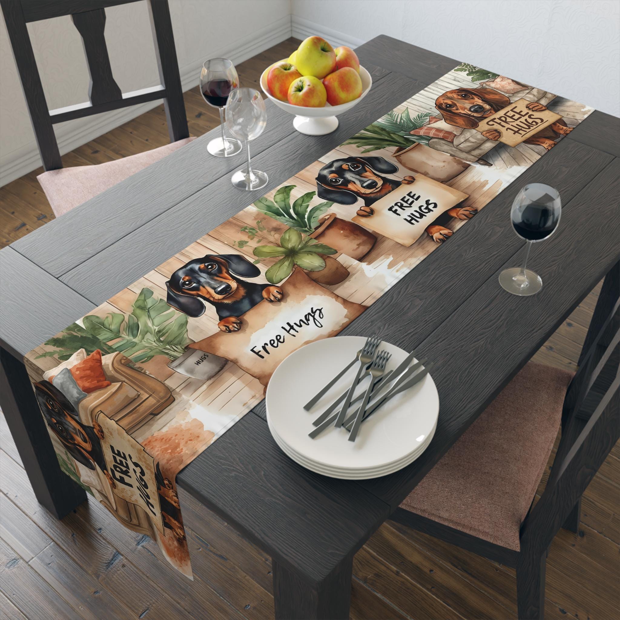 Elevate your dining space with this charming Table Runner, designed to bring warmth and personality to your table setting. Featuring a delightful illustration of adorable dogs displaying ‘Free Hugs,’ this runner adds a touch of whimsy to any meal. Perfect for family gatherings, casual dinners, or festive celebrations, it sets a friendly and inviting atmosphere for your home. Ideal for dog lovers and anyone looking to add a fun twist to their decor, this table runner is perfect for special occasions like birthday parties, family reunions, or any casual get-together. Whether celebrating the holidays or simply enjoying everyday meals, this Table Runner enhances your dining experience with a loving touch.