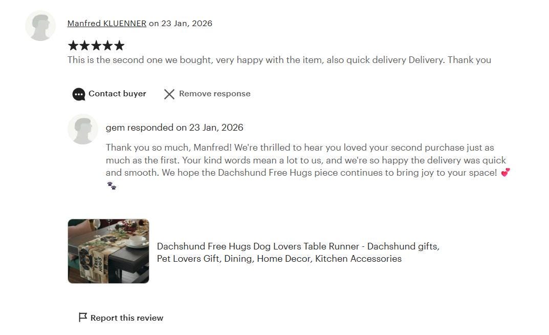 Elevate your dining space with this charming Table Runner, designed to bring warmth and personality to your table setting. Featuring a delightful illustration of adorable dogs displaying ‘Free Hugs,’ this runner adds a touch of whimsy to any meal. Perfect for family gatherings, casual dinners, or festive celebrations, it sets a friendly and inviting atmosphere for your home. Ideal for dog lovers and anyone looking to add a fun twist to their decor, this table runner is perfect for special occasions like birthday parties, family reunions, or any casual get-together. Whether celebrating the holidays or simply enjoying everyday meals, this Table Runner enhances your dining experience with a loving touch.
