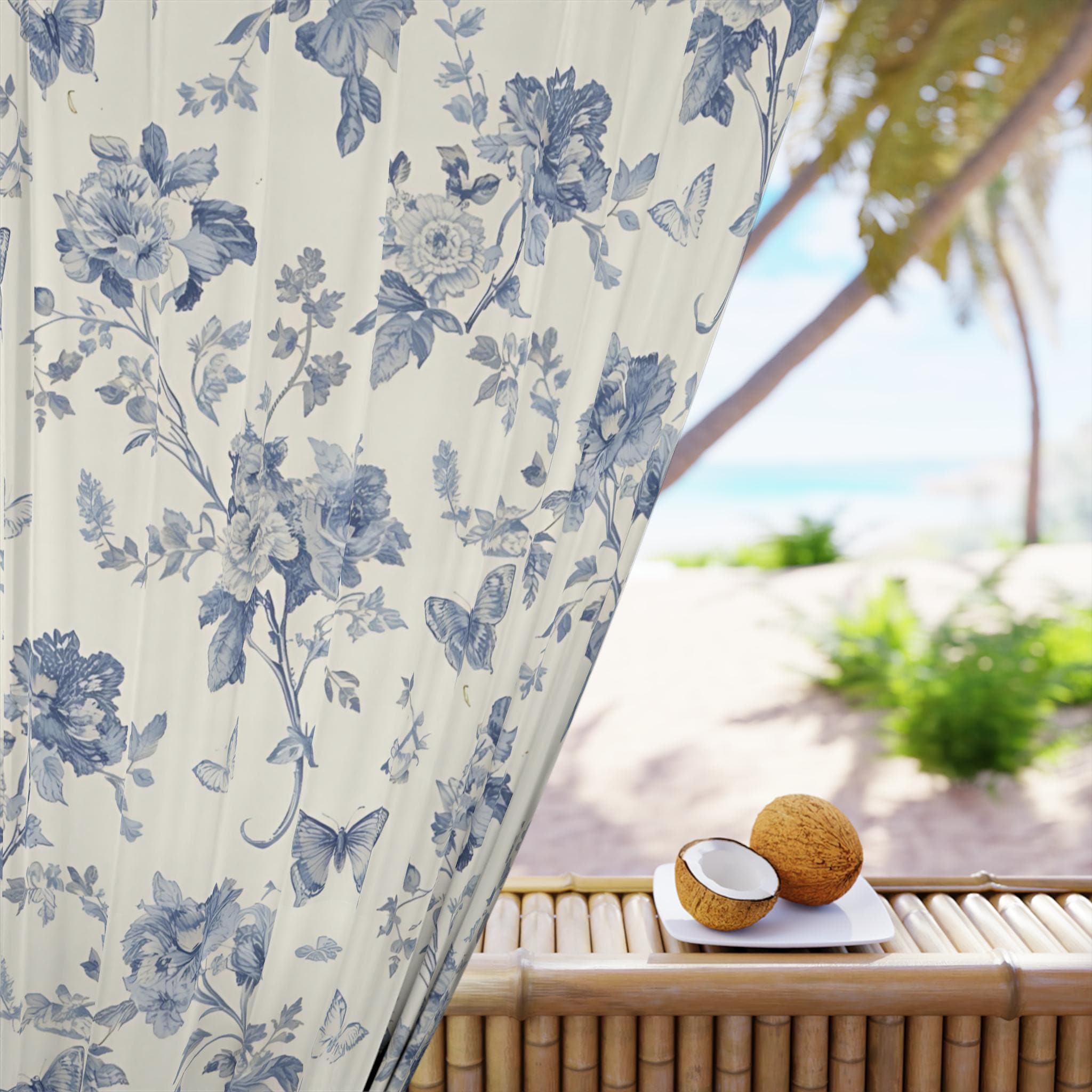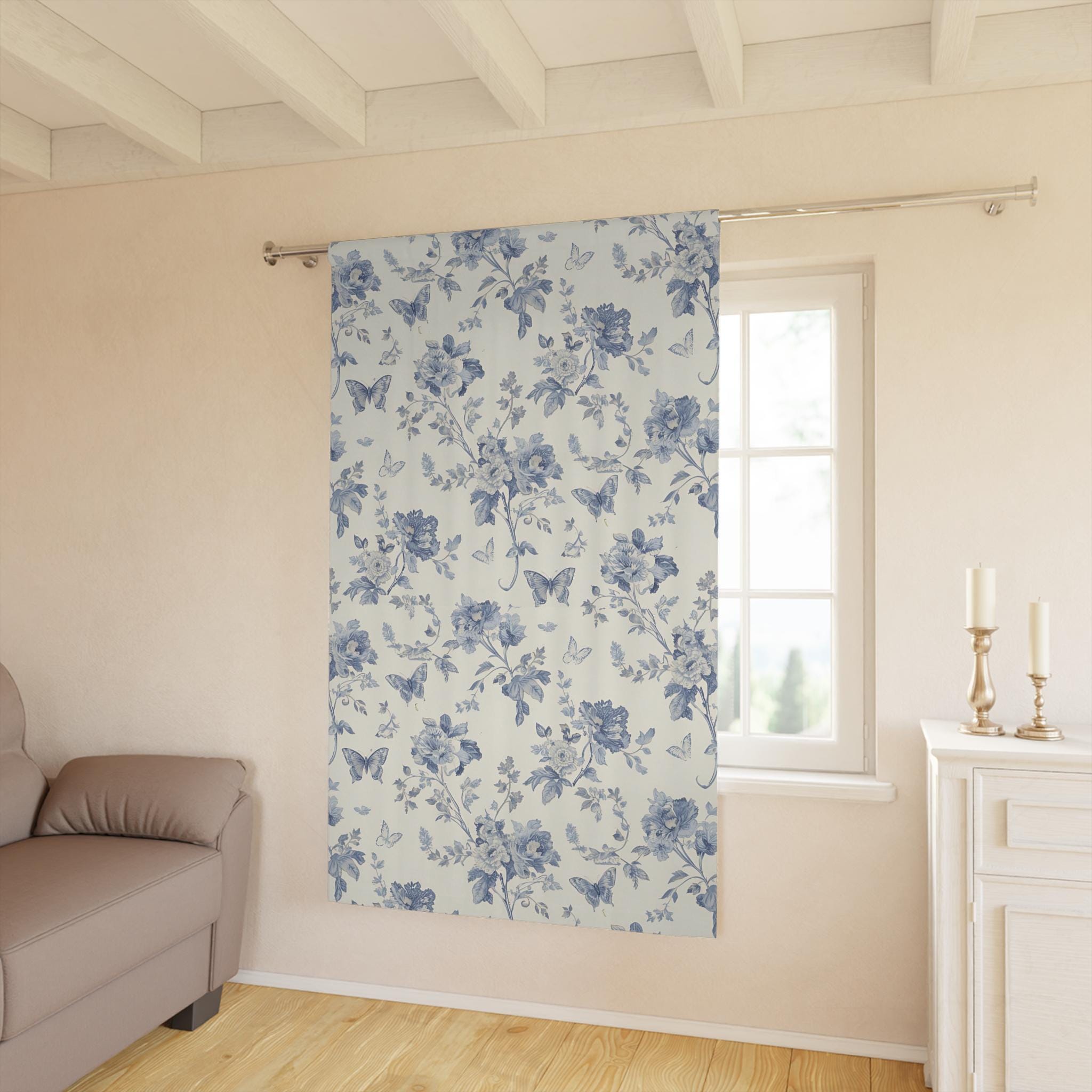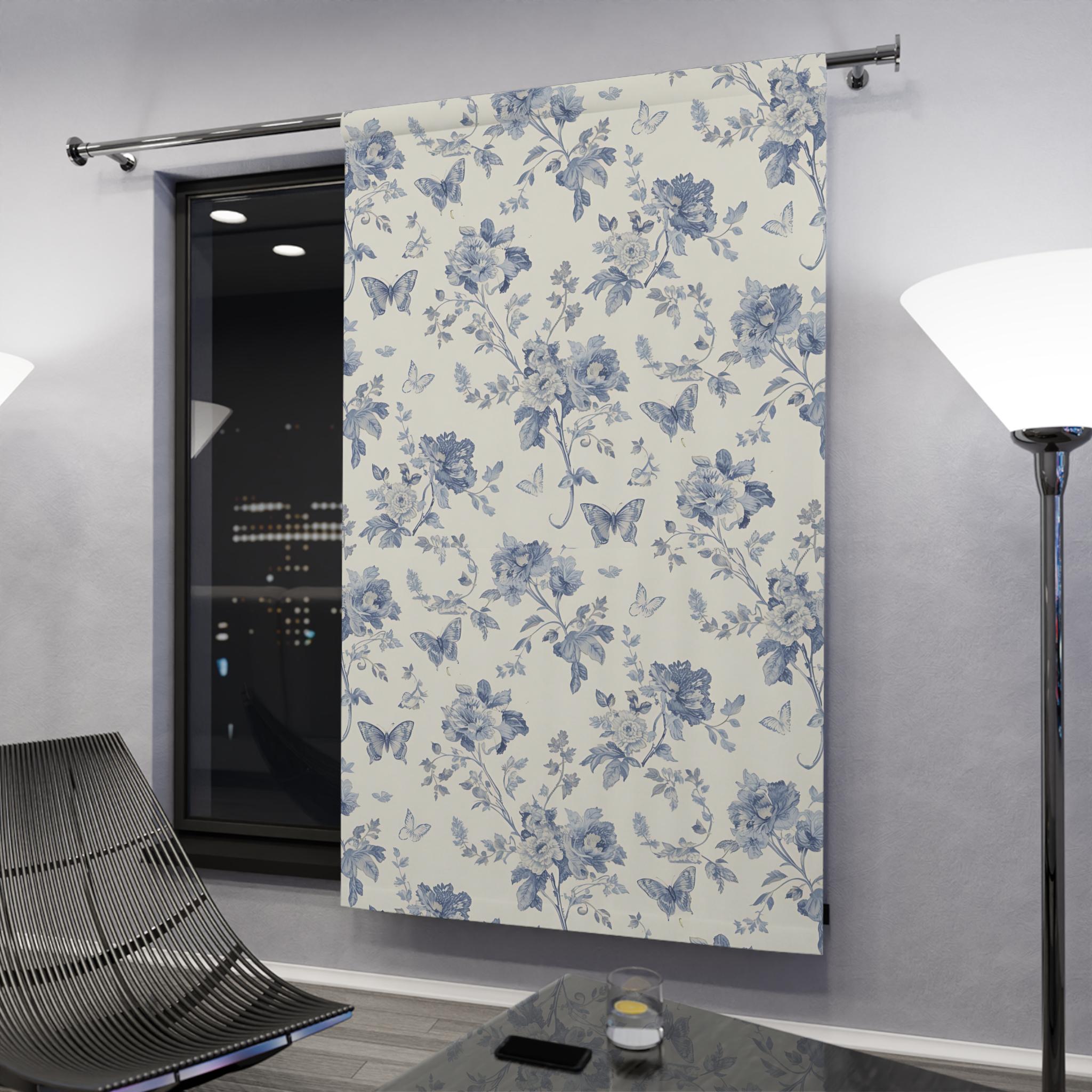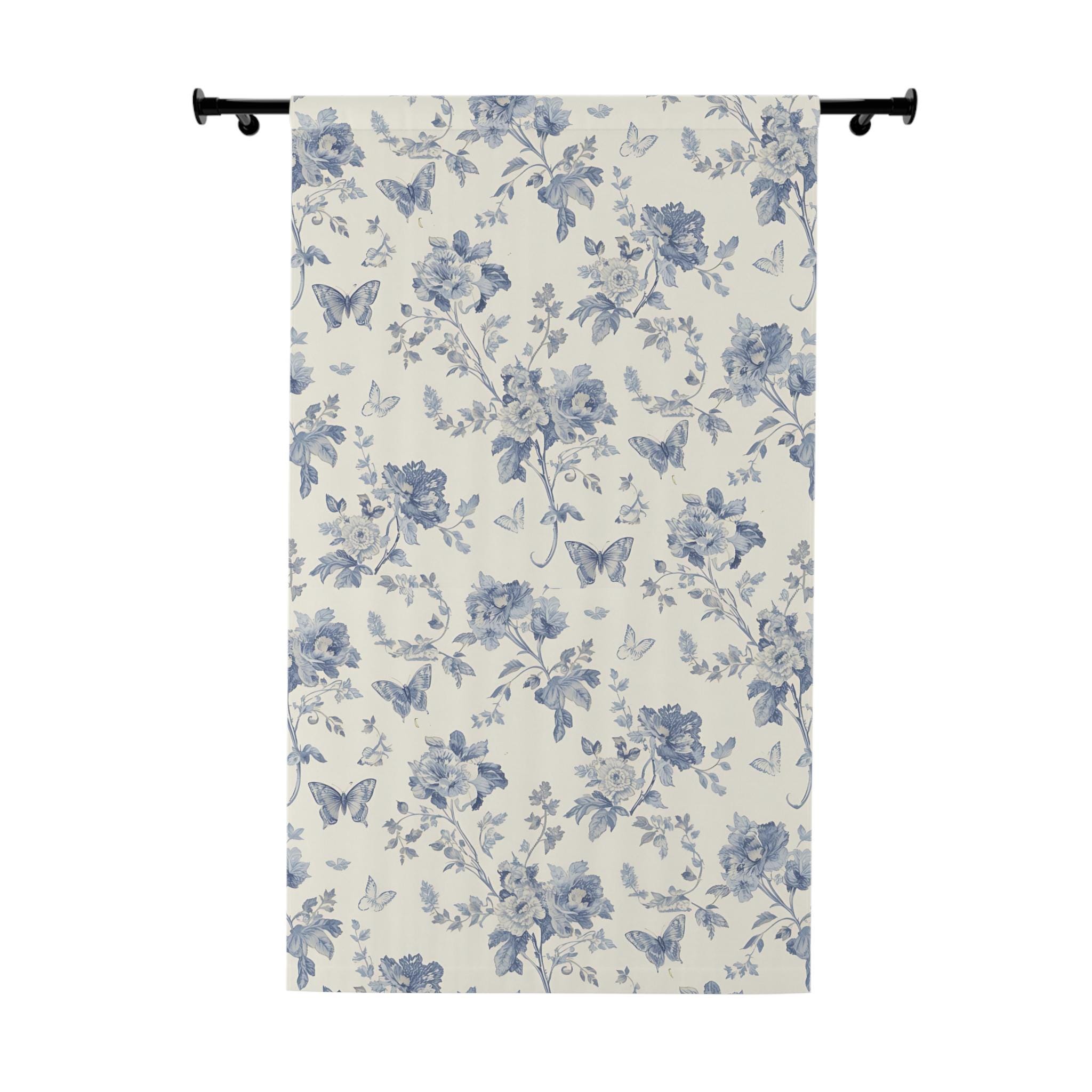 Blue Chinoiserie Elegant Floral Living Room Curtain, Flower Butterflies Curtain for Nature Lover Charming Vintage Curtains Retro Old School