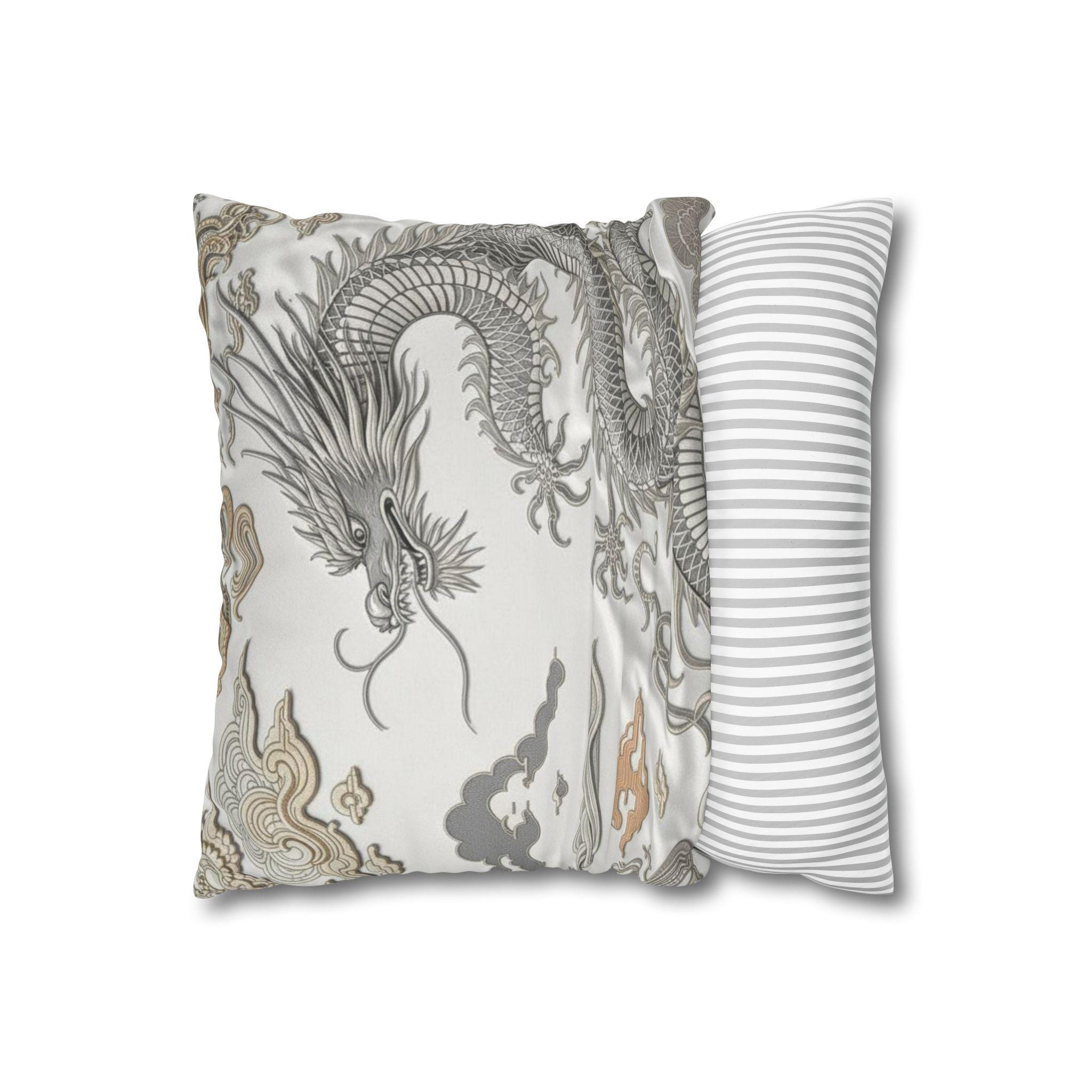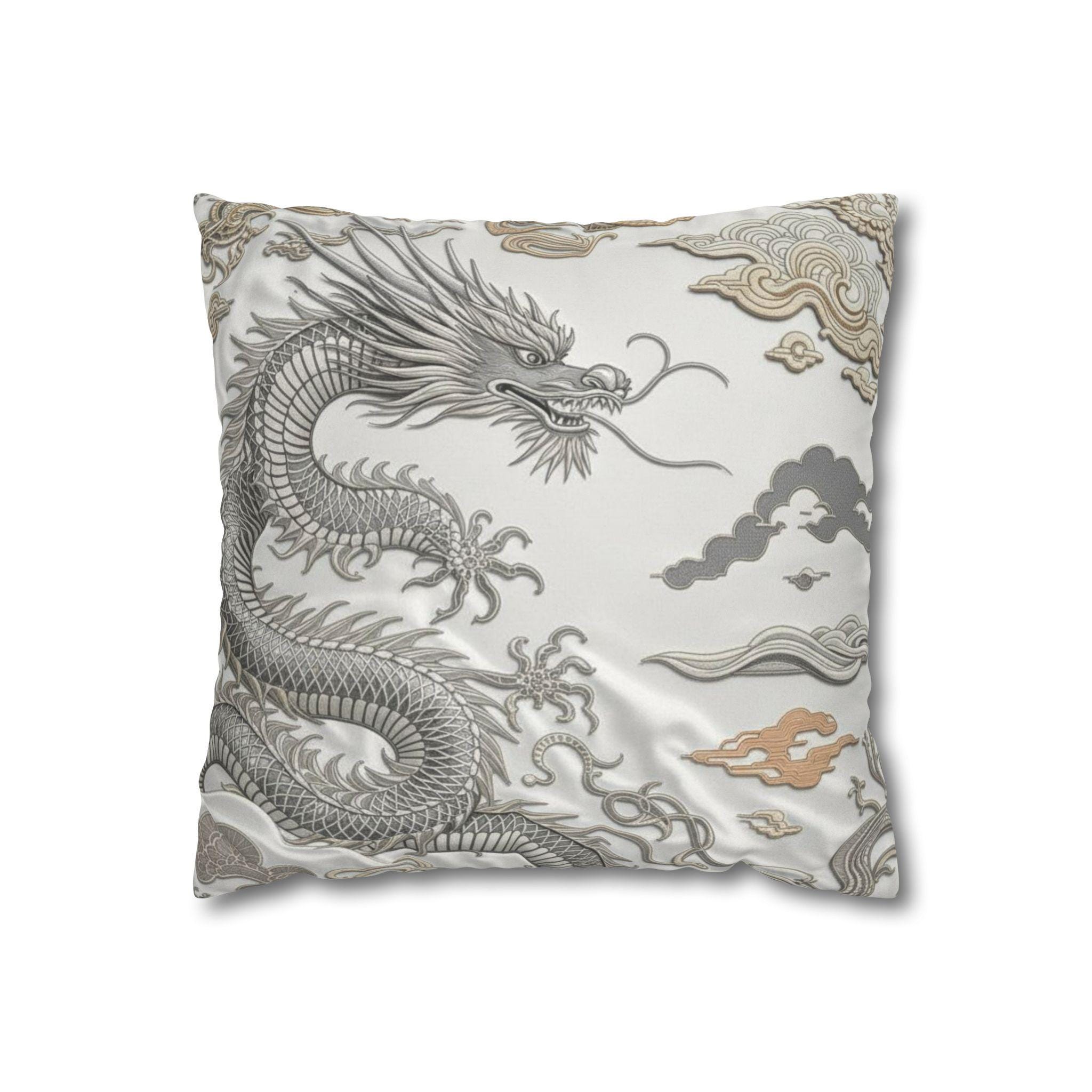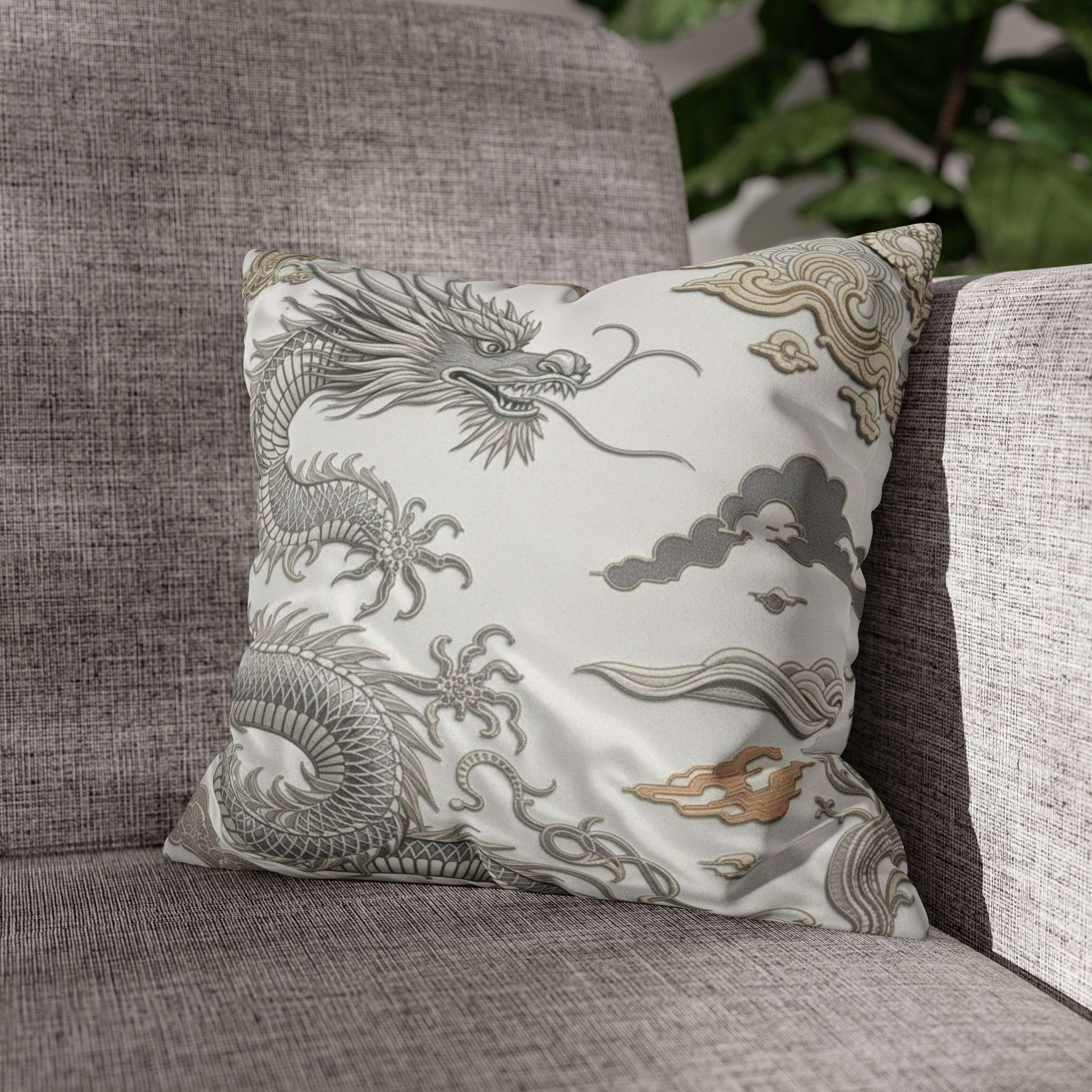 Dragon-Inspired Faux Suede Square Pillowcase | Decorative Home Accent, Cozy Throw Pillow, Unique Gifts, Feng Shui Decor, Luxury Cushion