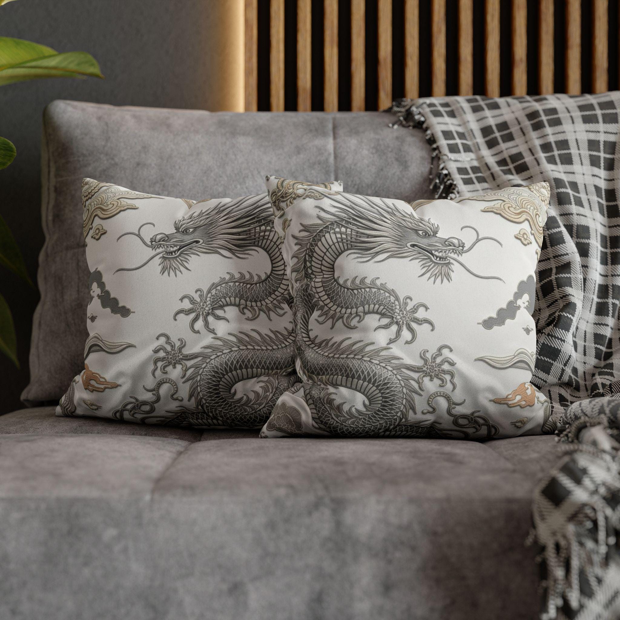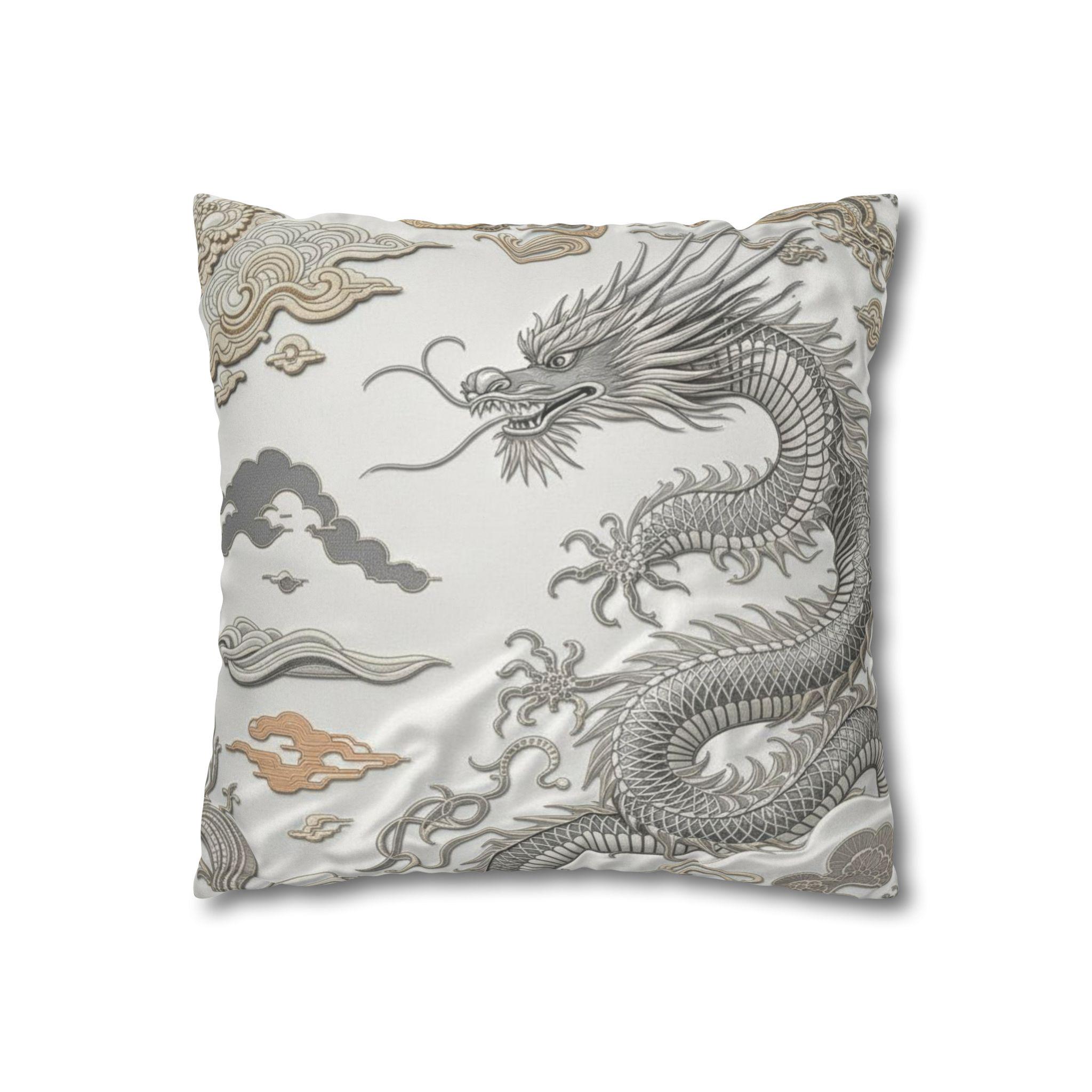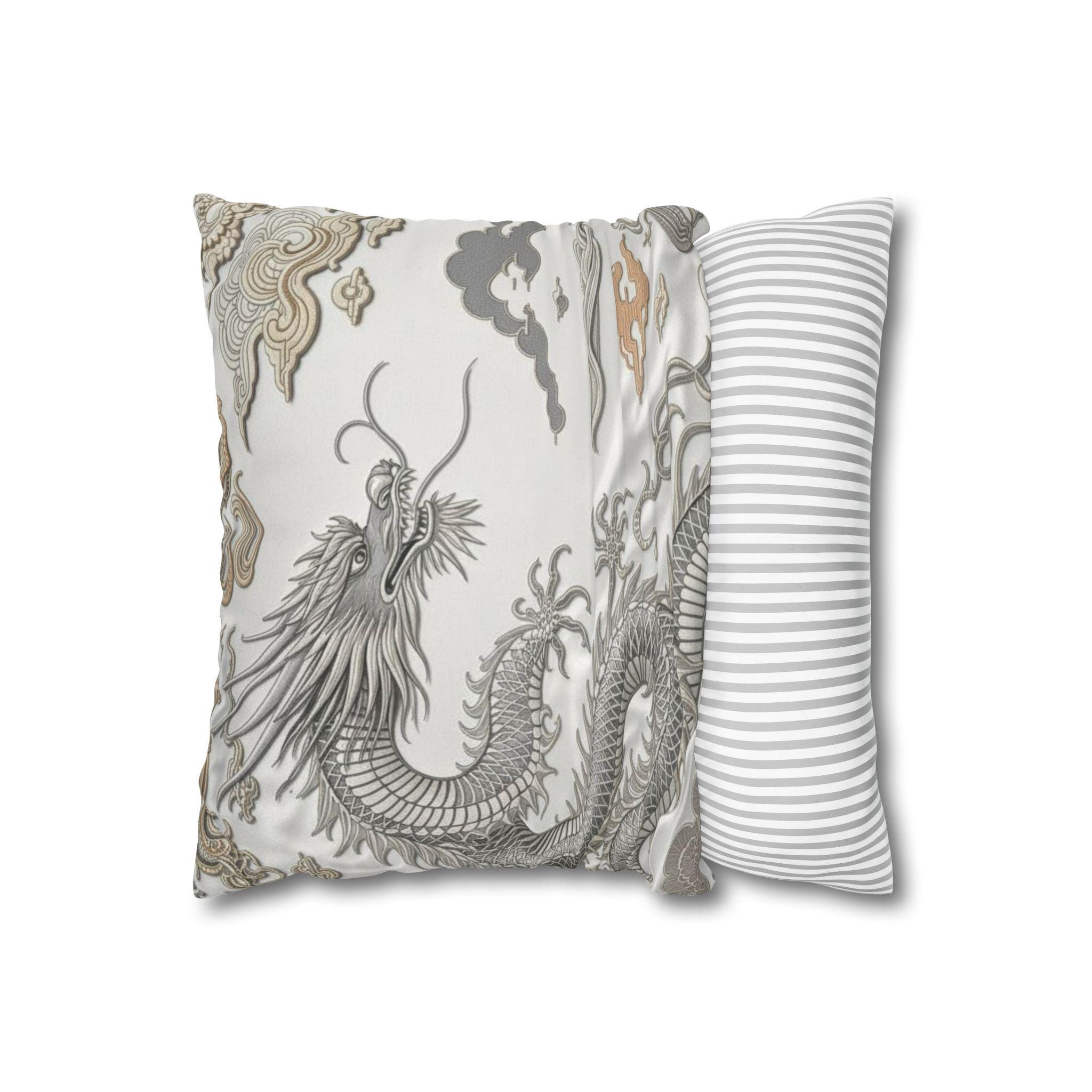 Dragon-Inspired Faux Suede Square Pillowcase | Decorative Home Accent, Cozy Throw Pillow, Unique Gifts, Feng Shui Decor, Luxury Cushion