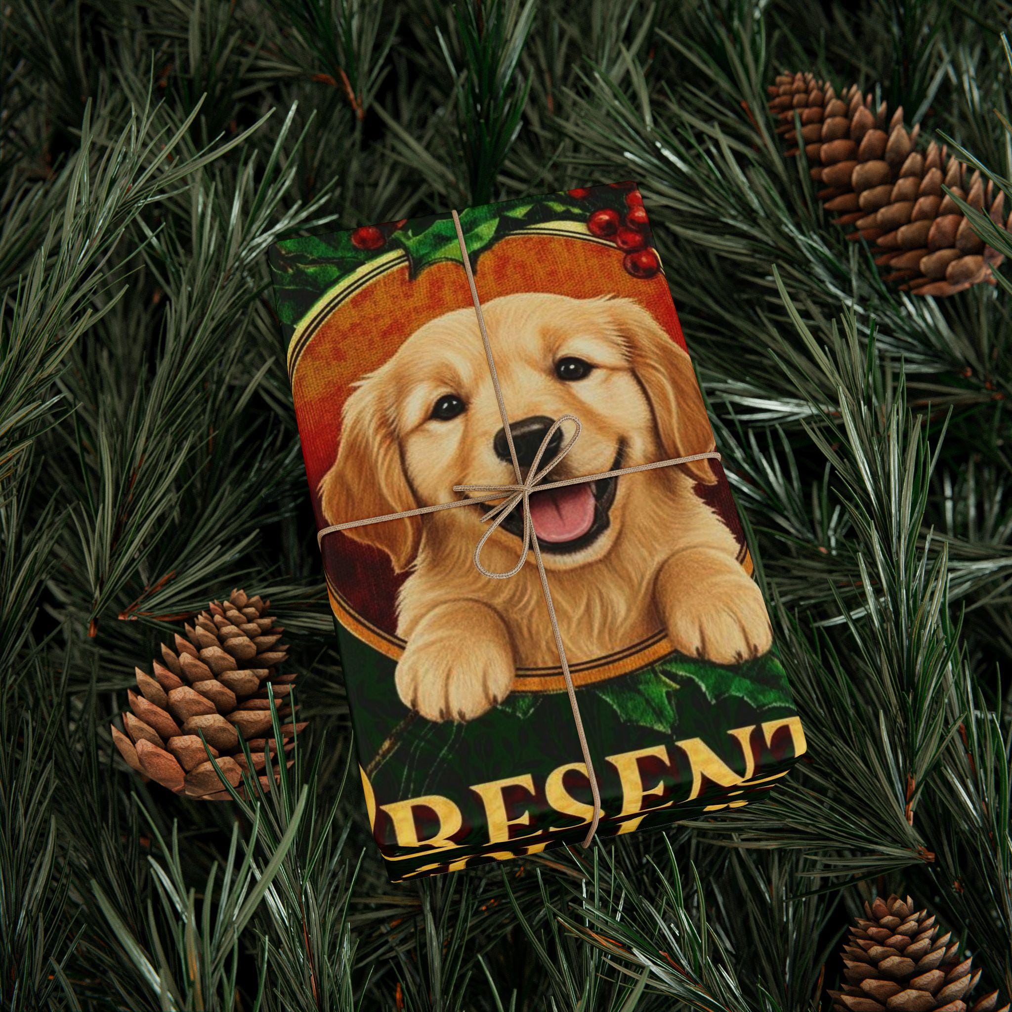 High Quality Christmas Wrapping Paper, Festive Gift Wrap Unique Gift Wrap for Any Occasion Gift for Dog Moms Dog Lovers Golden Retriever