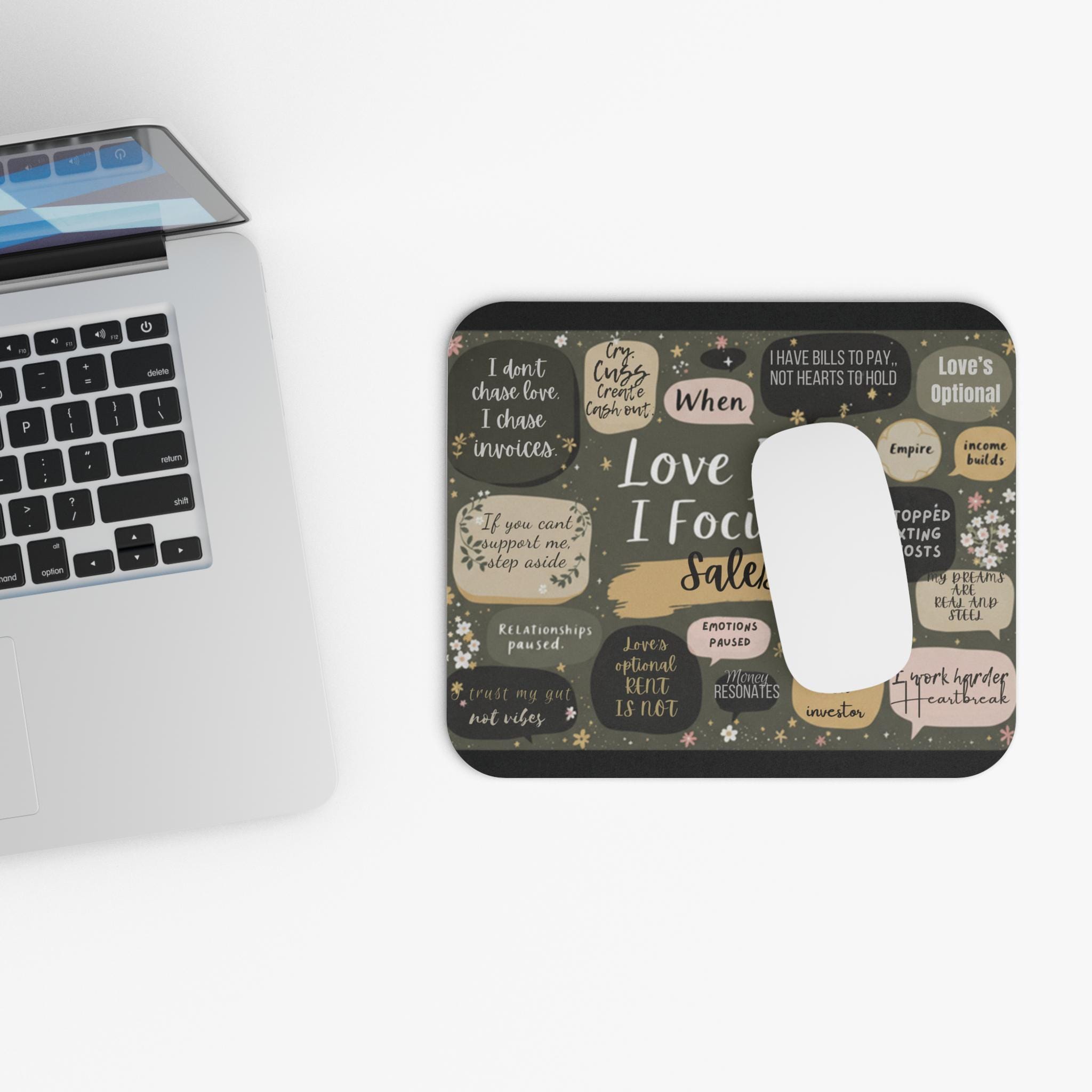 Elevate your workspace with this stylish and unique mouse pad that brings a vibrant touch to your desk. The intricate design showcases bright colors and playful phrases, creating an atmosphere of inspiration and creativity. Perfect for home offices or gaming setups, it enhances productivity while adding a fun twist to your environment. Ideal for students, professionals, or anyone who loves to add personality to their desk. This mouse pad makes a thoughtful gift for birthdays, holidays, or as a little treat for yourself!