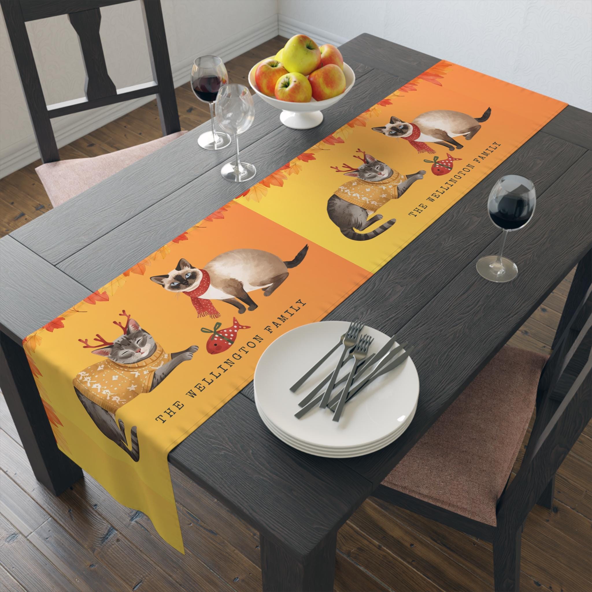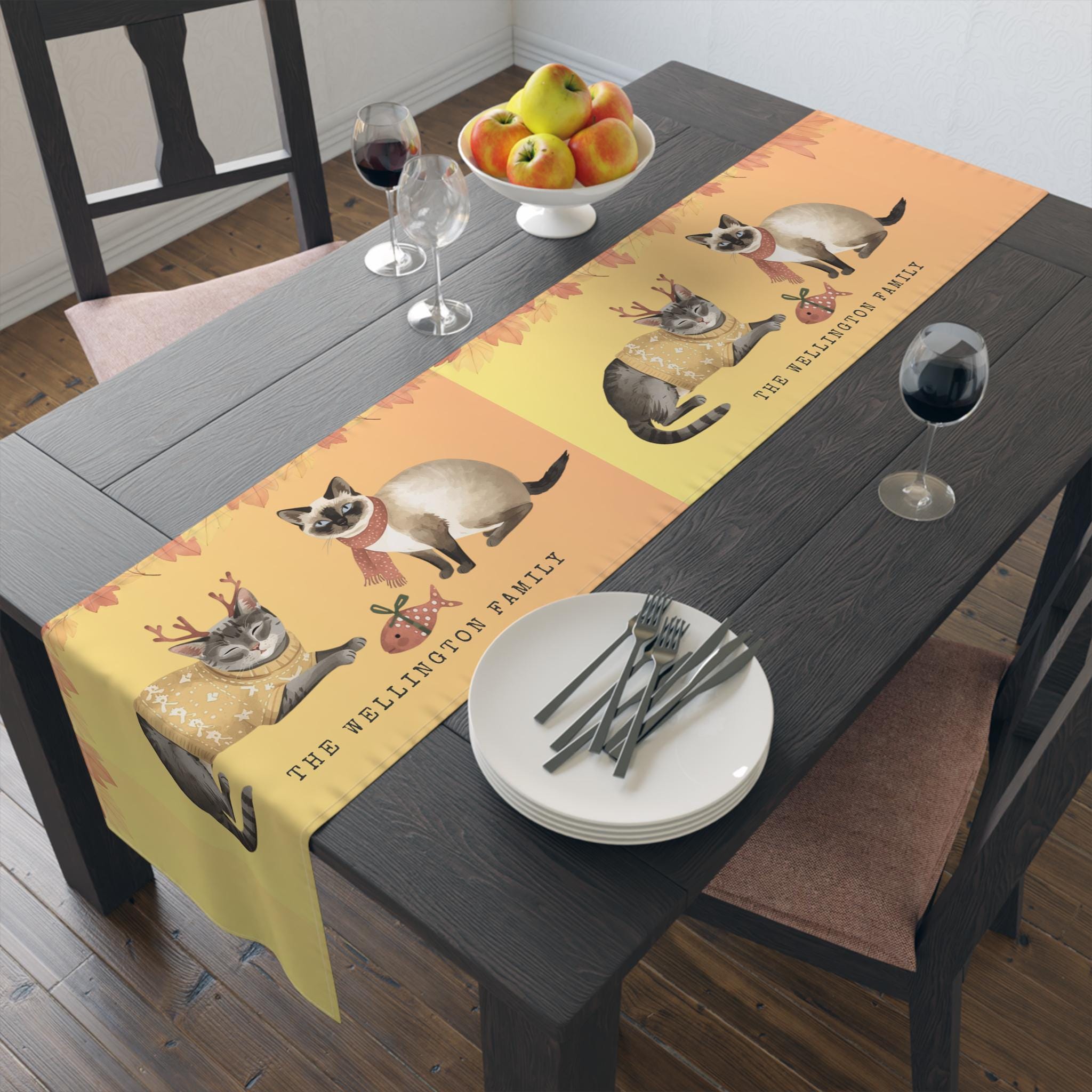 Elevate your dining experience with this delightful Table Runner. Perfect for adding a splash of color and personality to your gatherings, it radiates warmth and charm. Designed to fit seamlessly into cozy homes, it evokes a welcoming atmosphere that’s perfect for entertaining friends and family. Ideal for cat lovers, this runner makes a unique statement piece for your holiday dinner or everyday meals. Whether decorating for Thanksgiving, Christmas, or special occasions, this product enhances the ambiance and showcases your style. Celebrate in style and create memorable moments with every meal!