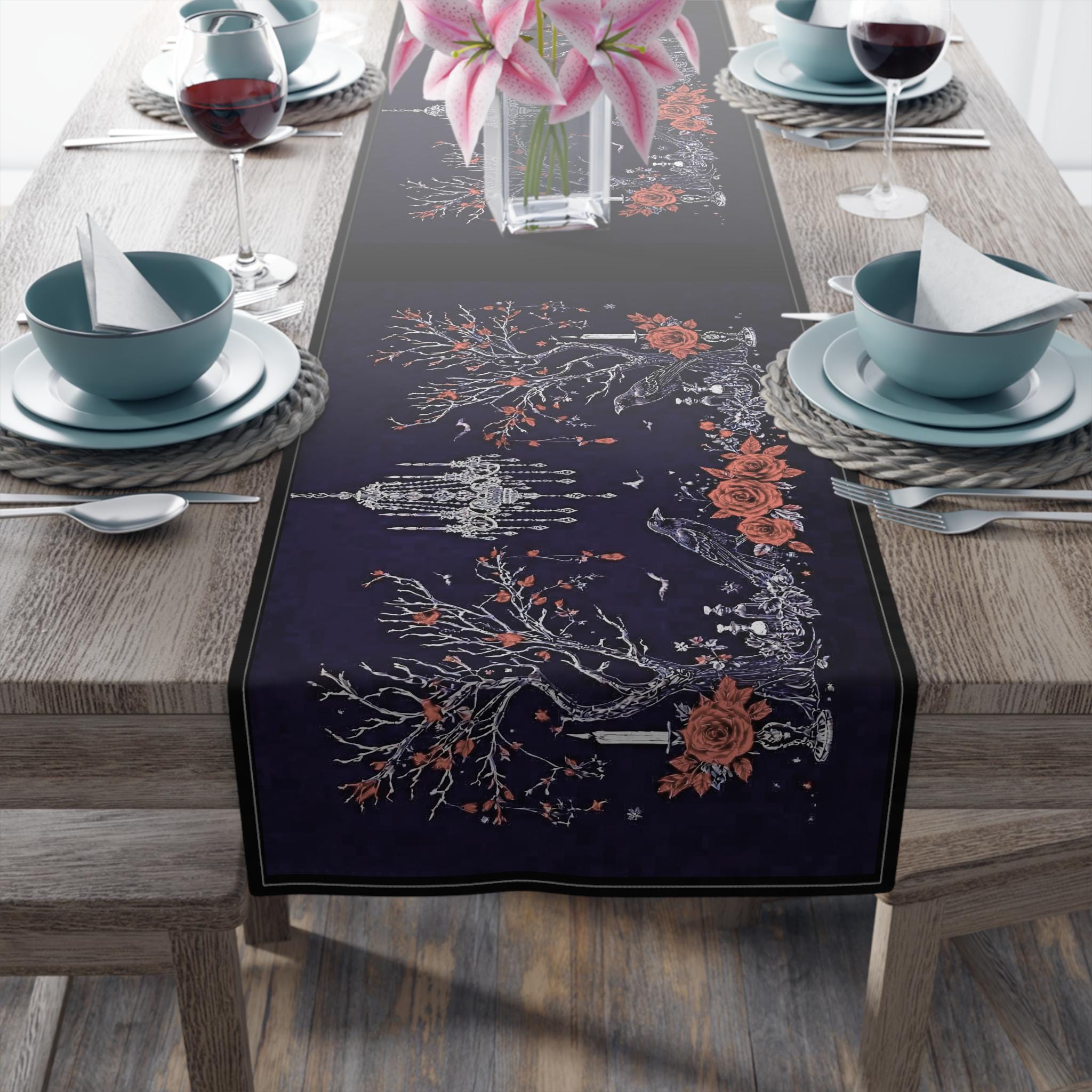 Product features - Available in two sizes: 16" x 72" and 16" x 90" for versatile use. - 100% Polyester option offers sharp and vibrant designs, perfect for lively celebrations. - 100% Cotton Twill option provides a classic and muted look, ideal for understated elegance. - Hemmed edges enhance durability, ensuring the runner lasts through multiple occasions. - One-sided print showcases stunning designs, making it a standout piece on any table.