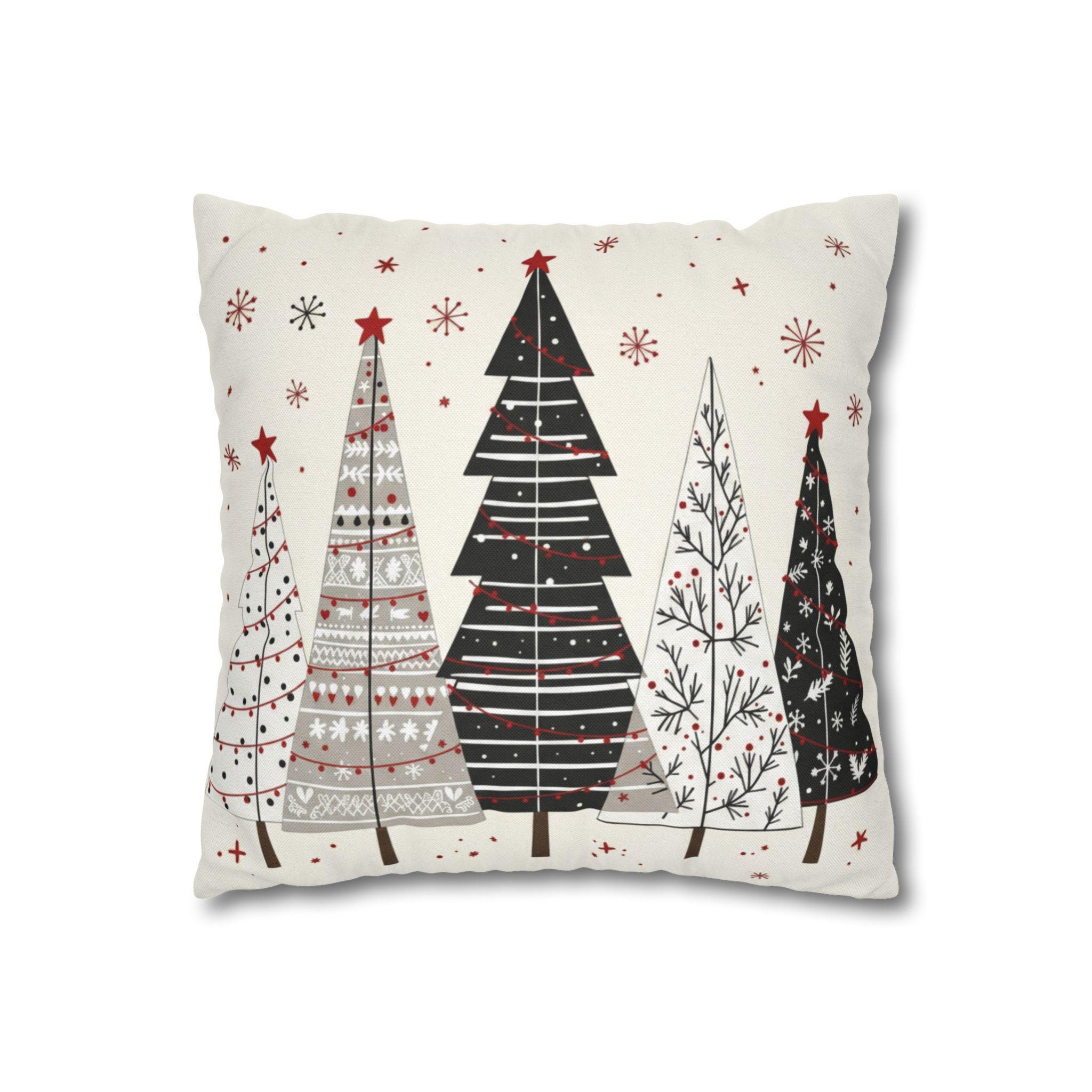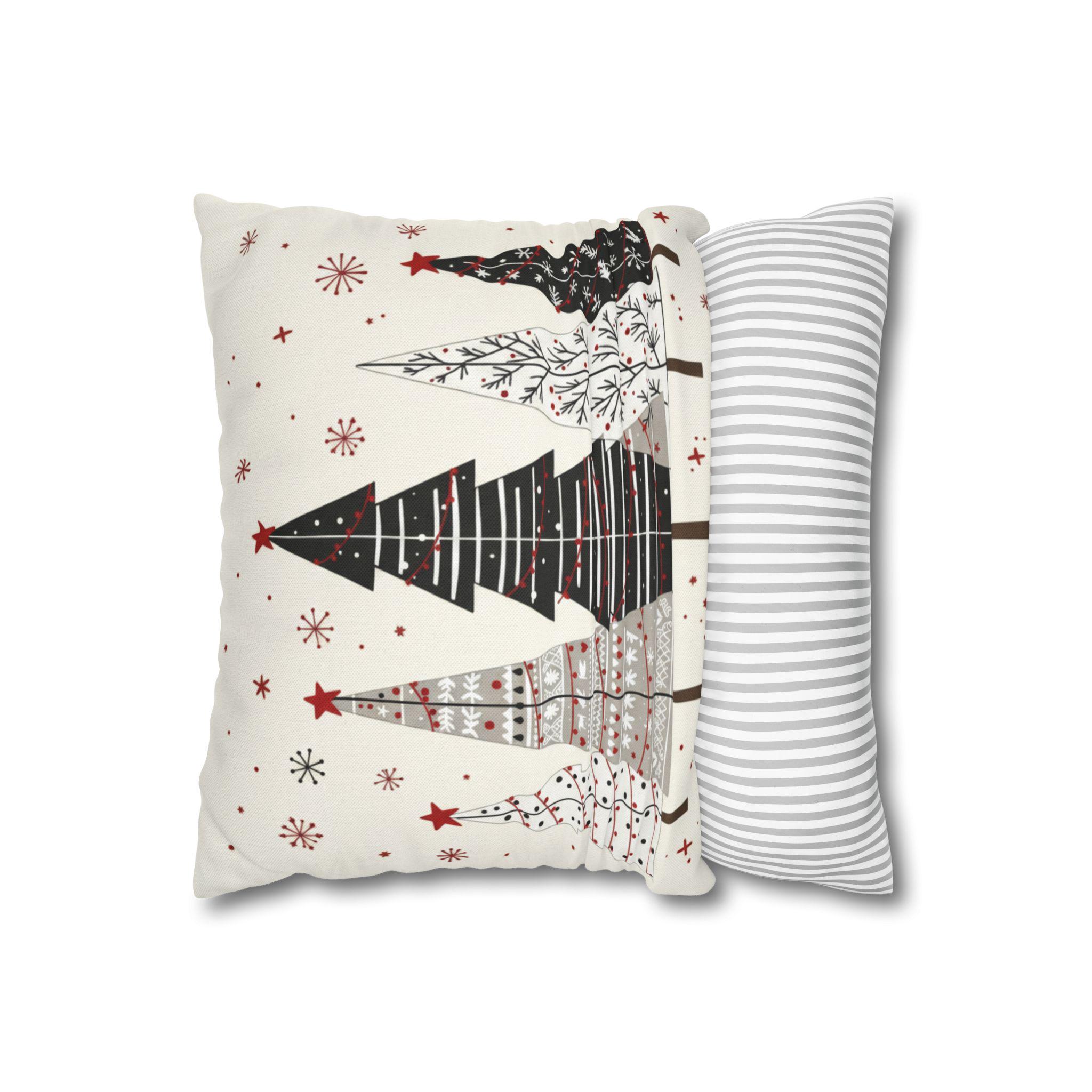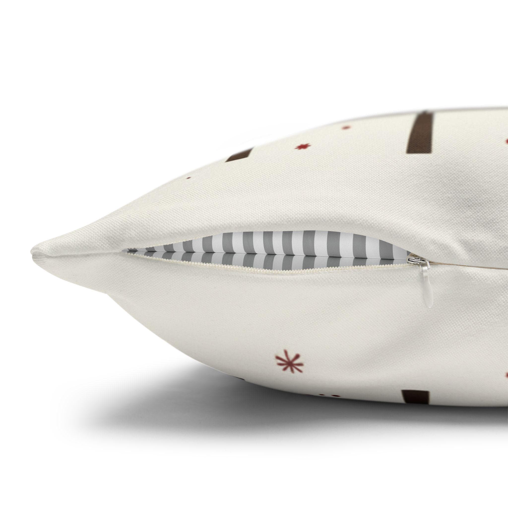 Soft, square pillow cover with a cozy, hand-illustrated forest of stylized Christmas trees on a warm cream background. The double-sided print keeps the design crisp and vibrant, while the spun polyester fabric holds its shape and resists wrinkles so the cover looks tidy without ironing. A concealed beige zipper blends into the edge for a seamless look. Slip it over your own insert to add vintage-holiday charm to a sofa, armchair, or entry bench — it brings quiet, nostalgic winter warmth to any comfy corner.