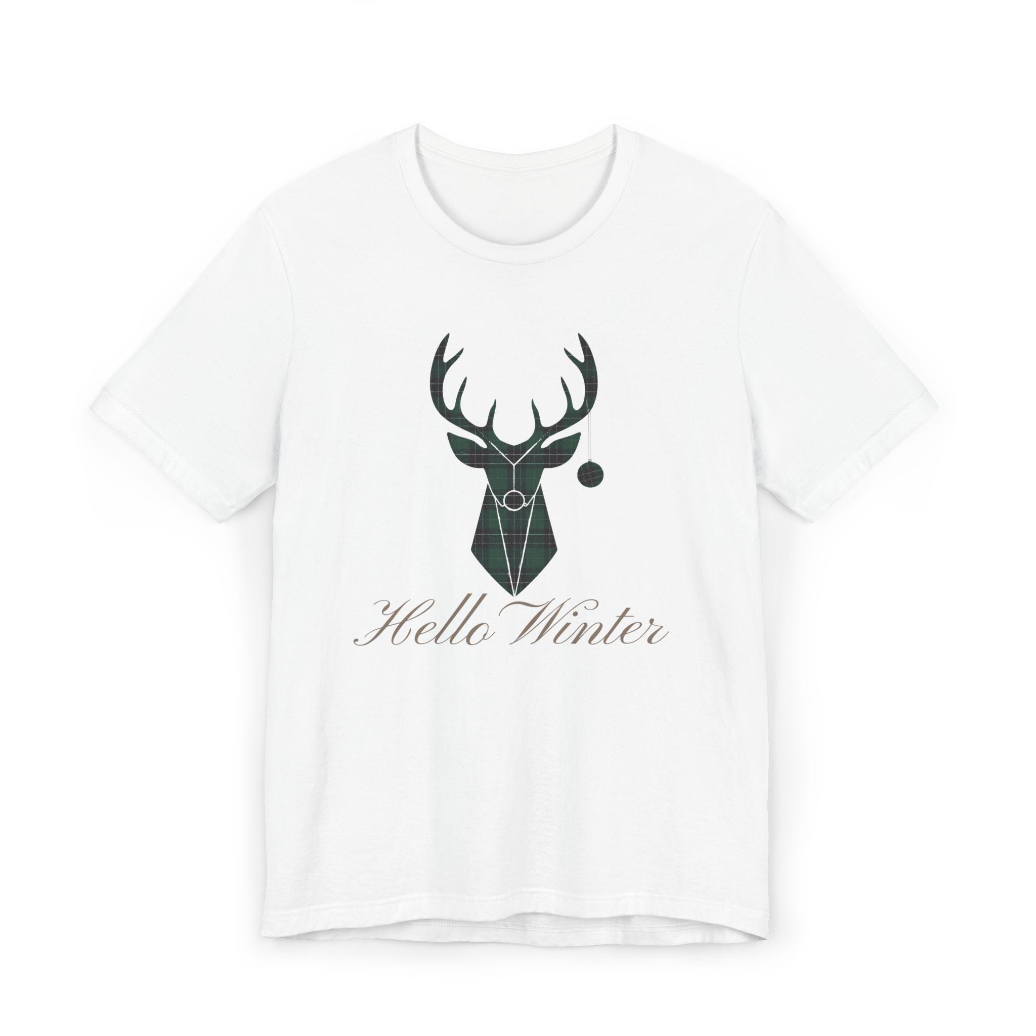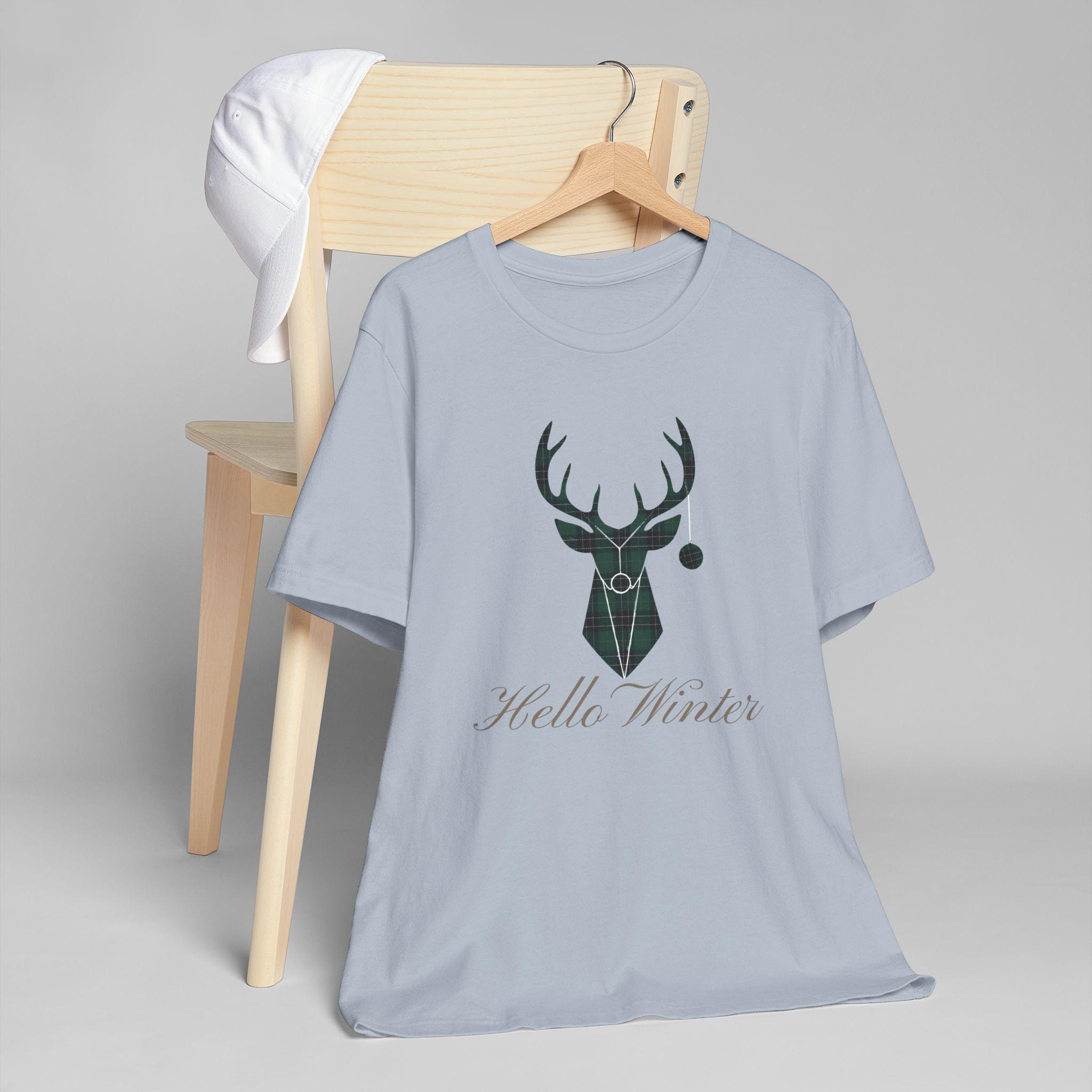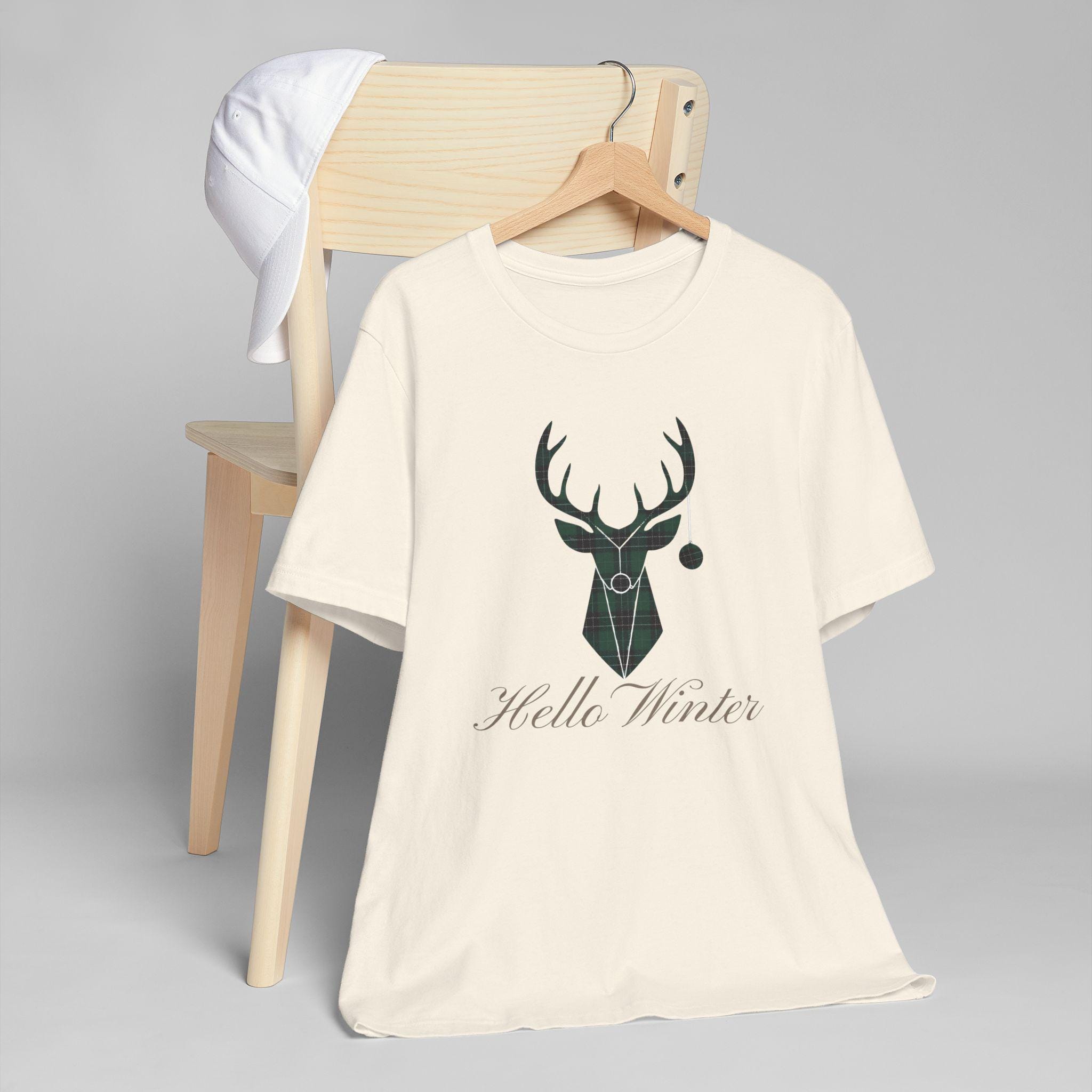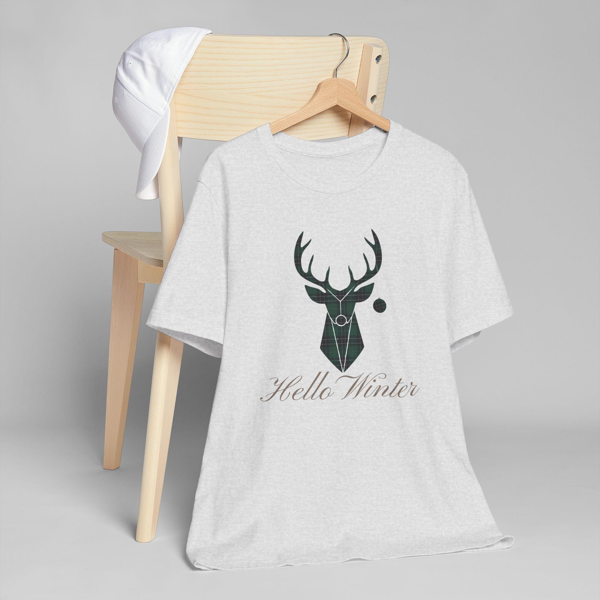 Soft, breathable, and quietly stylish — this lightweight tee brings a cool, winter-minimalist vibe to everyday wear. A geometric stag emblem rests above an elegant “Hello Winter” script, blending nature-inspired symbolism with modern graphic lines. The crew neckline and retail fit keep the silhouette relaxed and easy to layer, while the featherweight cotton fabric lets you move freely whether you’re out on a chilly walk, sipping cocoa by a window, or pairing it under a knit cardigan. Subtle details like the ribbed collar, shoulder tape, and side seams mean this shirt wears well over time, keeping its shape and structure without fuss. It’s a calm, artful piece for people who appreciate quiet seasonal moments and clean design.
