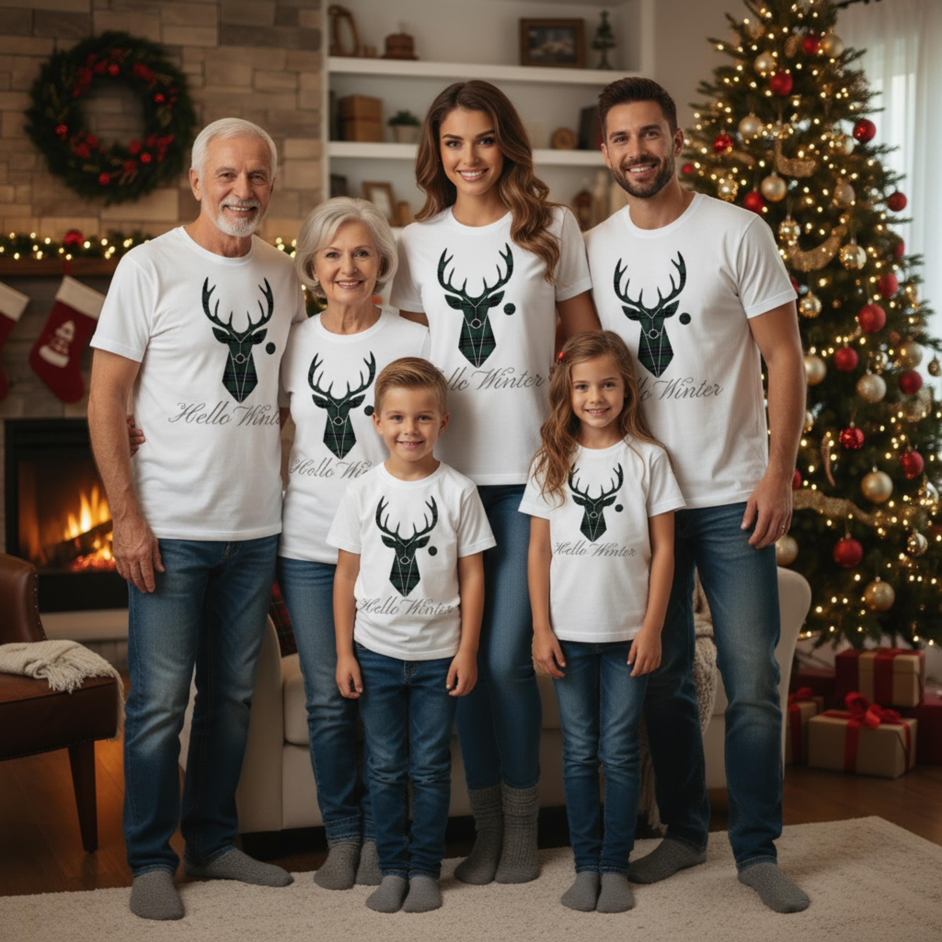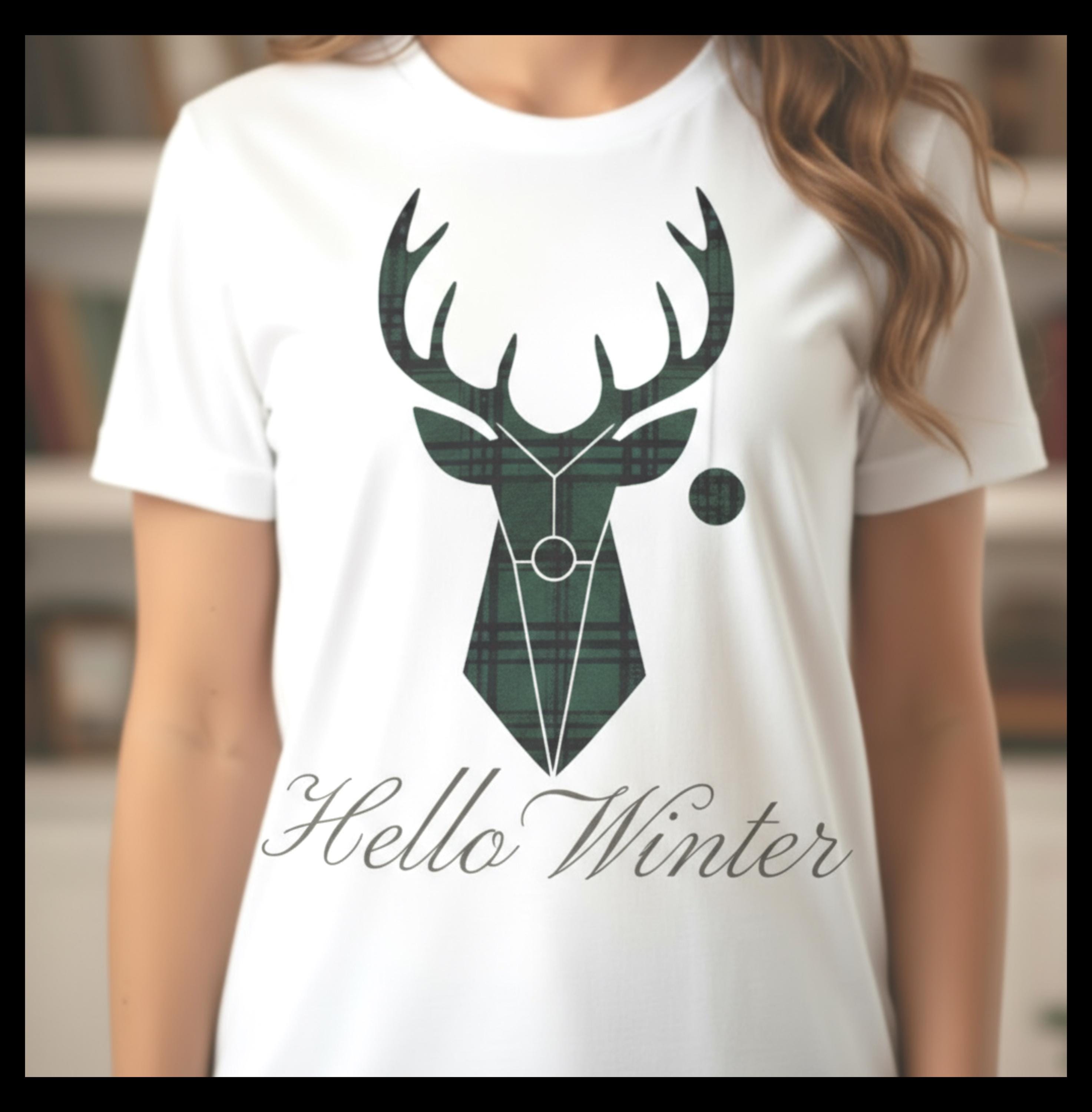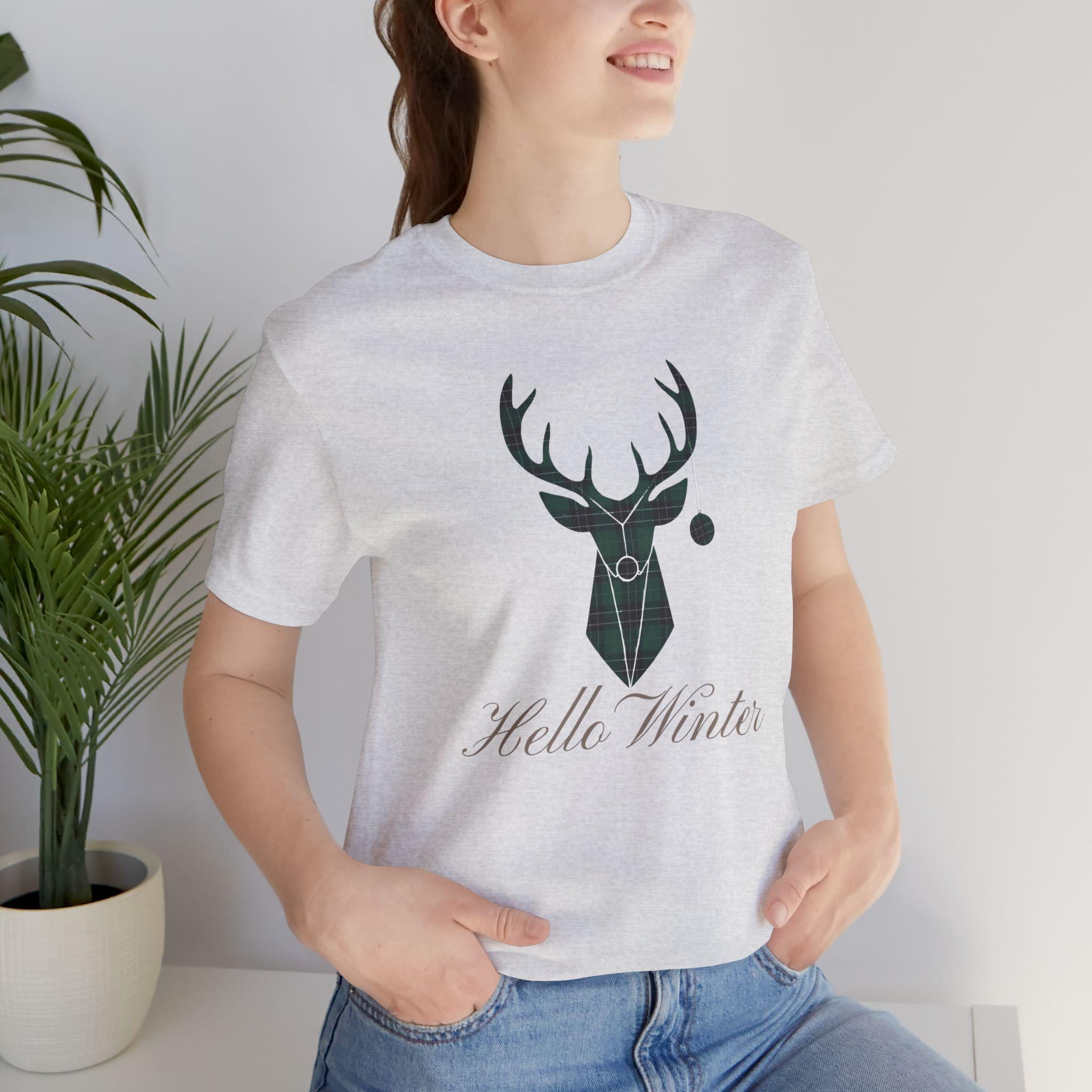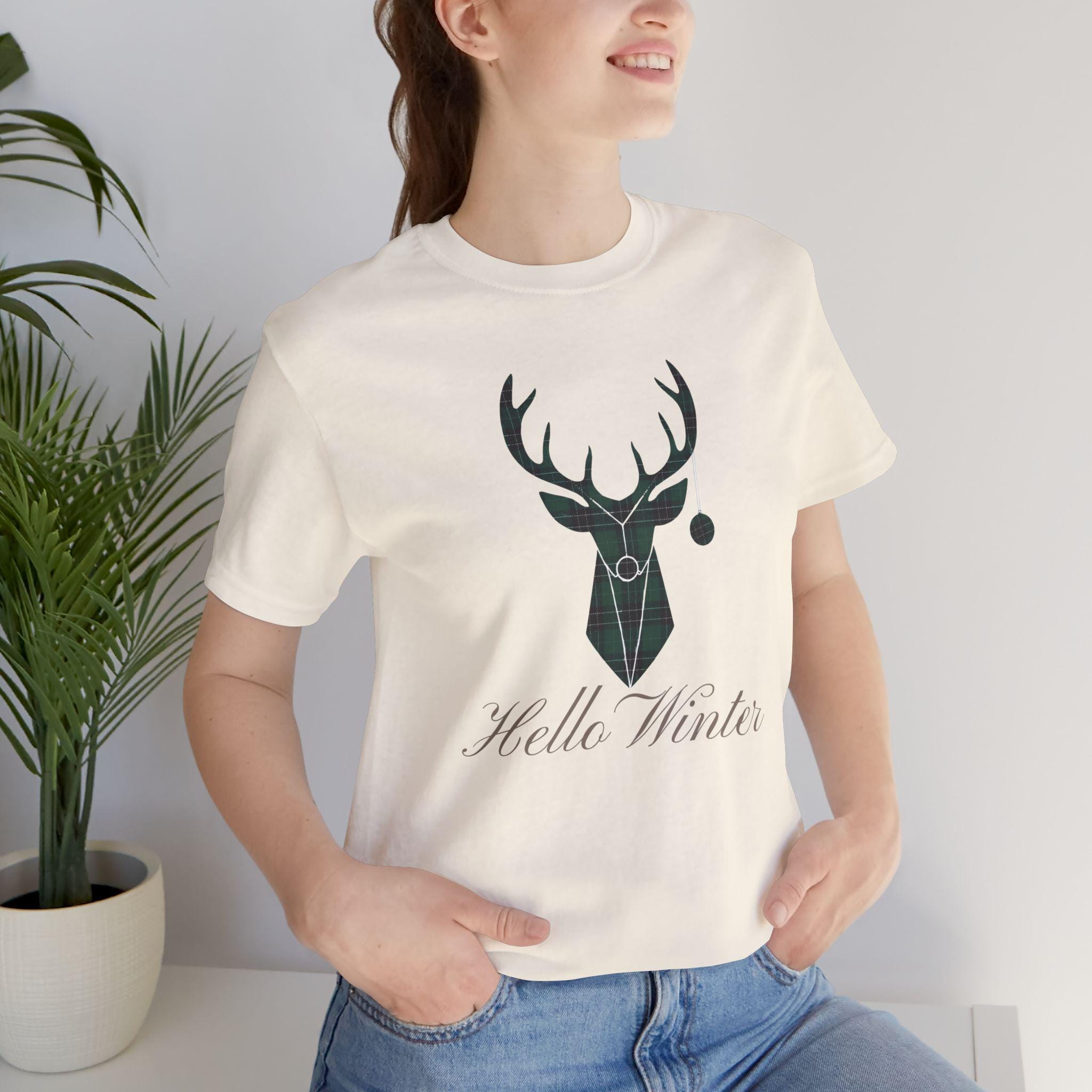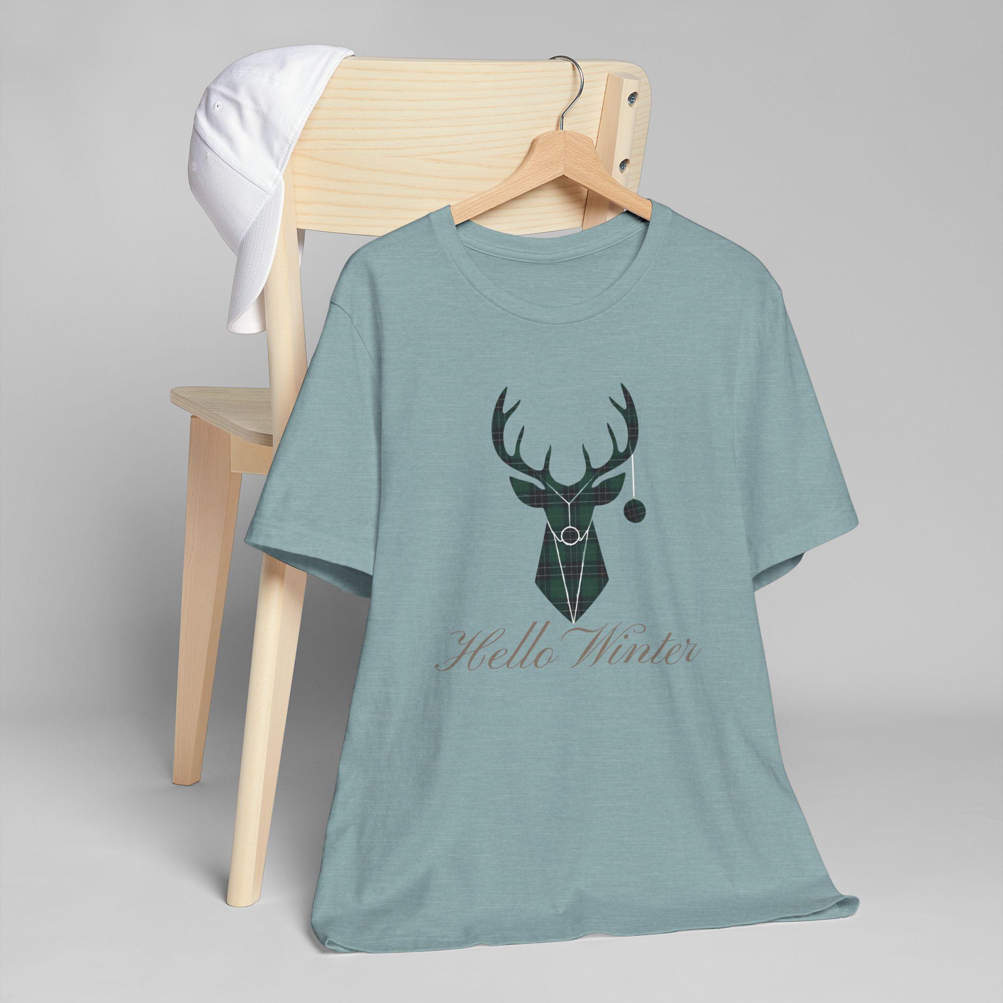 Soft, breathable, and quietly stylish — this lightweight tee brings a cool, winter-minimalist vibe to everyday wear. A geometric stag emblem rests above an elegant “Hello Winter” script, blending nature-inspired symbolism with modern graphic lines. The crew neckline and retail fit keep the silhouette relaxed and easy to layer, while the featherweight cotton fabric lets you move freely whether you’re out on a chilly walk, sipping cocoa by a window, or pairing it under a knit cardigan. Subtle details like the ribbed collar, shoulder tape, and side seams mean this shirt wears well over time, keeping its shape and structure without fuss. It’s a calm, artful piece for people who appreciate quiet seasonal moments and clean design.