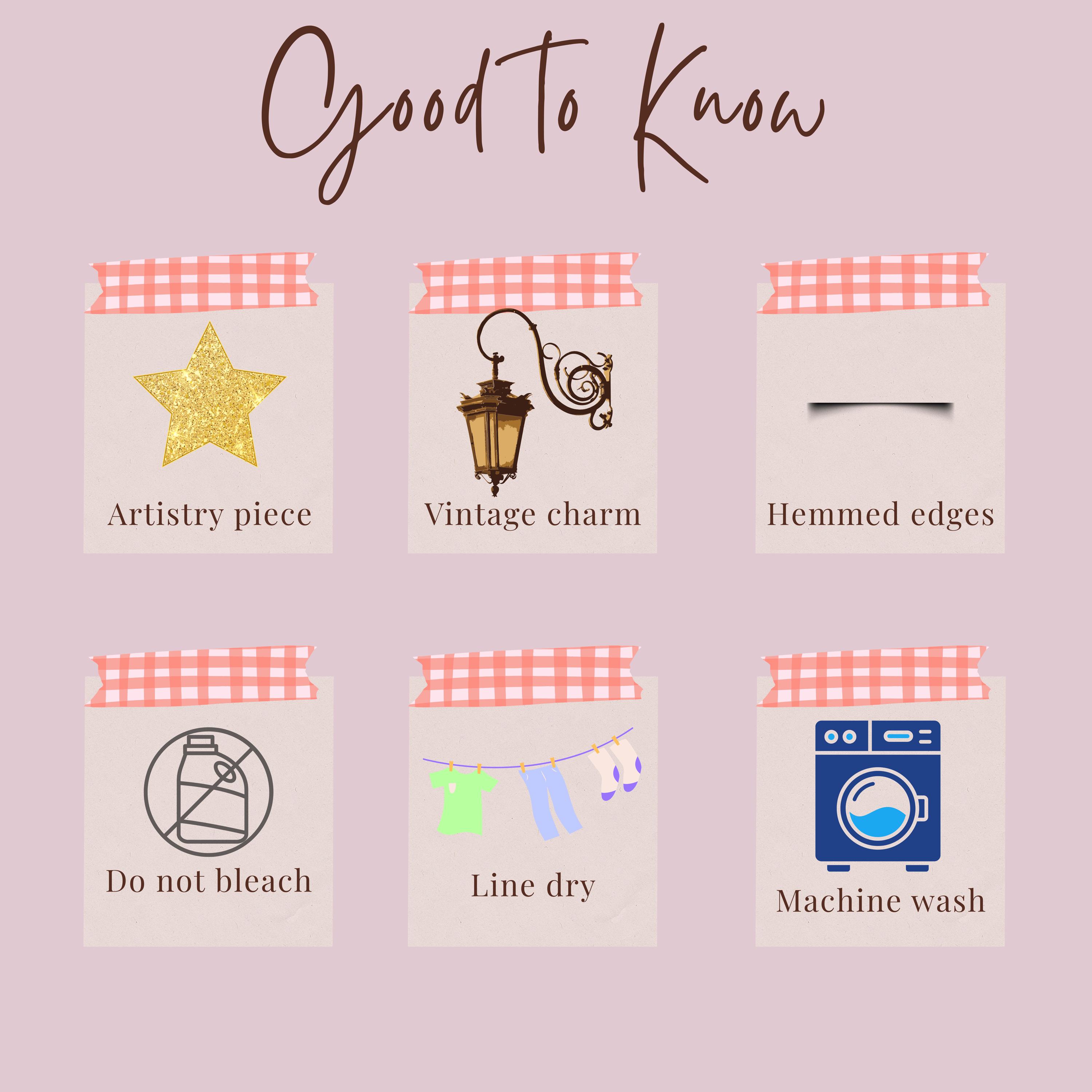 Care instructions - Machine wash: cold (max 30C or 90F), gentle cycle, mild detergent - Do not bleach - Line dry