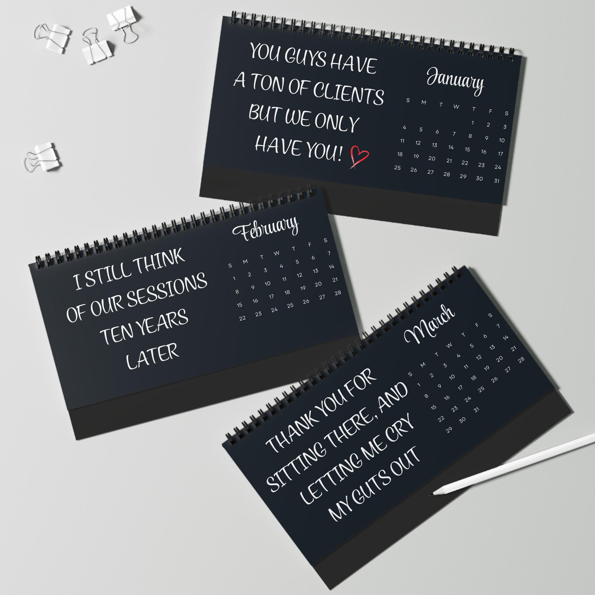 Things I Want to Say to My Therapist But I Didn't 2026 Desk Calendar is here to help you. Packed with quotes that really described the moments in the therapy container, this calendar is perfect for your therapist or co-worker in healthcare or maybe your supervisor who need a daily dose of heartfelt appreciation to survive the workday.