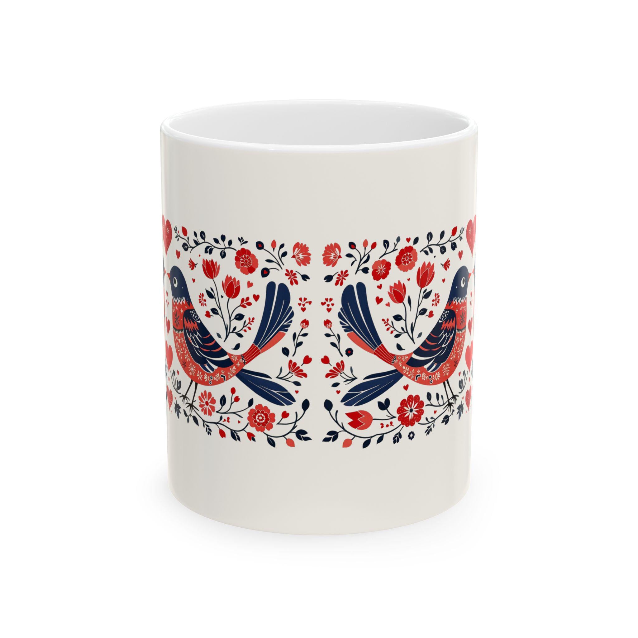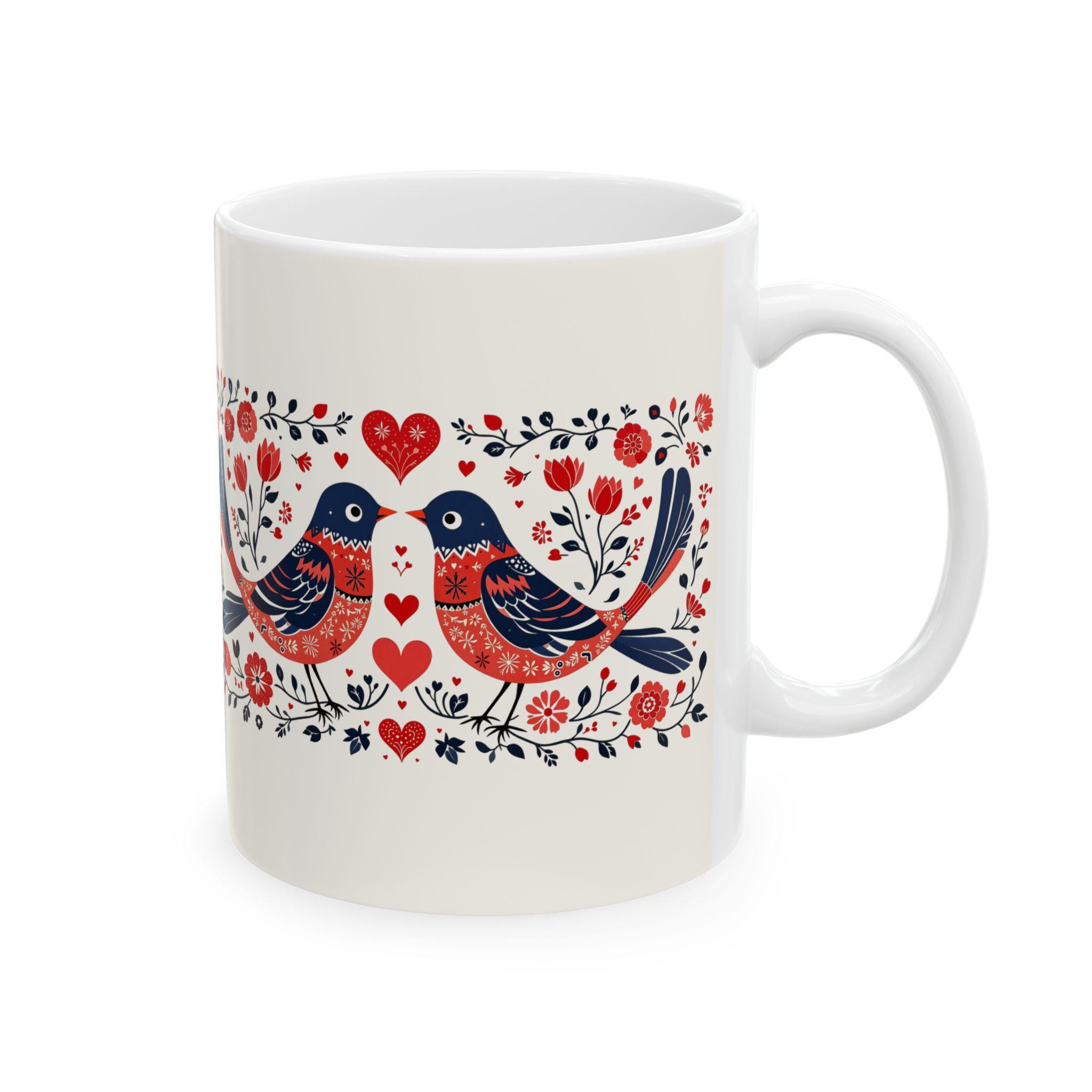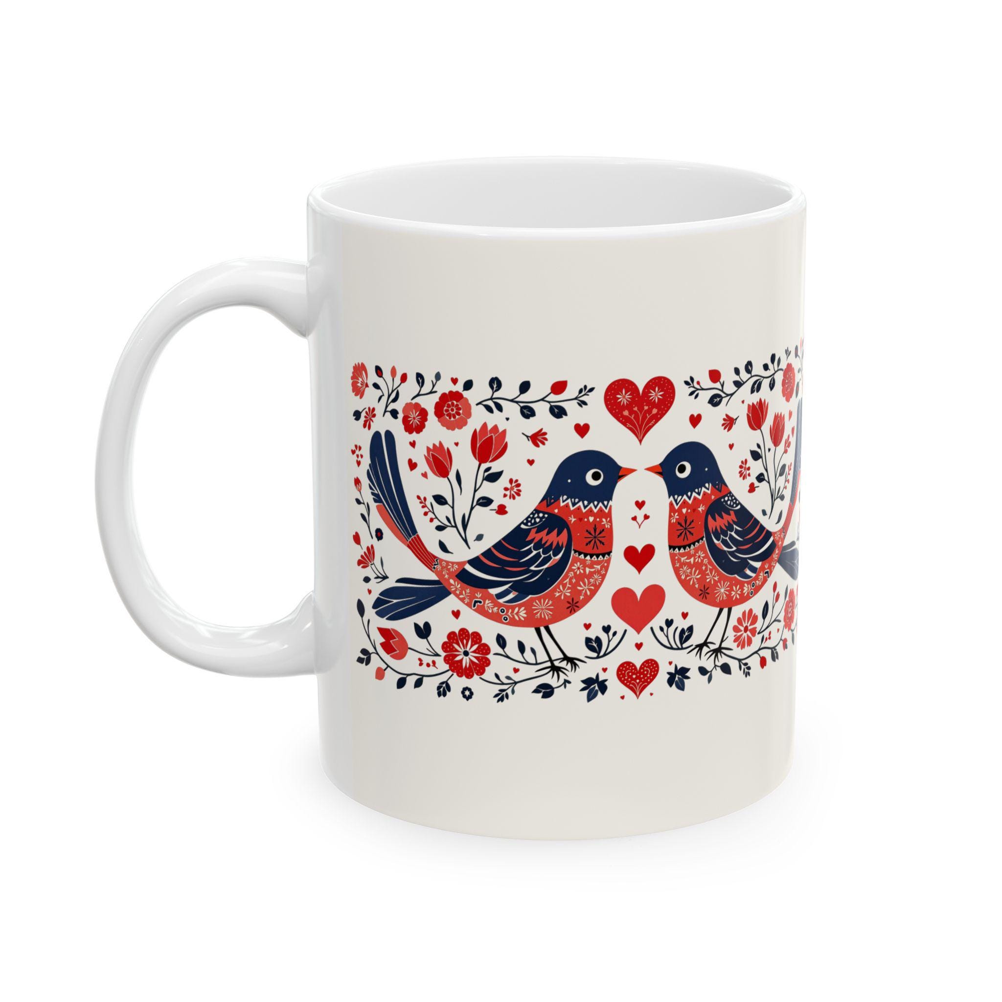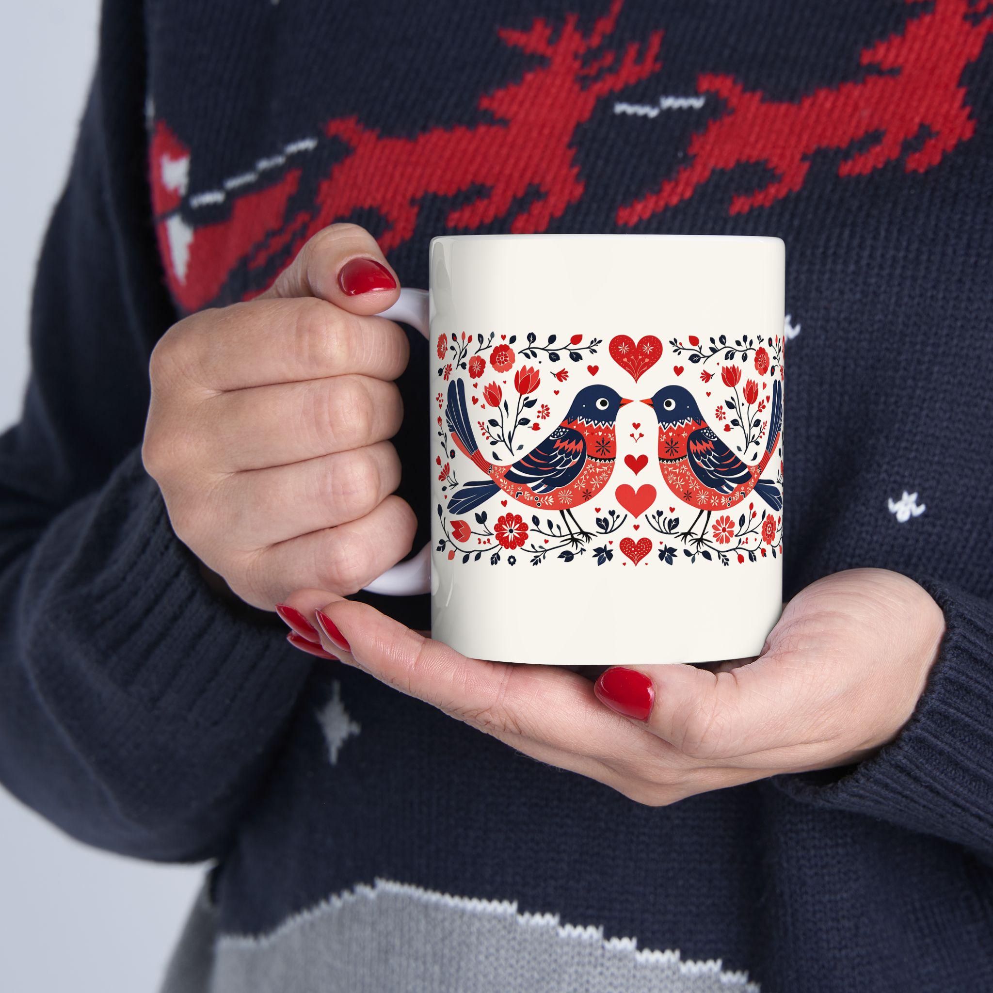 Nordic Folk Art Mug Hygge Gifts Scandinavian Christmas Mug Folk Art Lovebirds Norwegian Folk Art