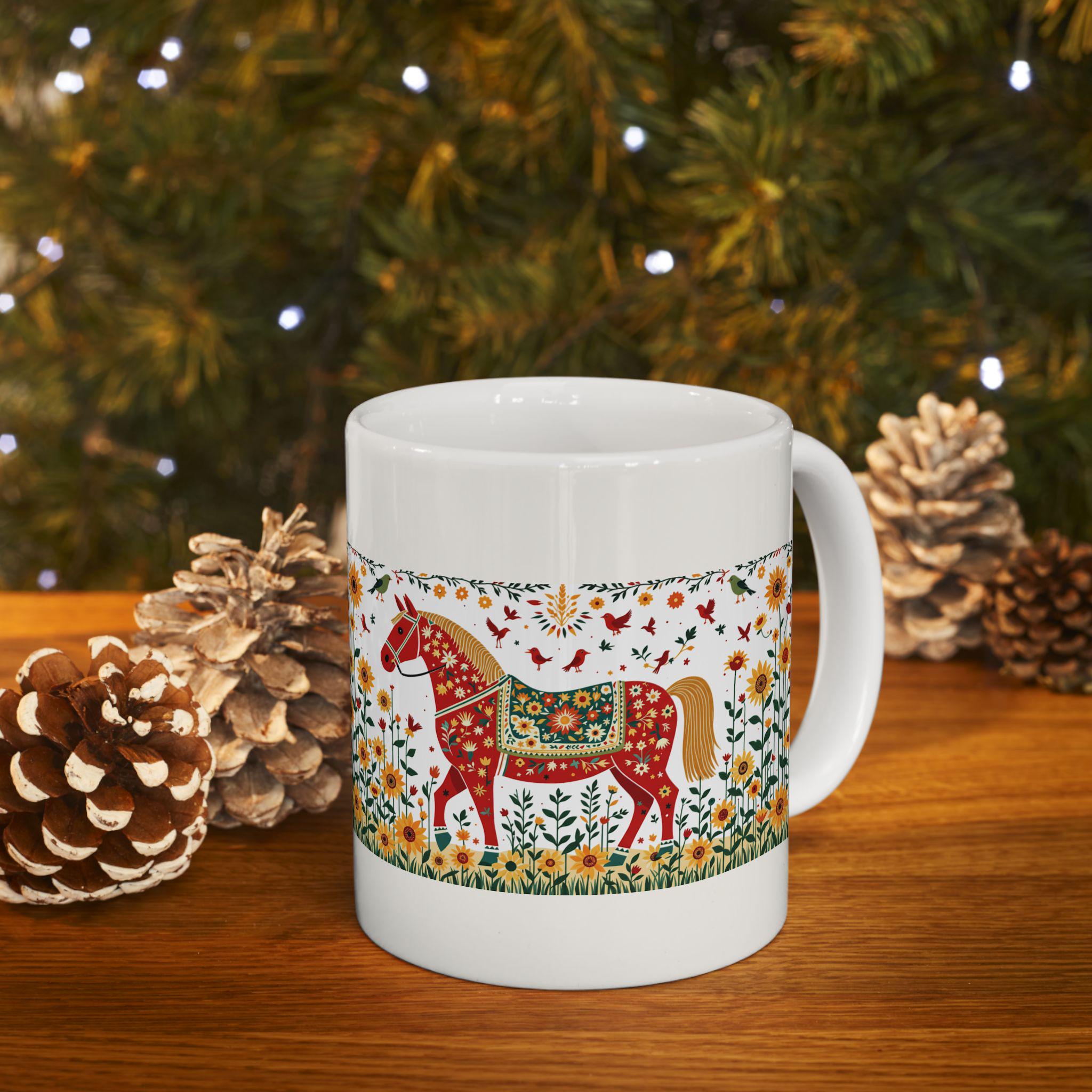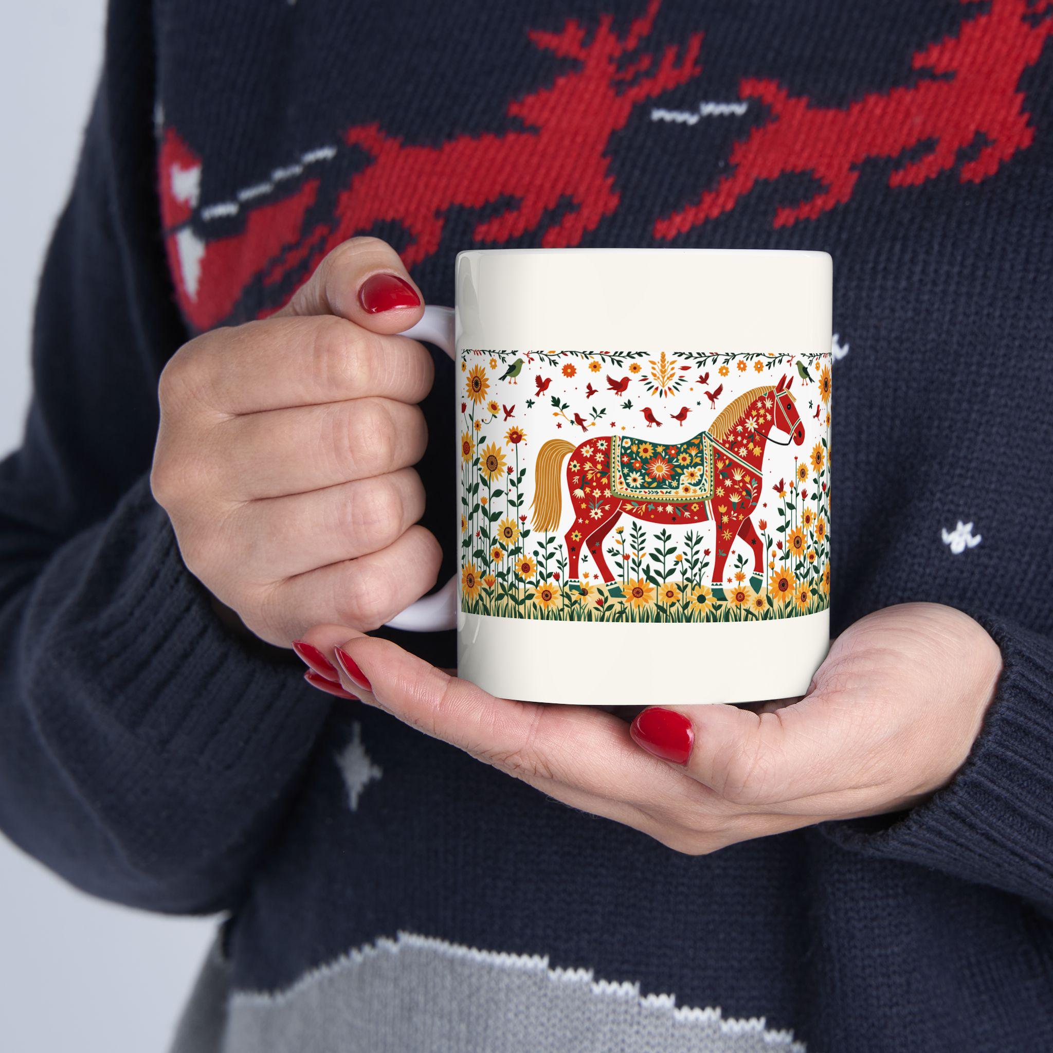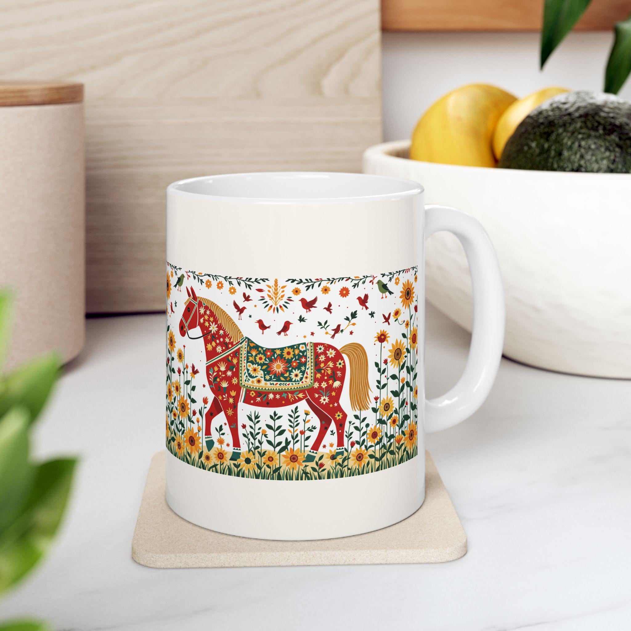 Nordic Folk Art Mug Hygge Gifts Scandinavian Christmas Mug Folk Art Red Dala Horse Norwegian Folk Art