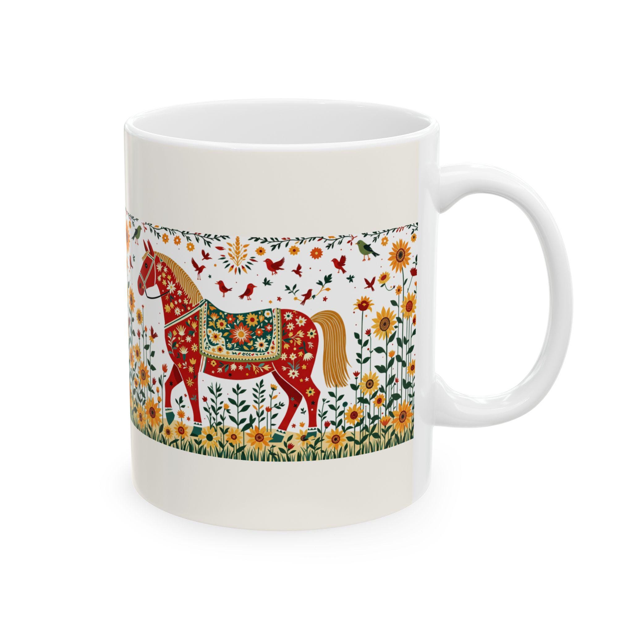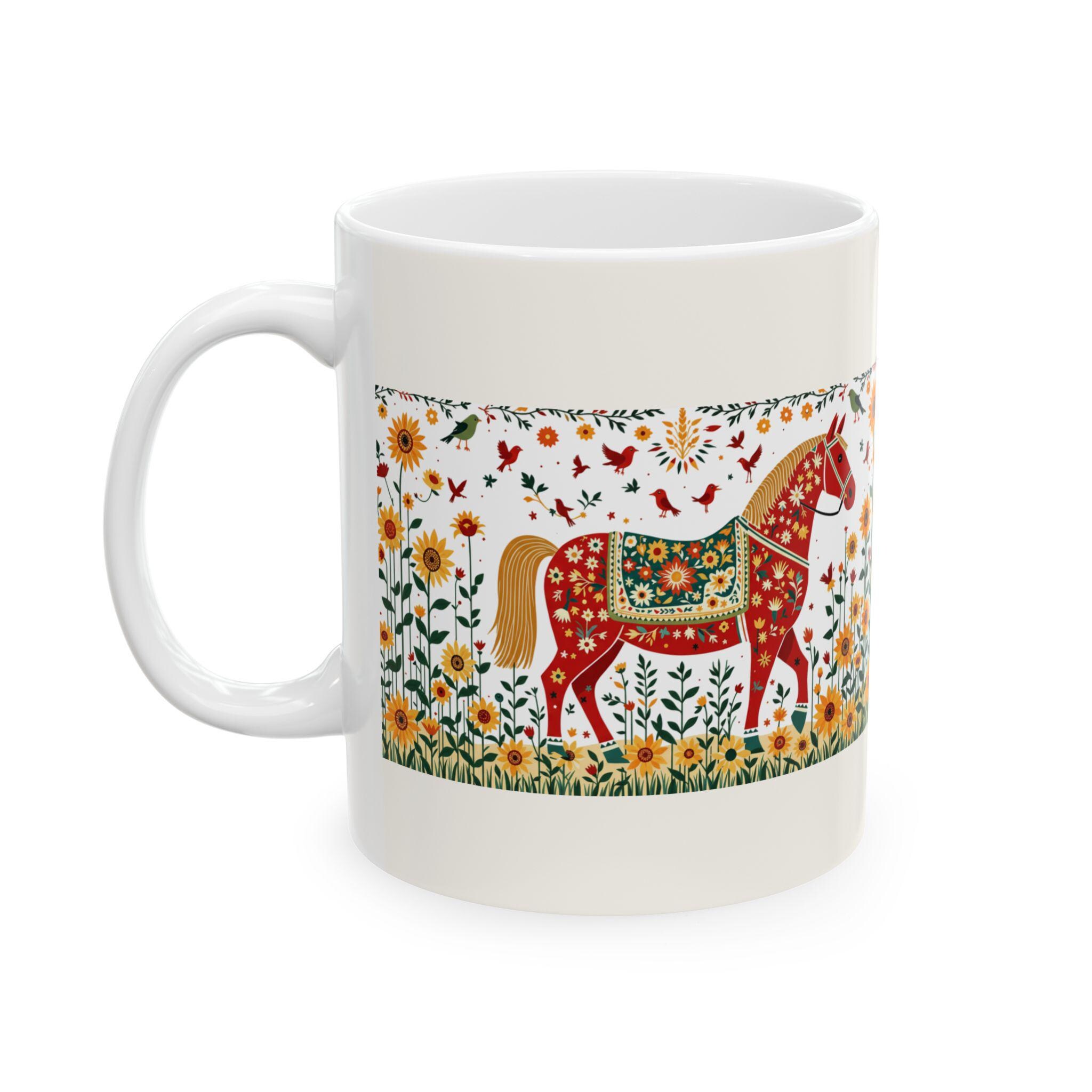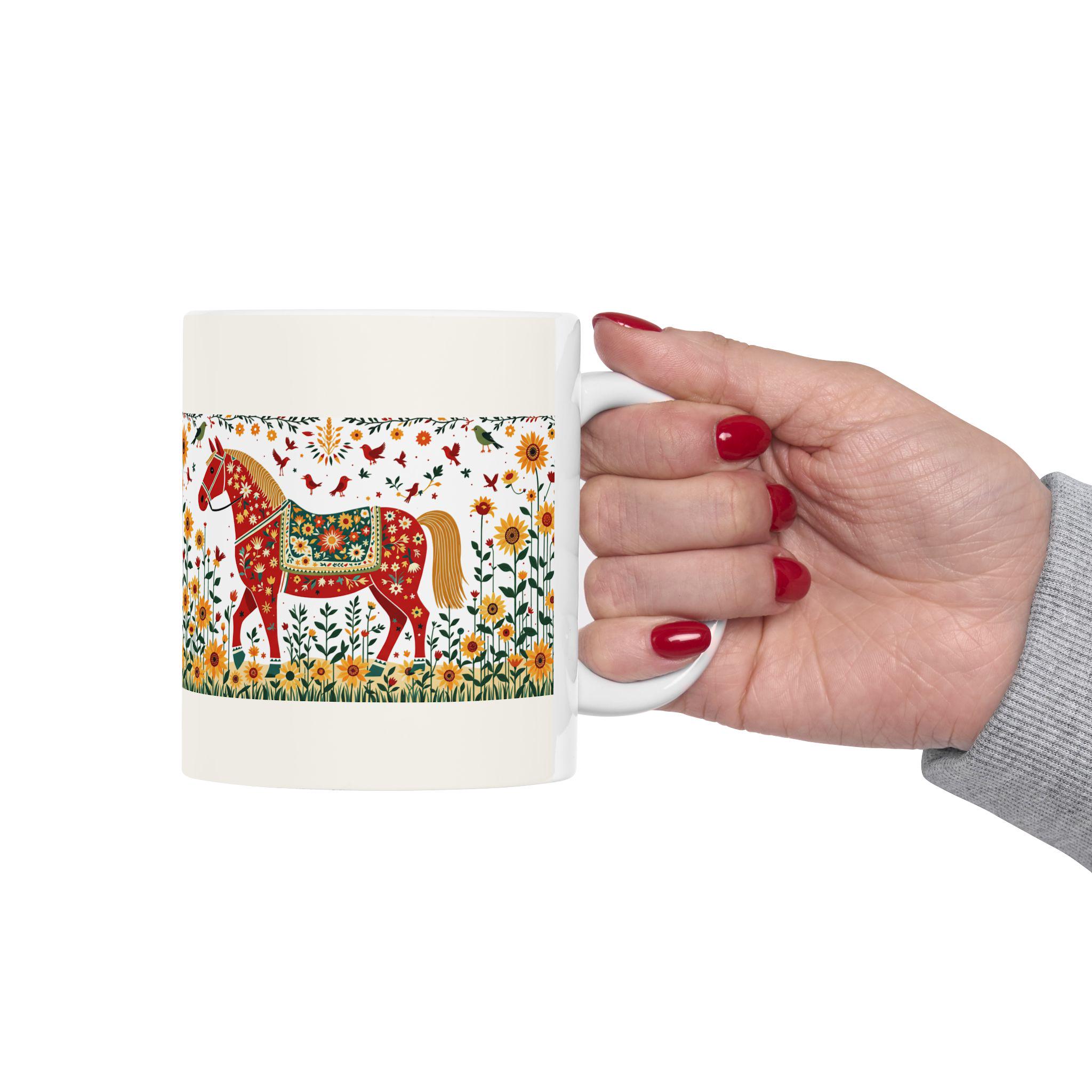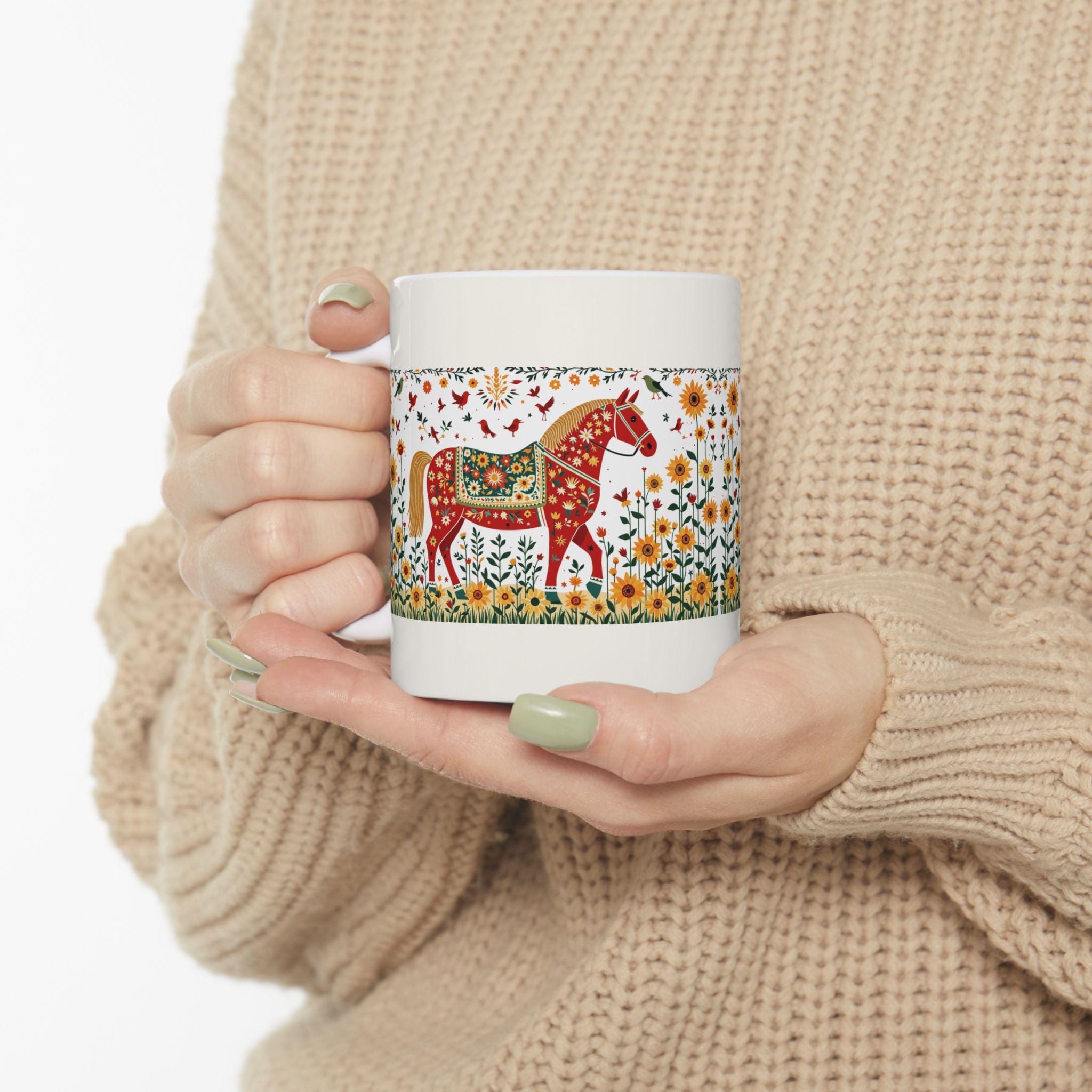 Nordic Folk Art Mug Hygge Gifts Scandinavian Christmas Mug Folk Art Red Dala Horse Norwegian Folk Art