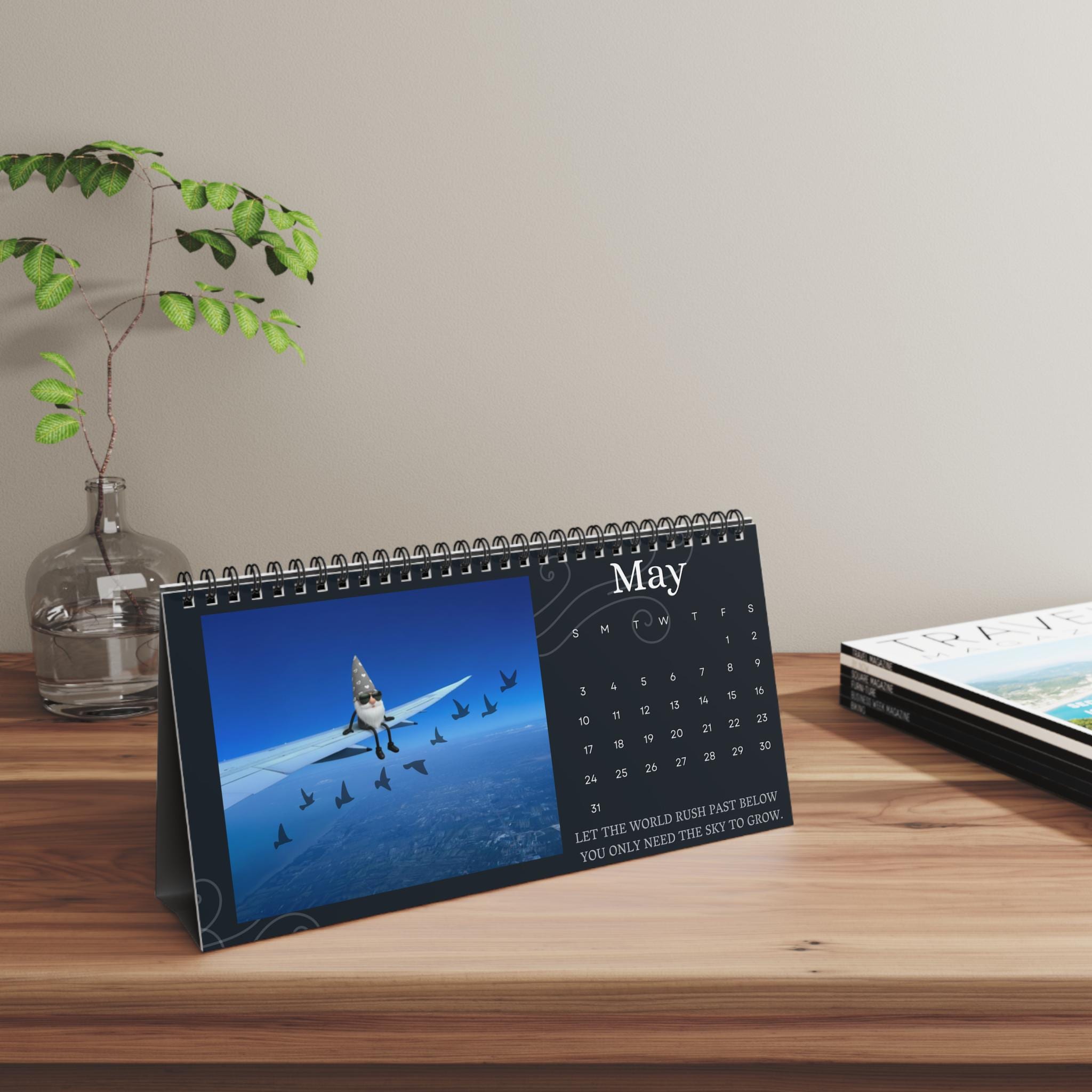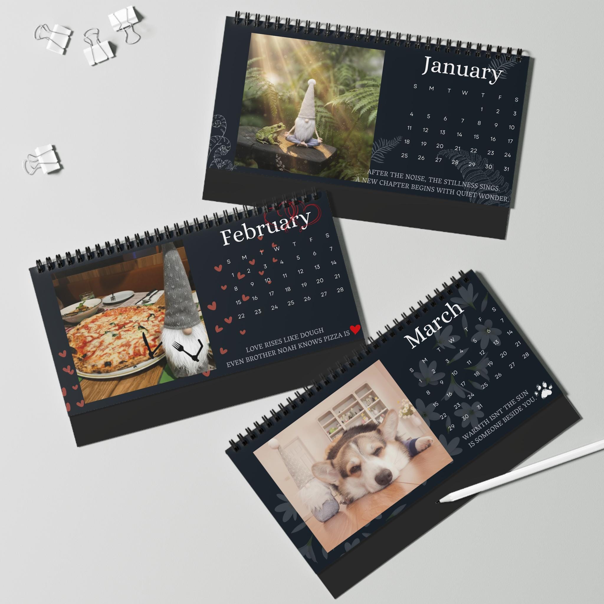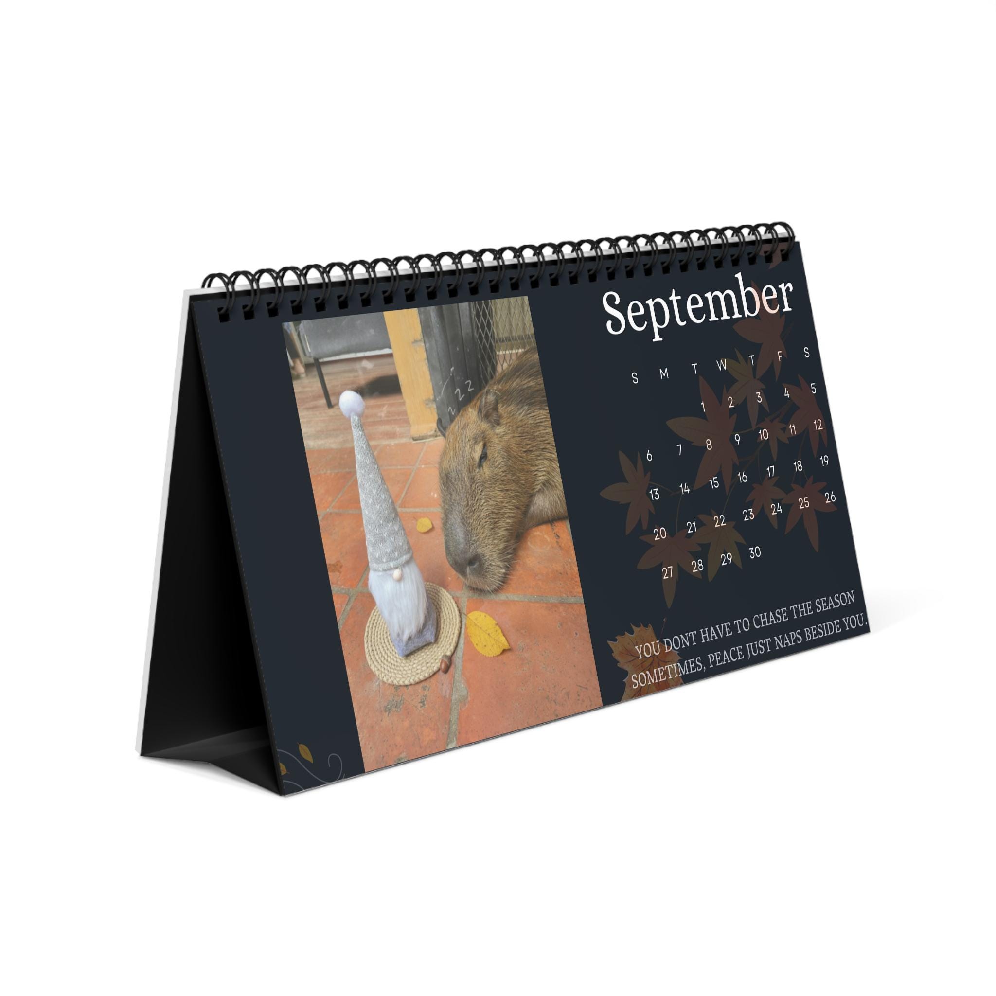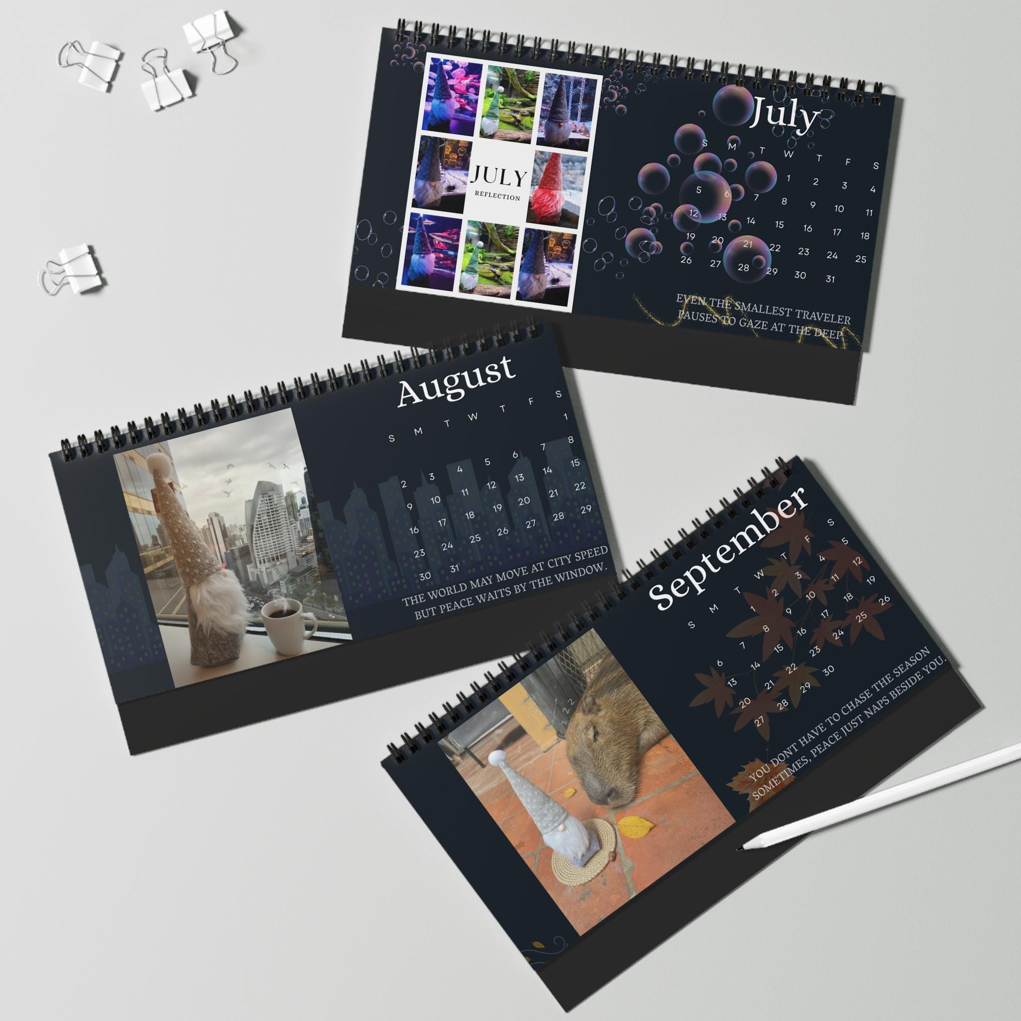 From plane wings to temple railings, sleepy cafés to capybara friends, each month captures a whimsical scene paired with a poetic 2-liner that invites you to slow down, smile, and maybe breathe a little deeper.
