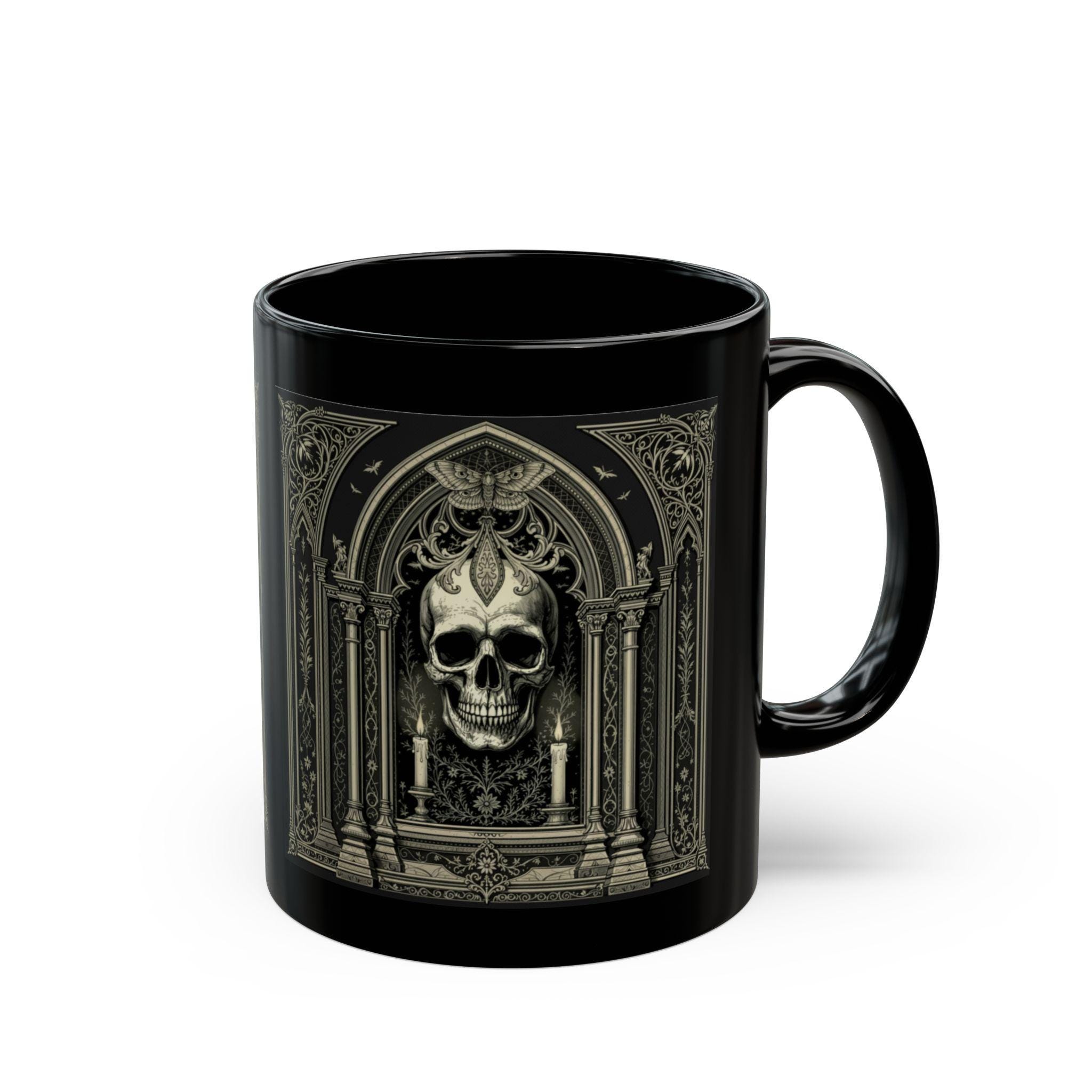 Gothic Gothmas Dark Academia Skull Moth Dark Arts Mug | Black Ceramic | Gothic Botanical Art 15oz Black