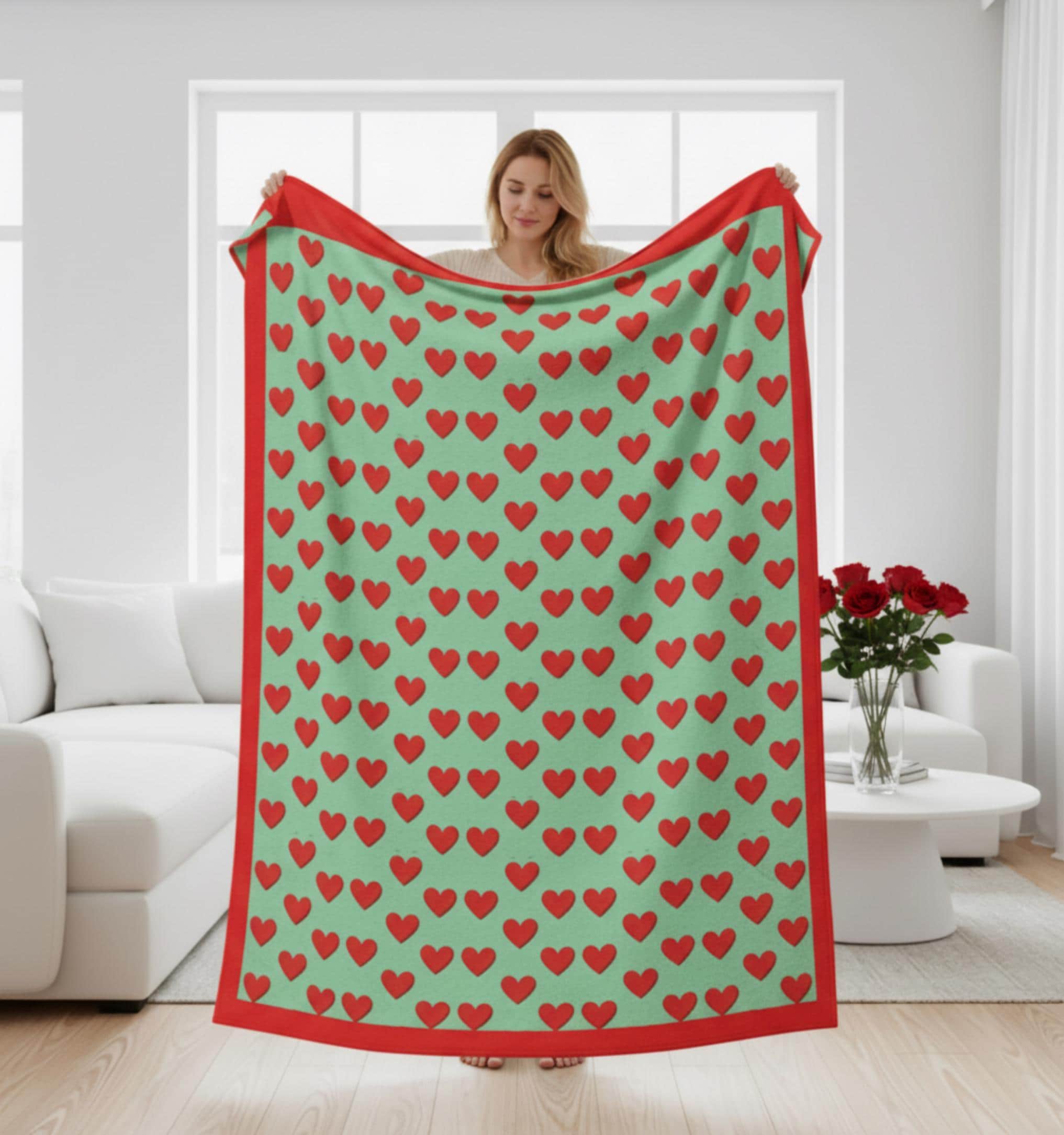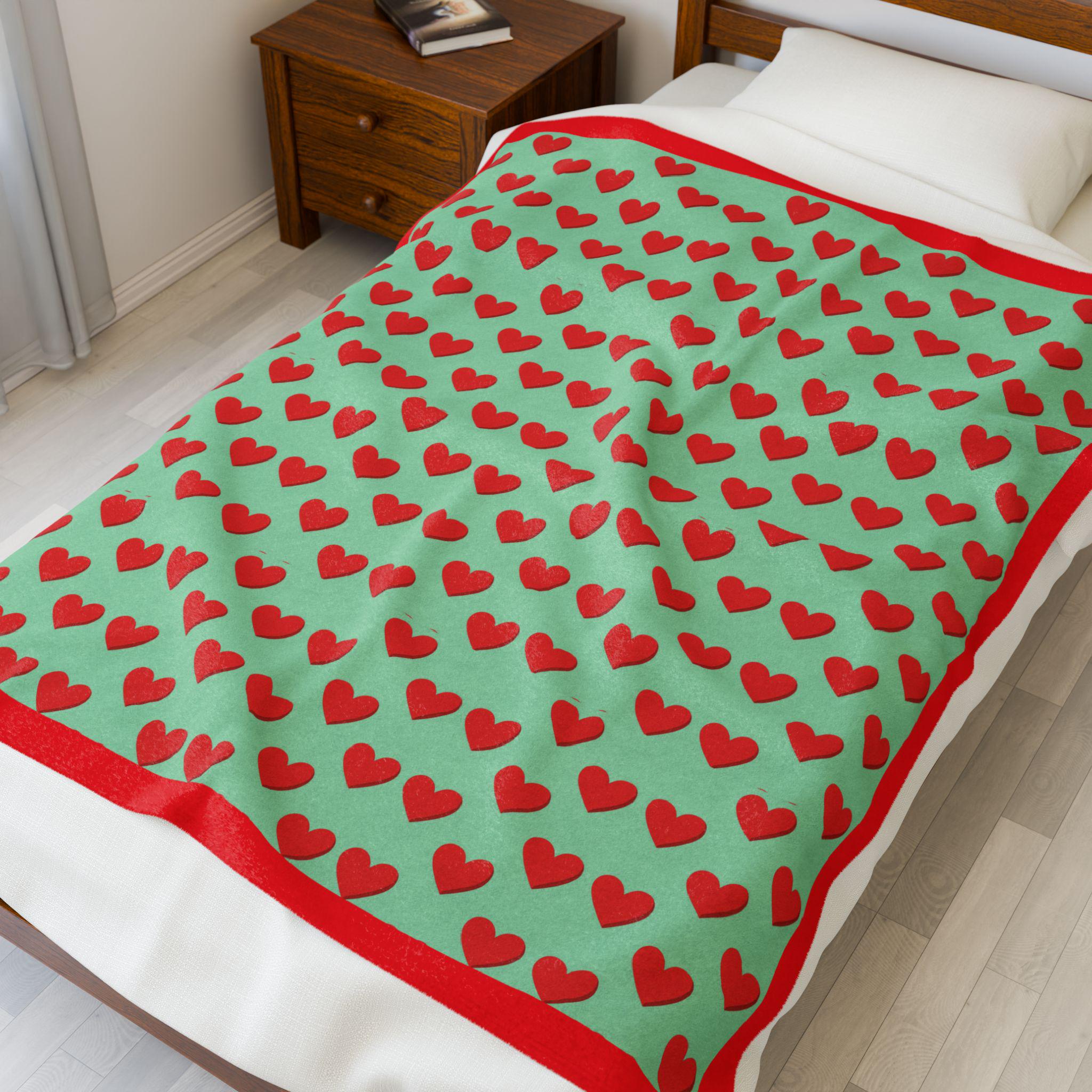 A velvety, heart-patterned plush blanket that brings warmth and color to quiet evenings and cozy corners.