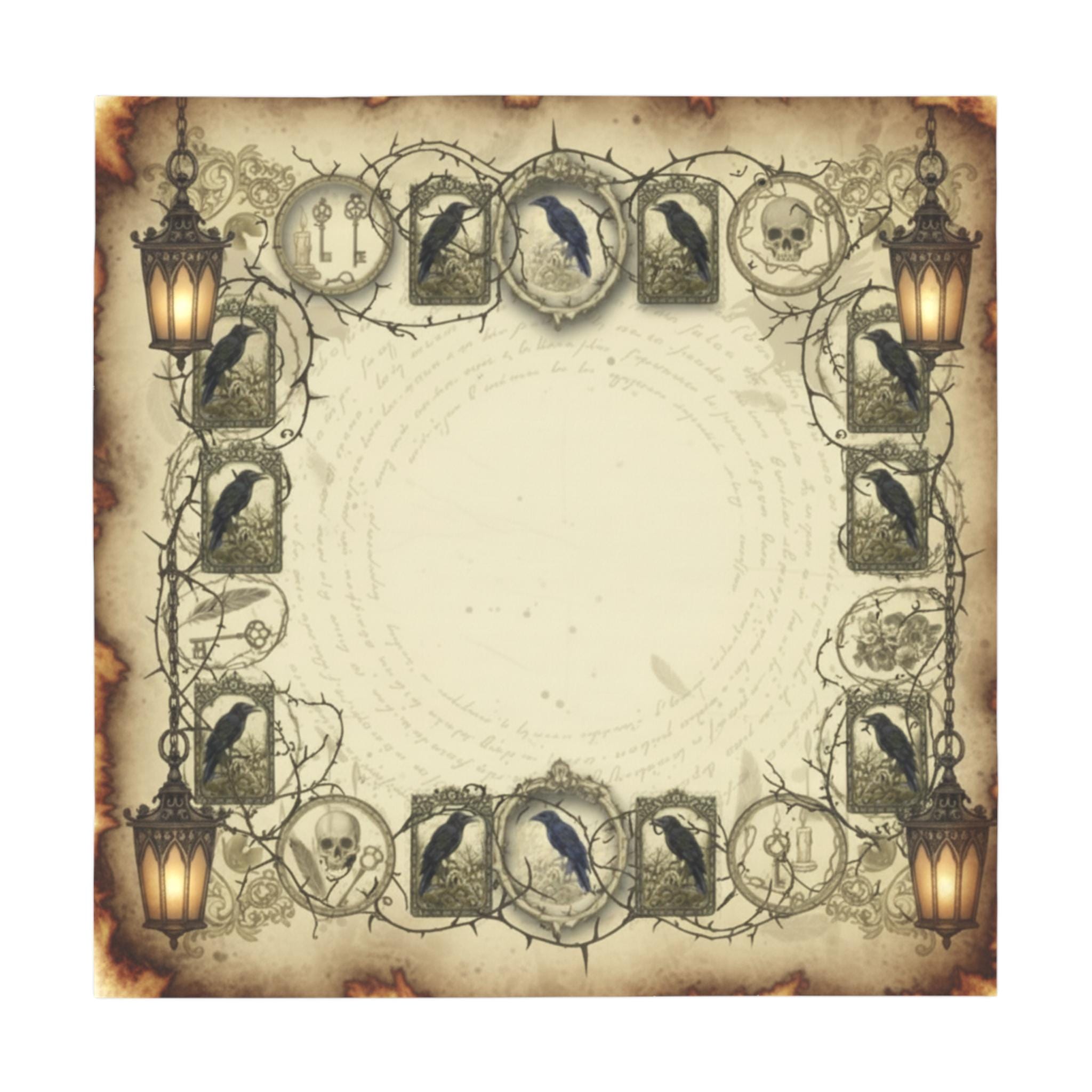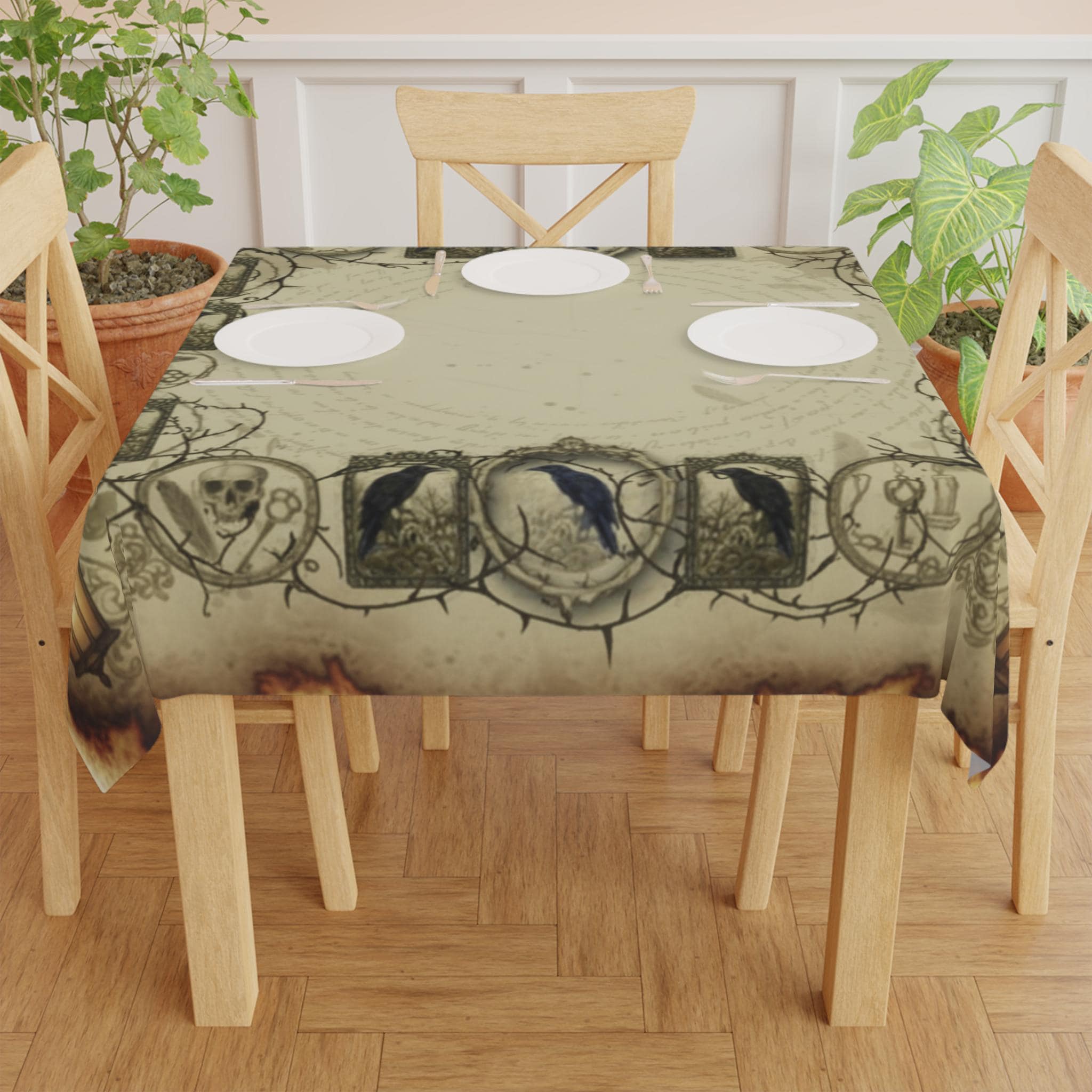 Raven & Celestial Parchment Tablecloth | Gothic Lanterns, Burned Edge
