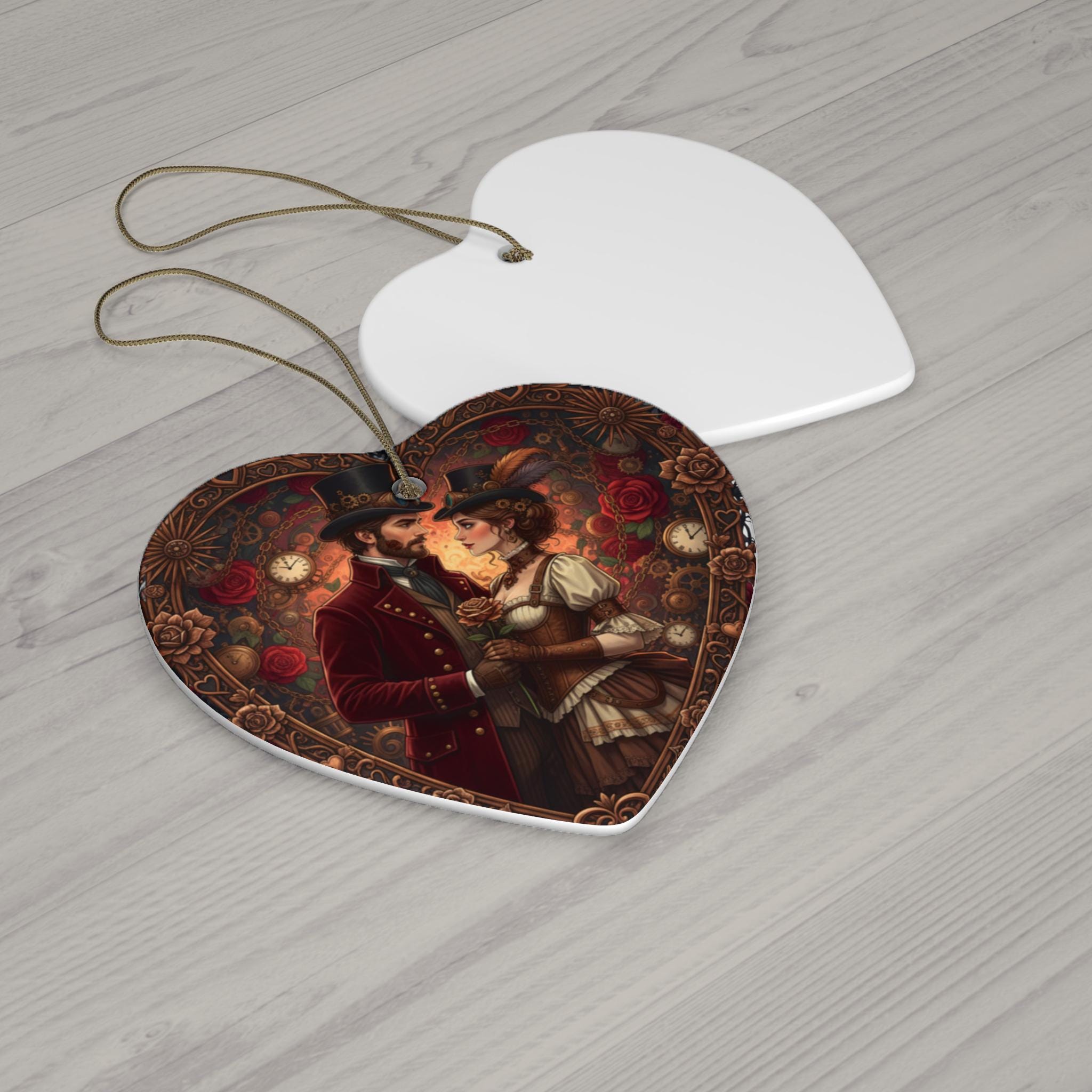 A glossy ceramic ornament that brings vintage romance and steampunk charm to your tree or decor.