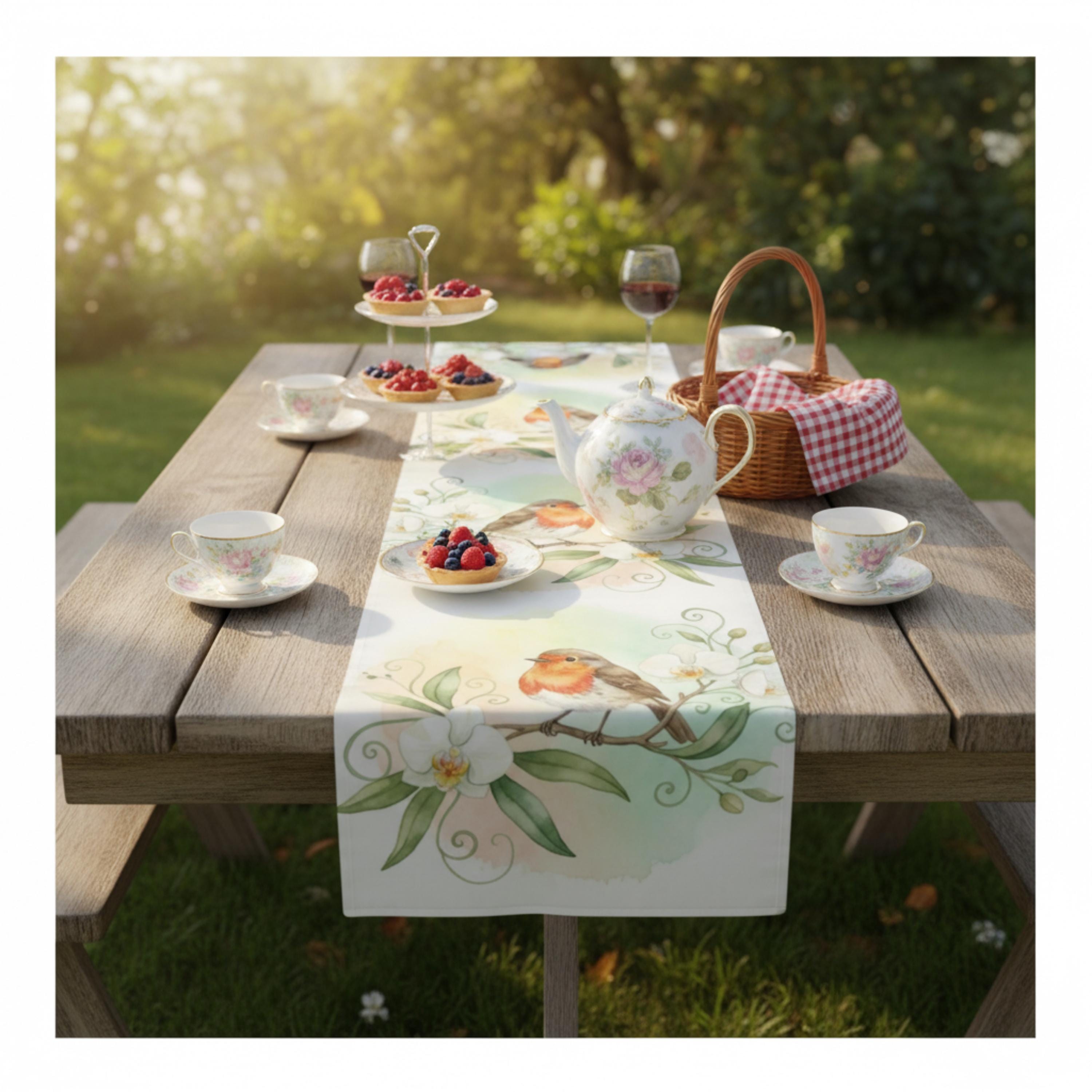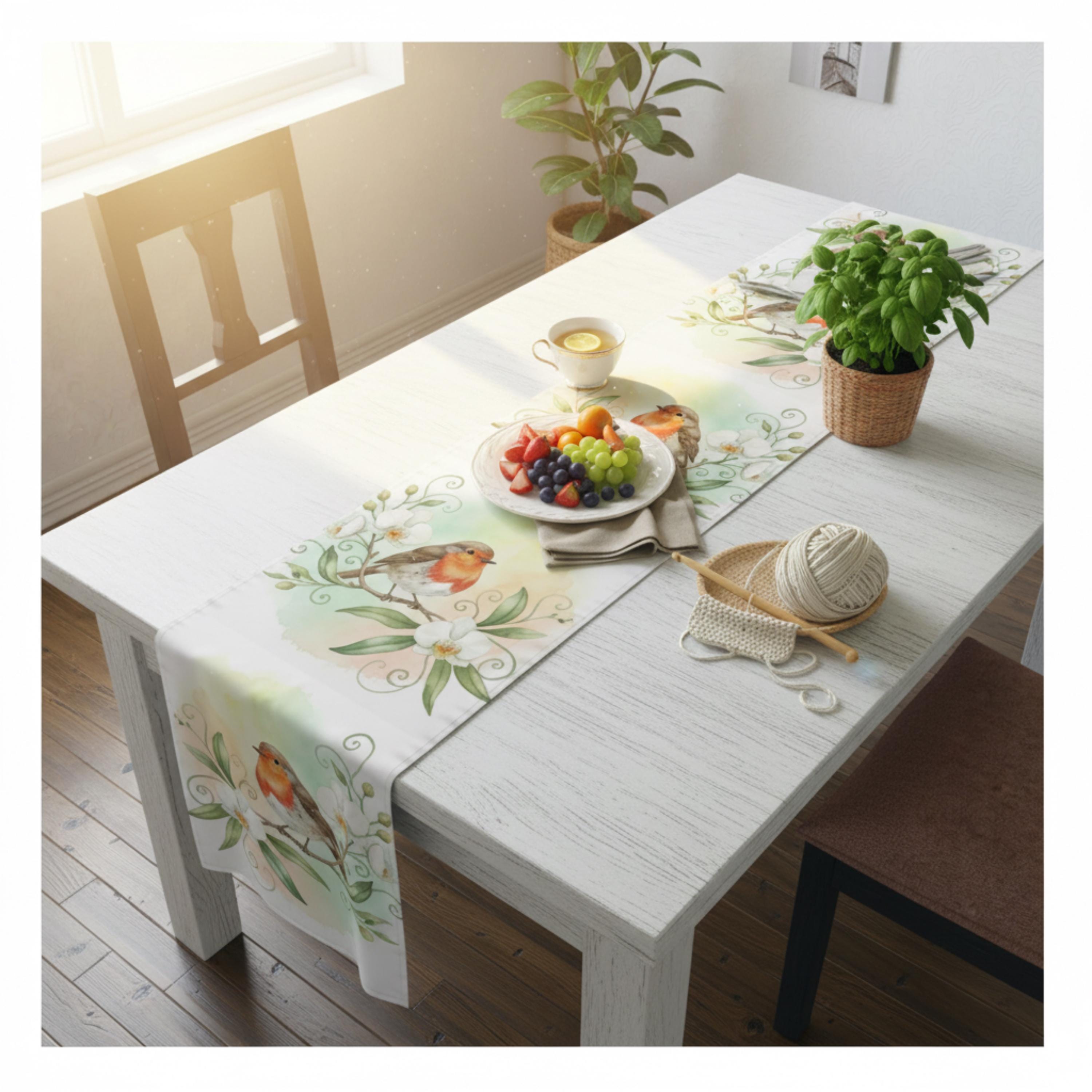 A soft, nature-inspired table runner that brings a quiet, cottage garden feeling to your dining table.