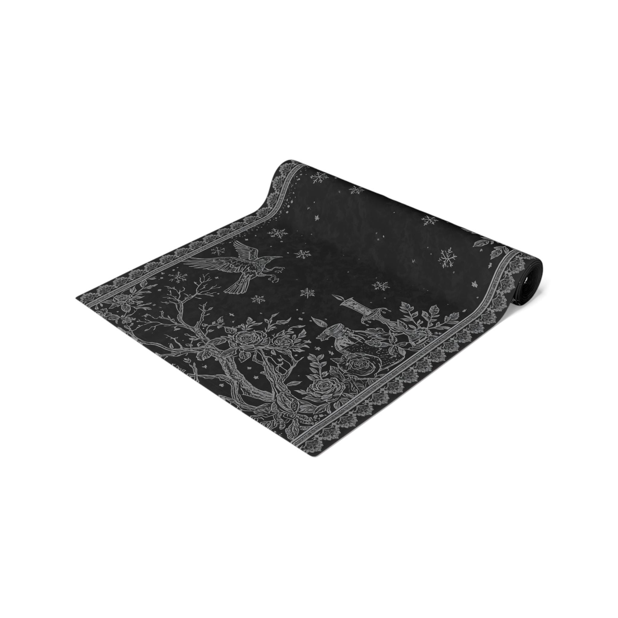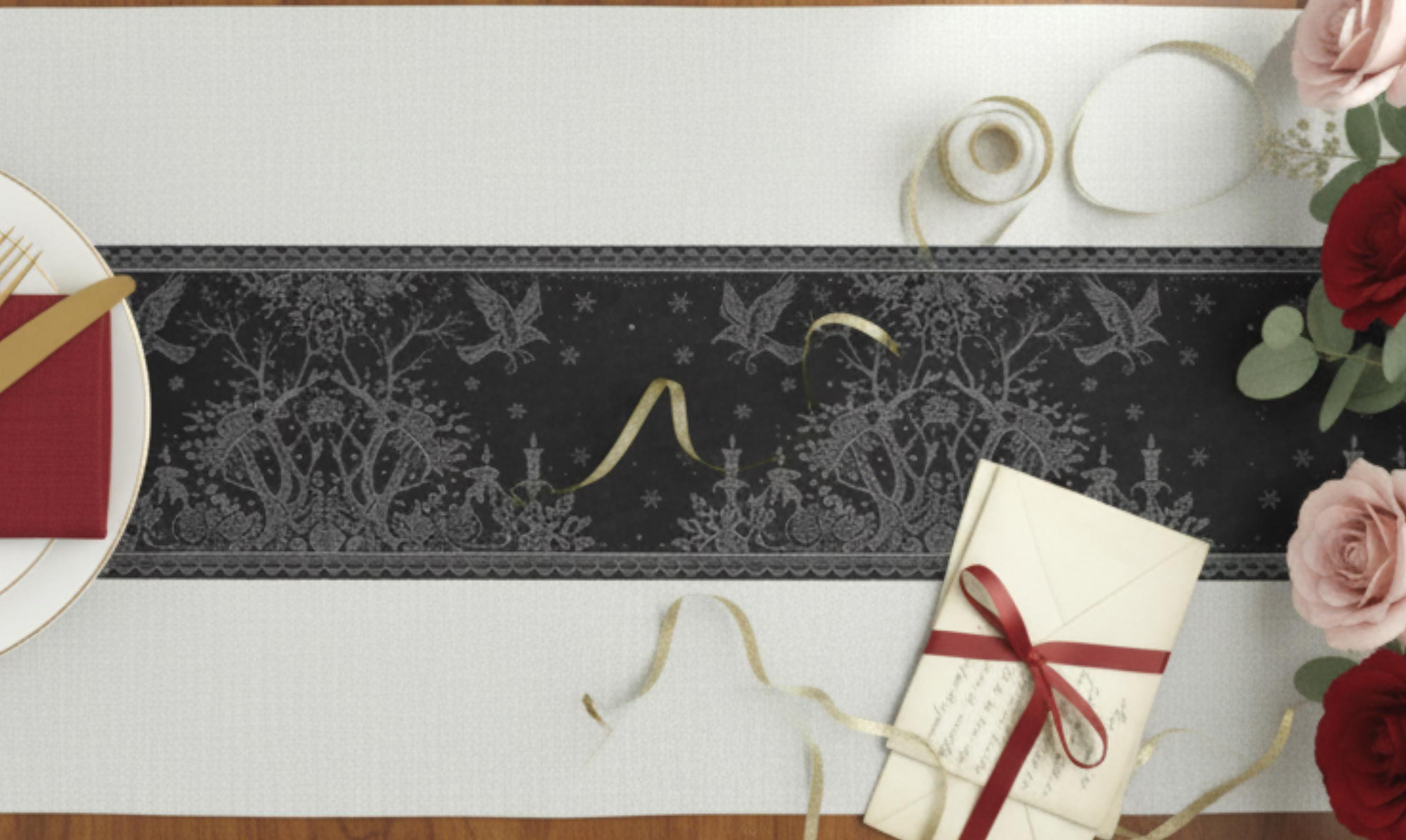 A dark-romantic table runner that brings Victorian baroque drama to your tabletop.