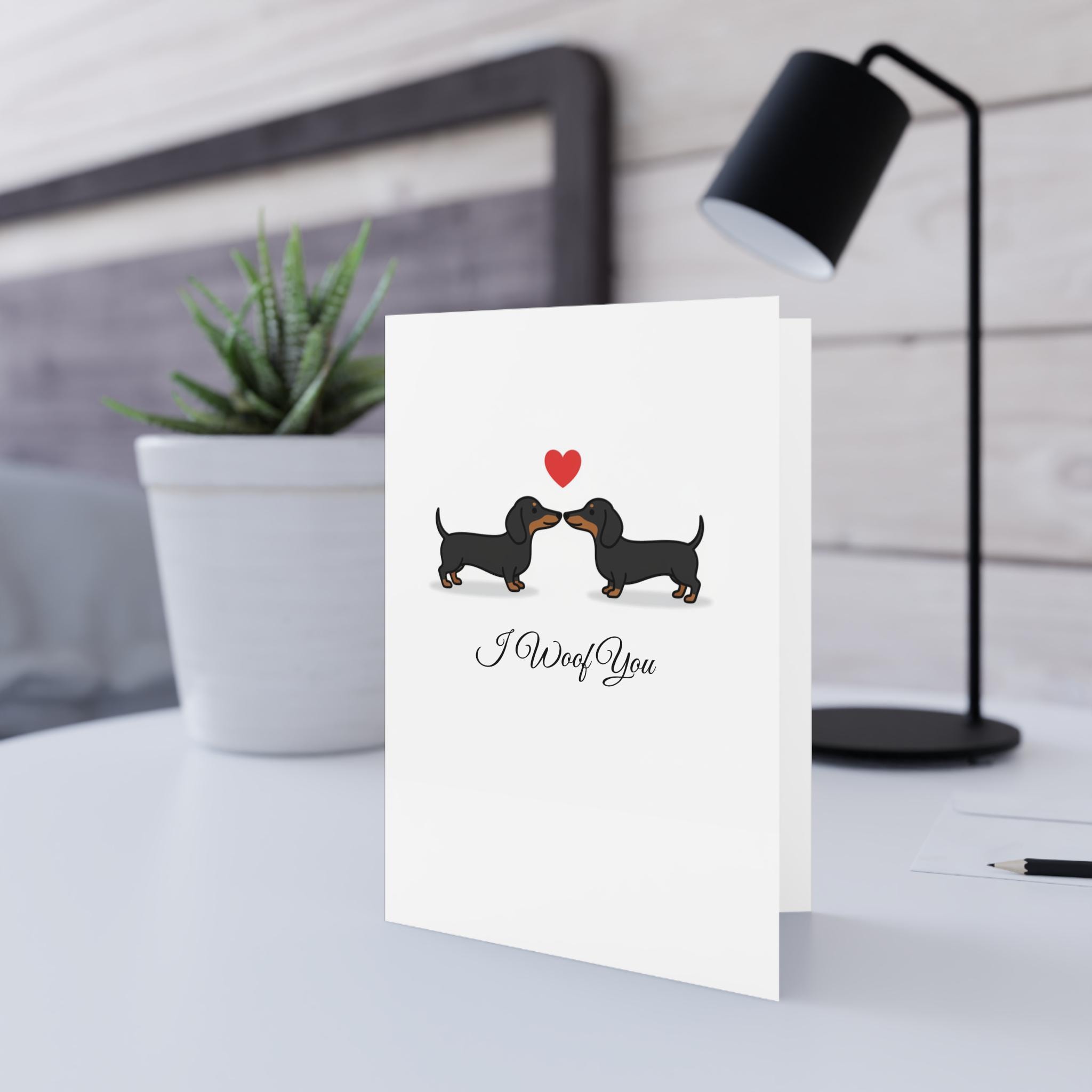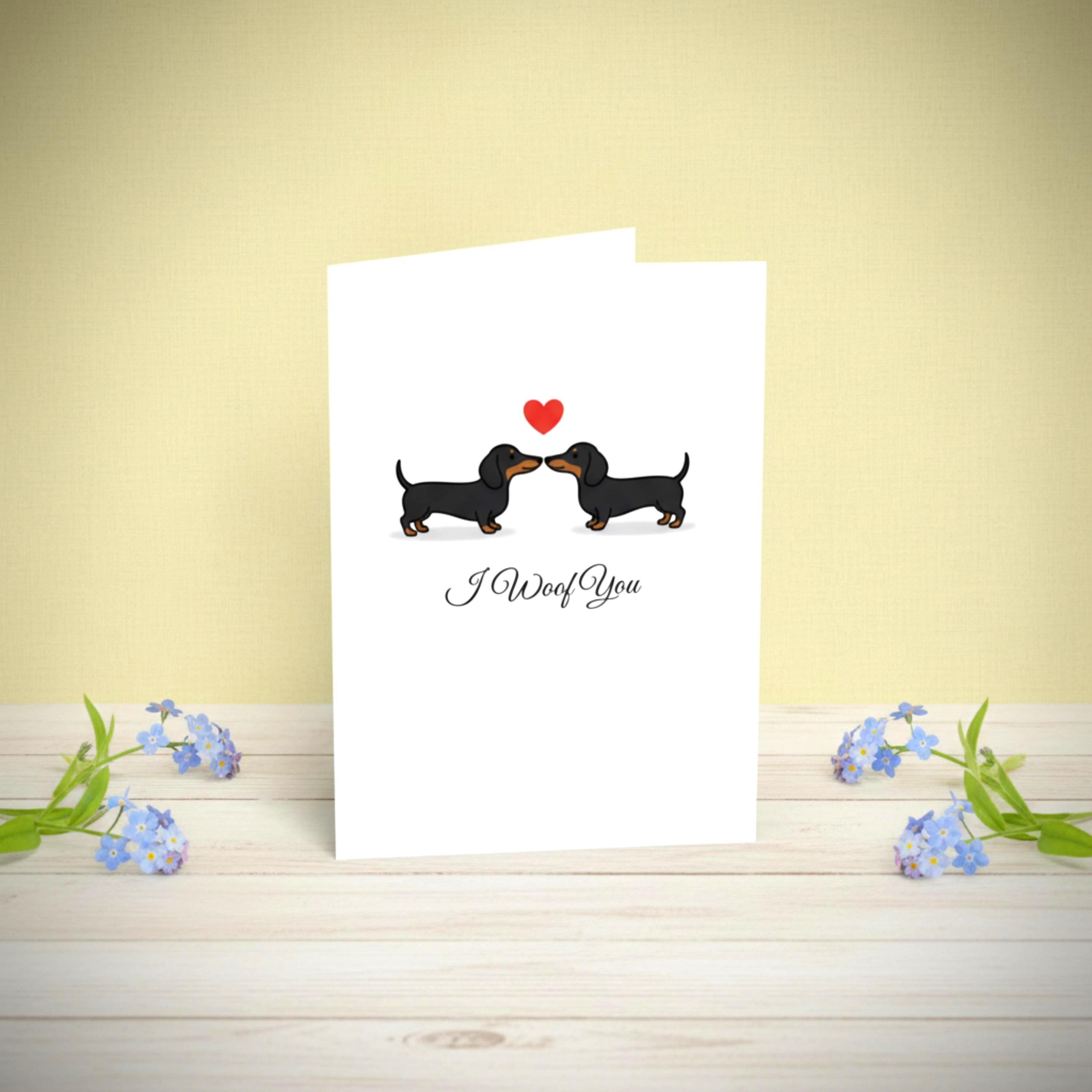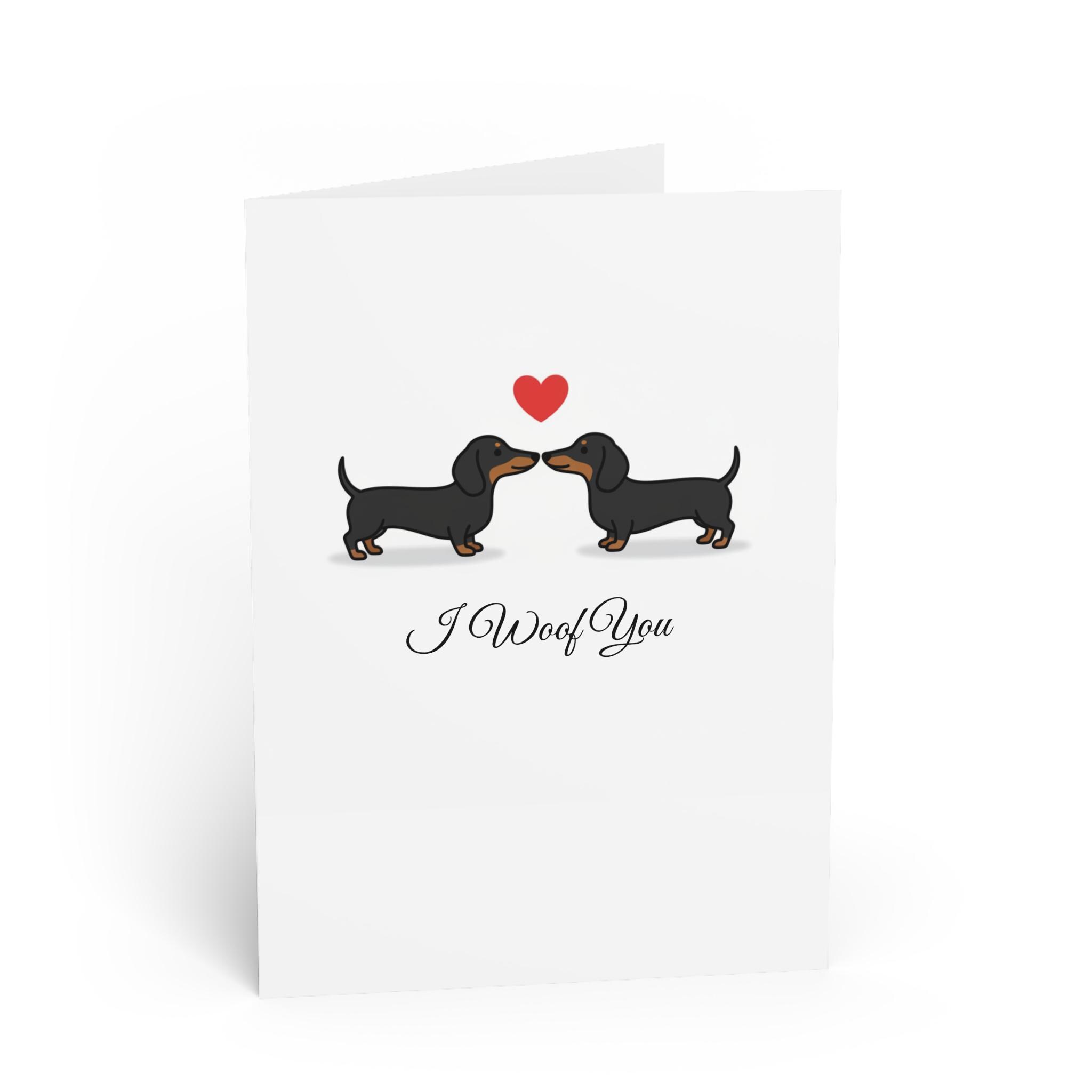 Celebrate love with a dash of paw-sitive energy! 🐾💌 This adorable "I Woof You" card features two sweet dachshunds nose-to-nose beneath a floating red heart — the perfect design to melt hearts this Valentine’s Day.