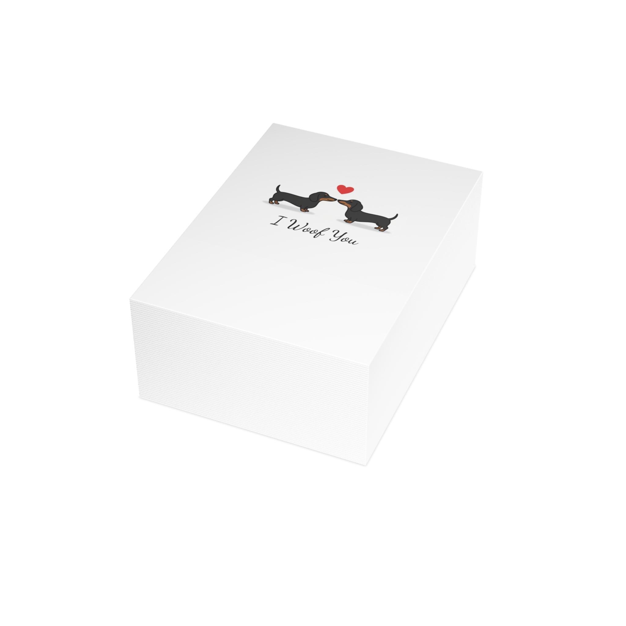 This adorable "I Woof You" card features two sweet dachshunds nose-to-nose beneath a floating red heart — the perfect design to melt hearts this Valentine’s Day.
