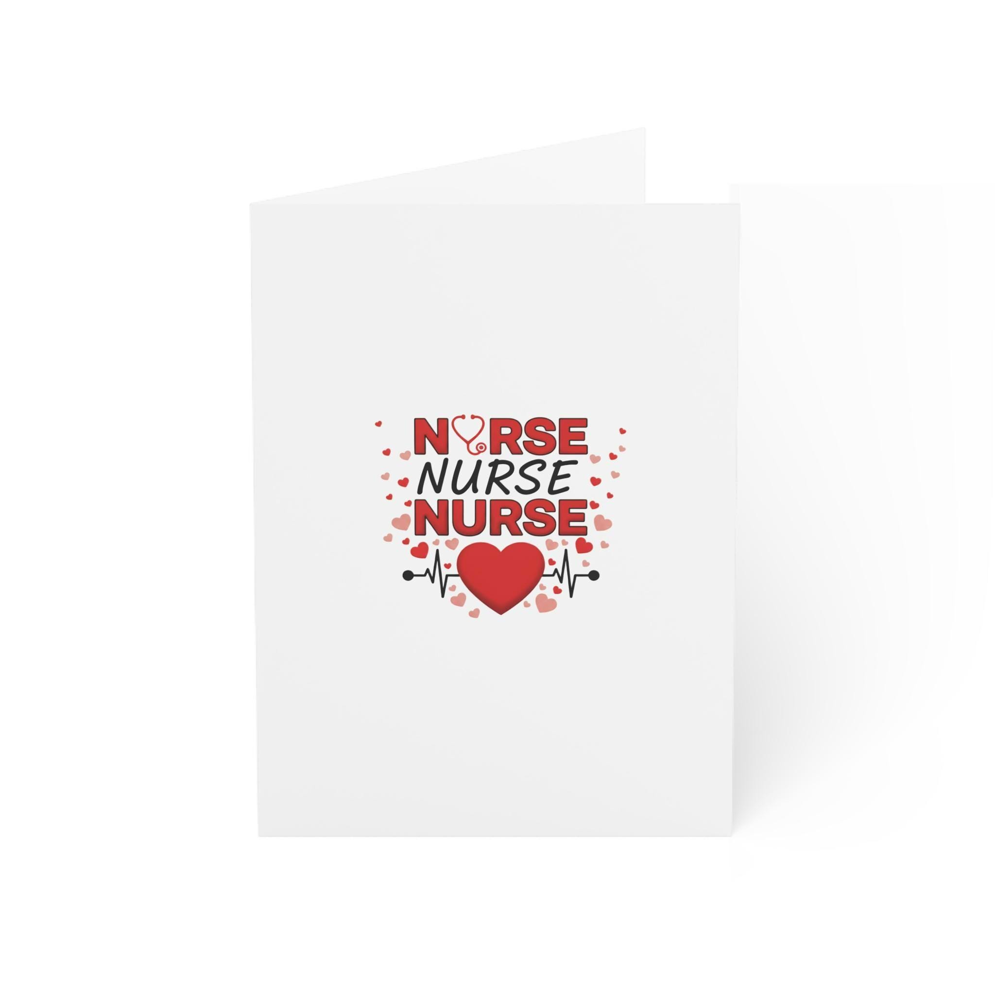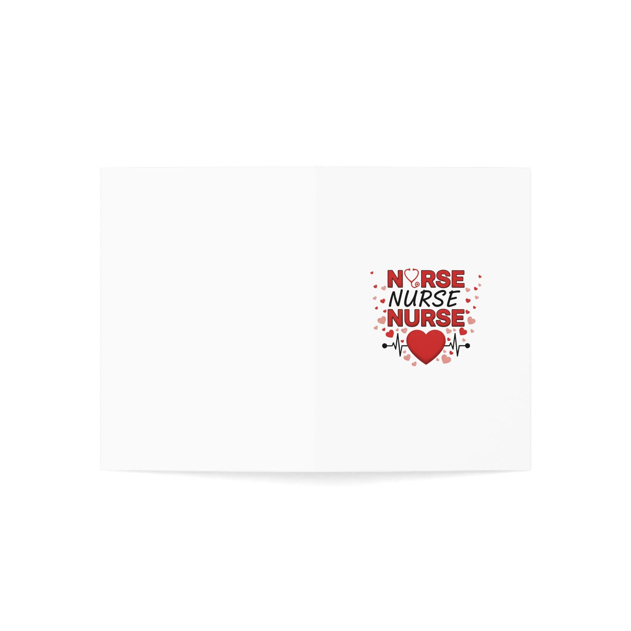 Three bold red lines of NURSE, framed by a stethoscope-shaped U and finished with a heartbeat heart below — this greeting card speaks directly to the life lived in scrubs. It reads like a quiet salute: confident, steady, and full of care.