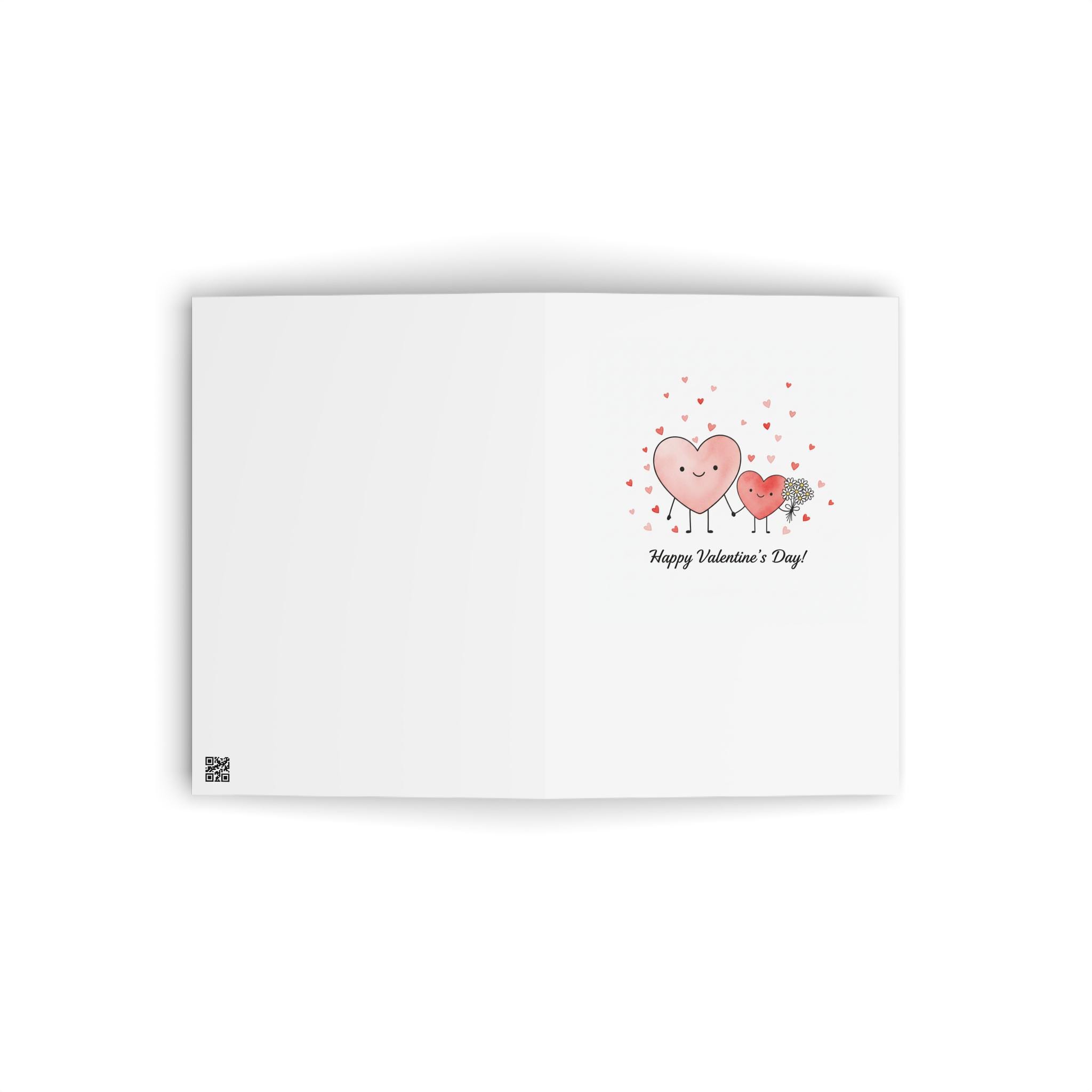 The soft pink and coral palette and gentle linework create a warm, whimsical moment that feels personal and sincere. Leave a handwritten note inside or let the simple “Happy Valentine’s Day!” message carry the feeling: this card brings a shy, heartfelt smile to someone you love and keeps the focus on connection rather than grand gestures.