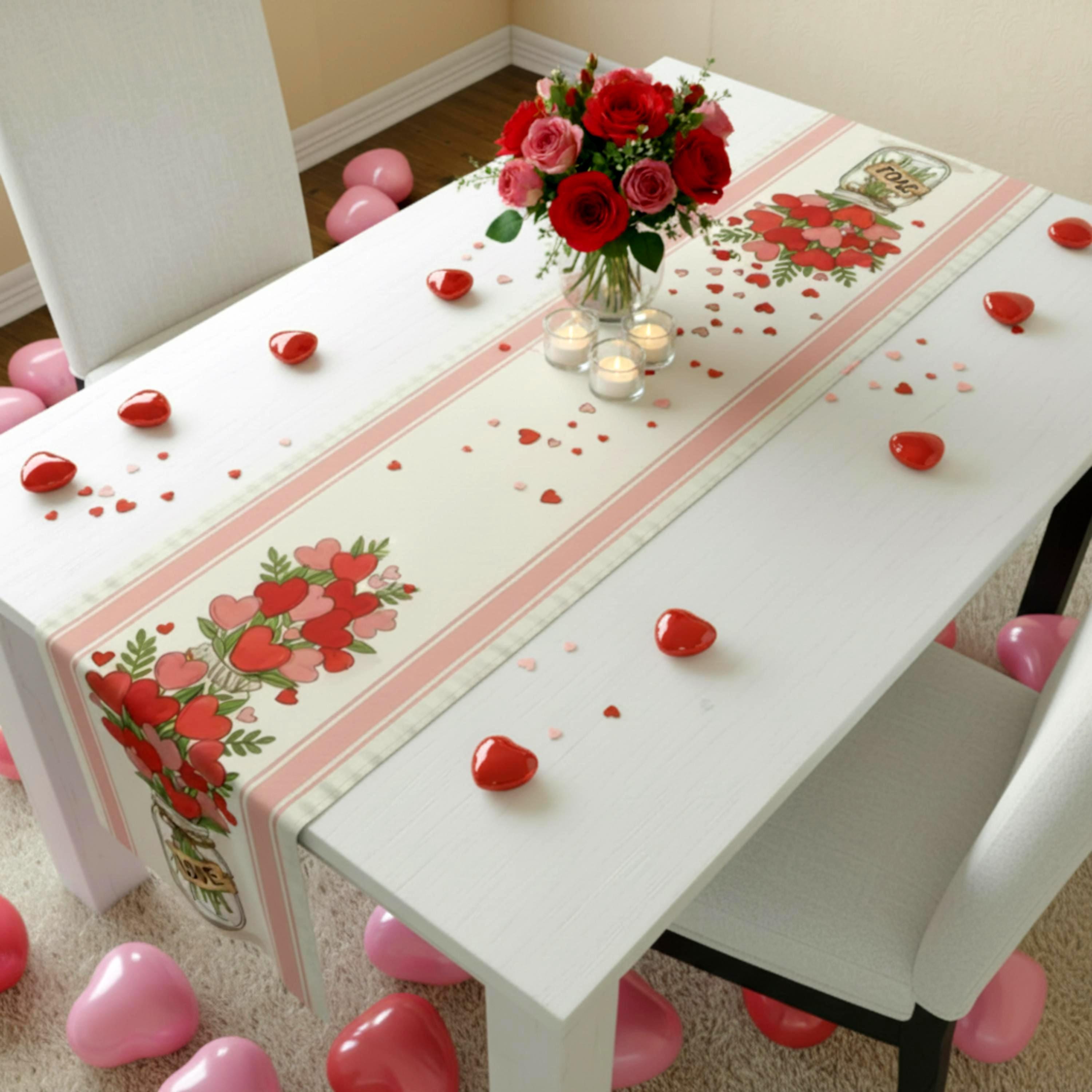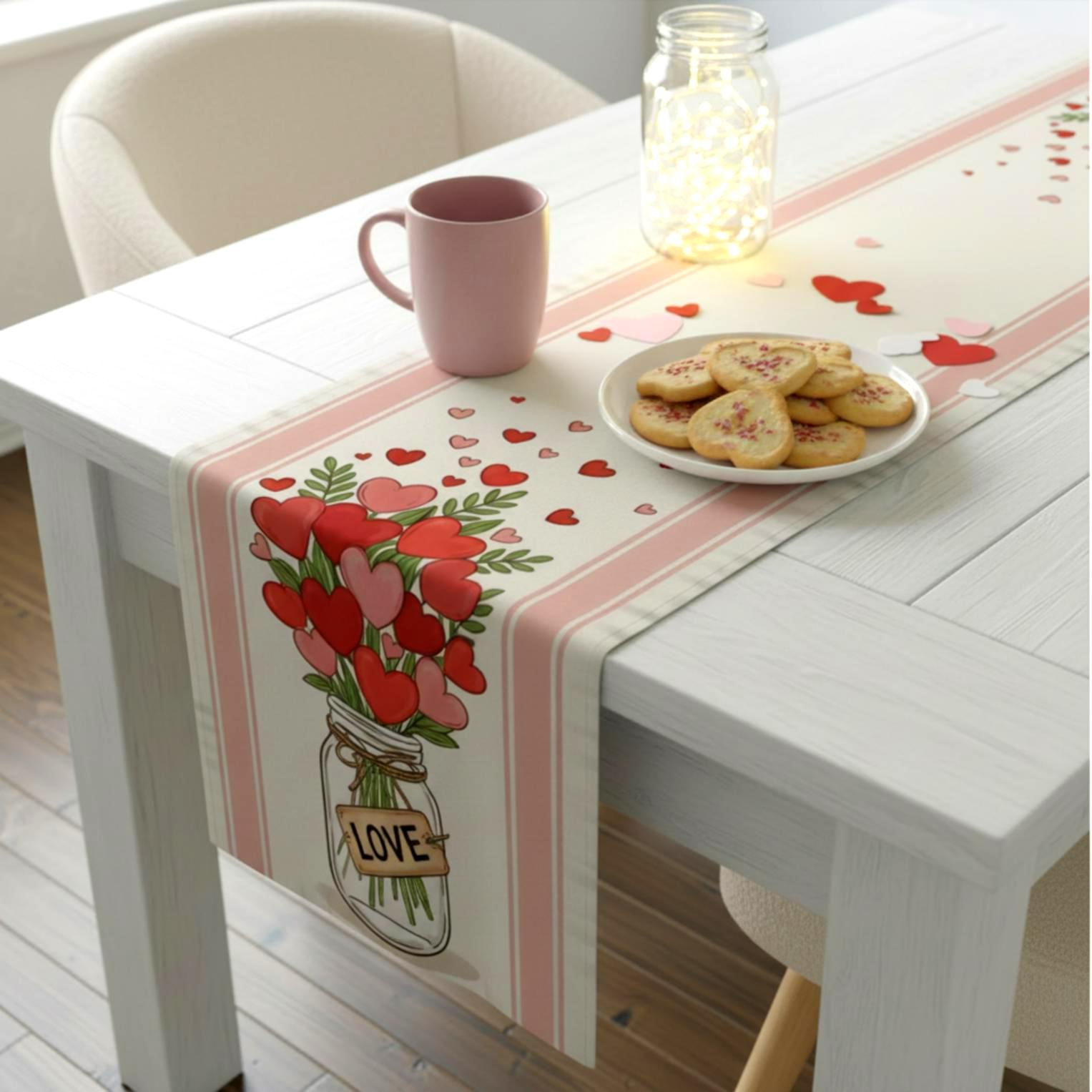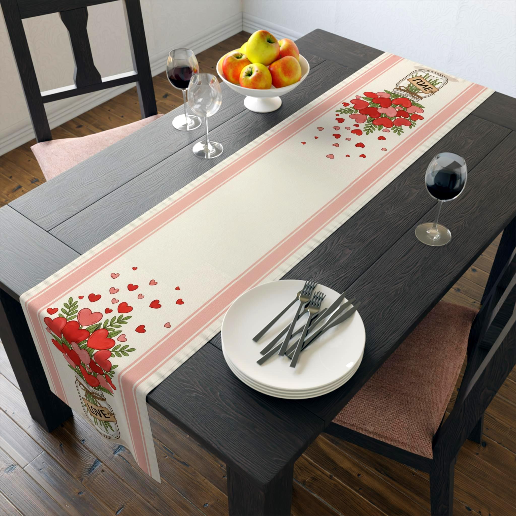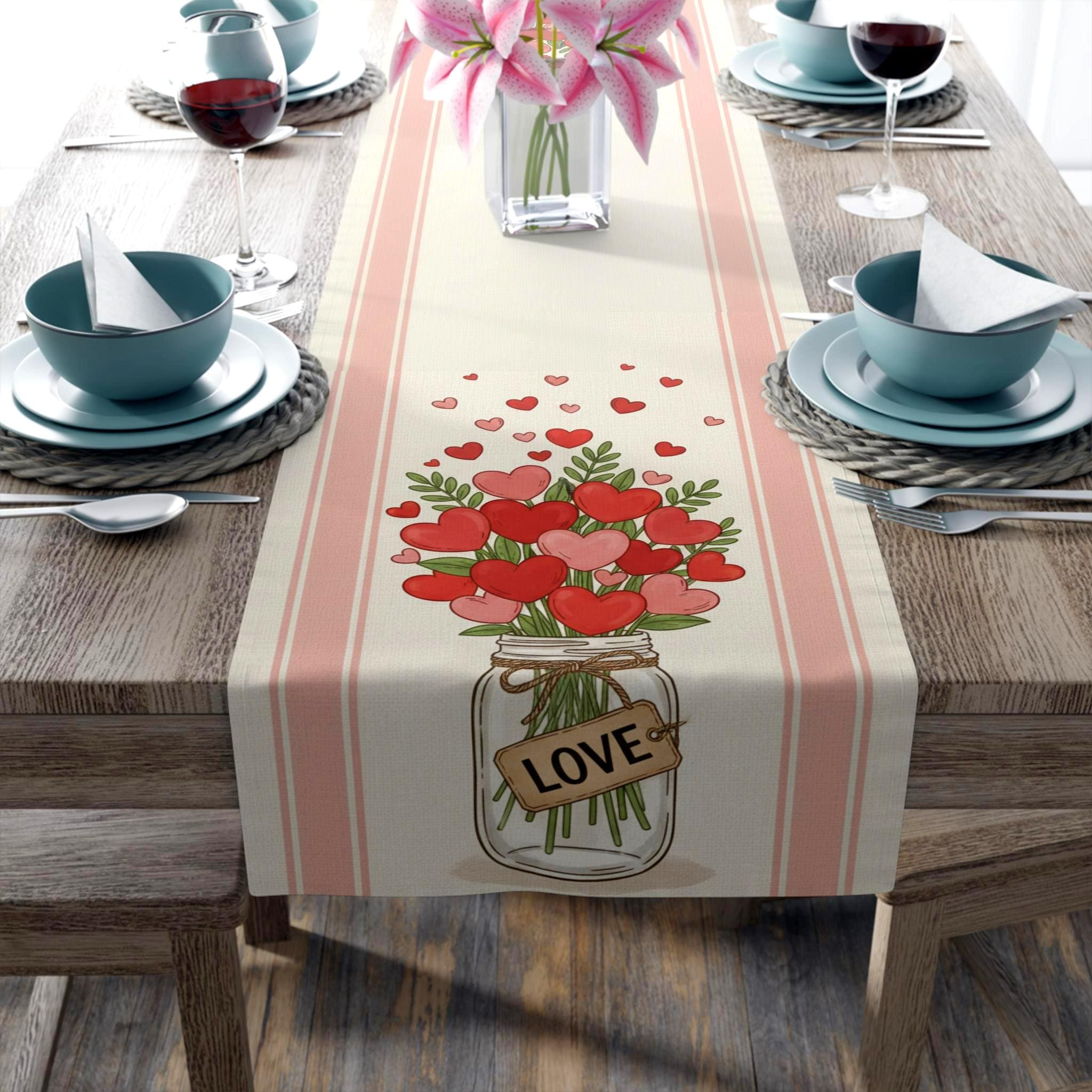 Soft pink tones and floating hearts make it perfect for brunch with the girls, a cosy dinner, or a simple seasonal refresh for your dining room.