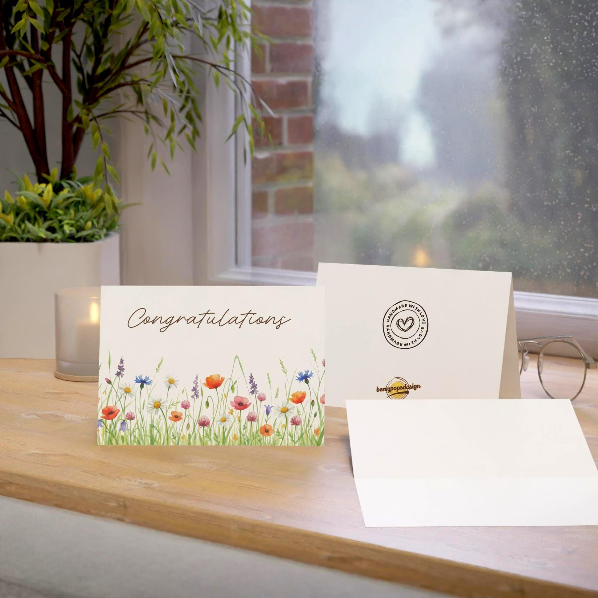 Printable Flower Congratulations Card: Elegant Minimalist Cottagecore Scandinavian Design (Sizes 5.5x4.3 approx, Digital Download)