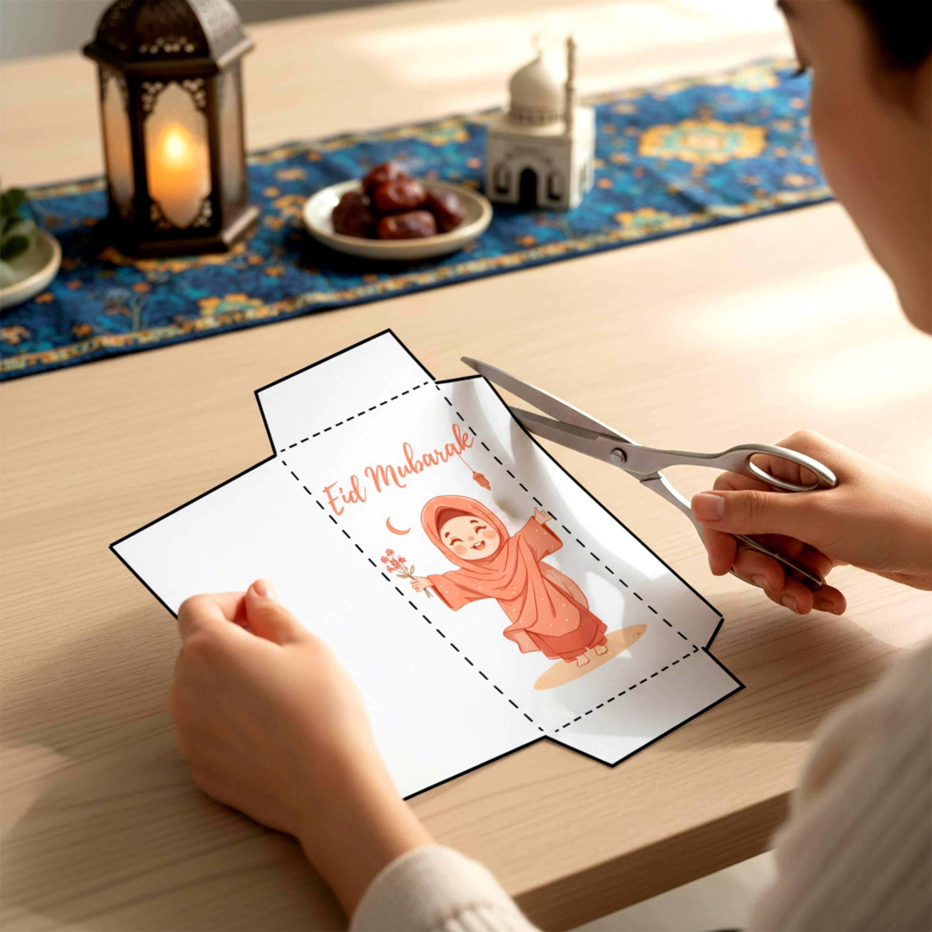 4️⃣ Cut, fold, and glue for a perfect Eid envelope