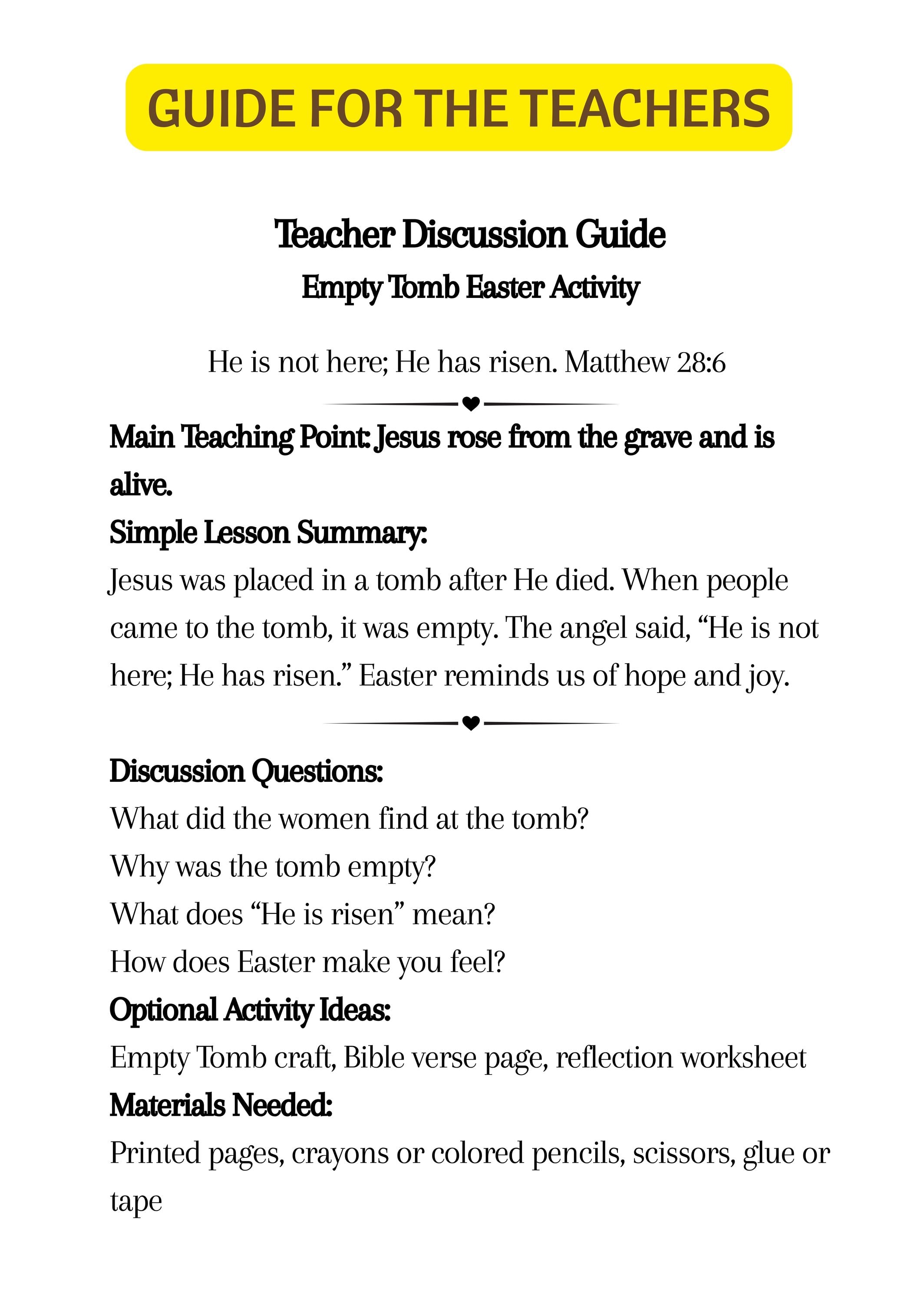 This Empty Tomb Craft printable is a meaningful Easter activity for kids that combines hands-on fun with faith-based learning. It is a lovely choice for Easter Sunday, Sunday school, home school lessons, or family Bible time.