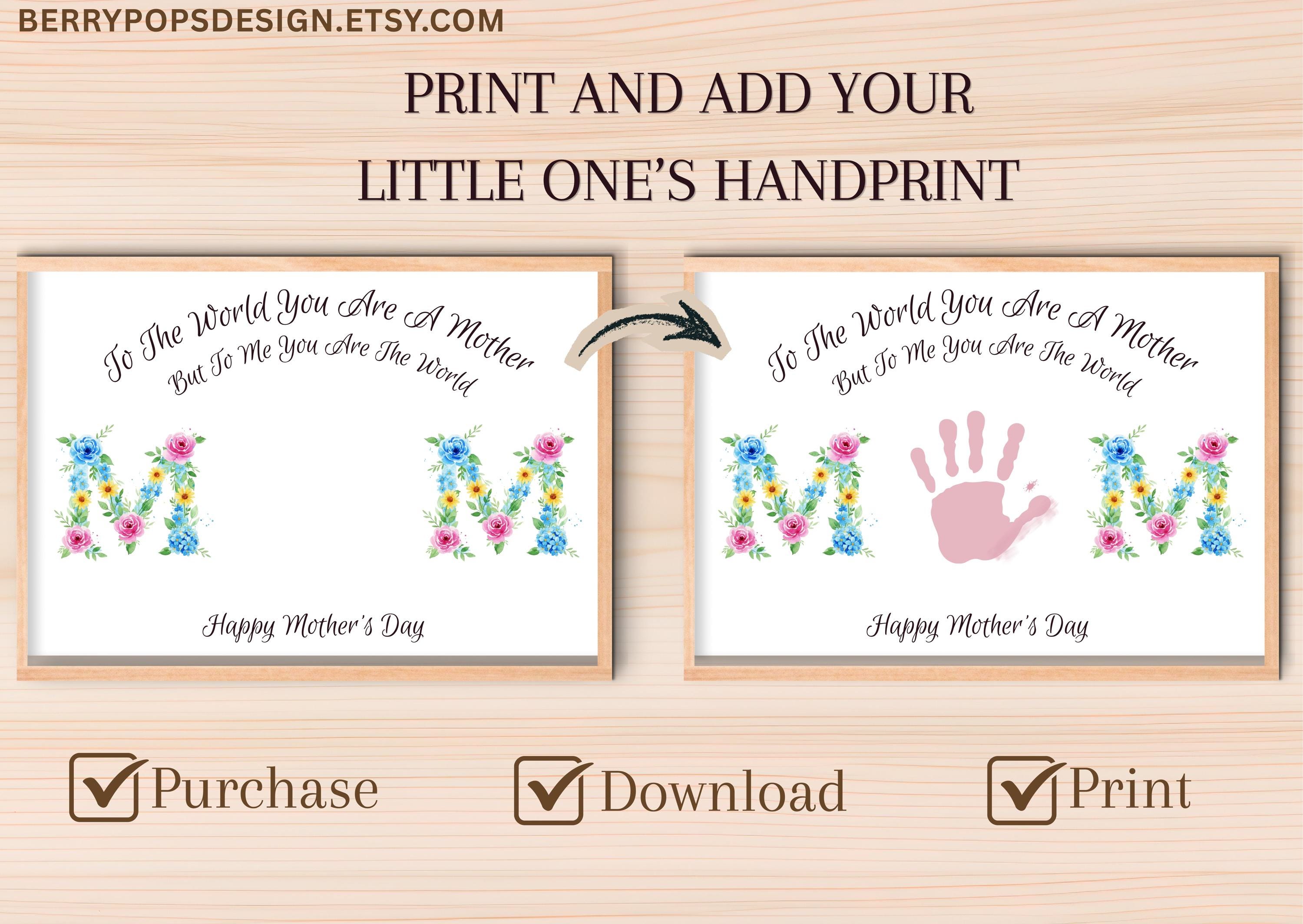 Capture a precious moment in time with our beautiful Mother’s Day Handprint Keepsake Craft Printable. This instant download features a beautiful floral "MOM" design, leaving ample space for your child's unique handprint to complete the word MOM. It includes a heartwarming quote: