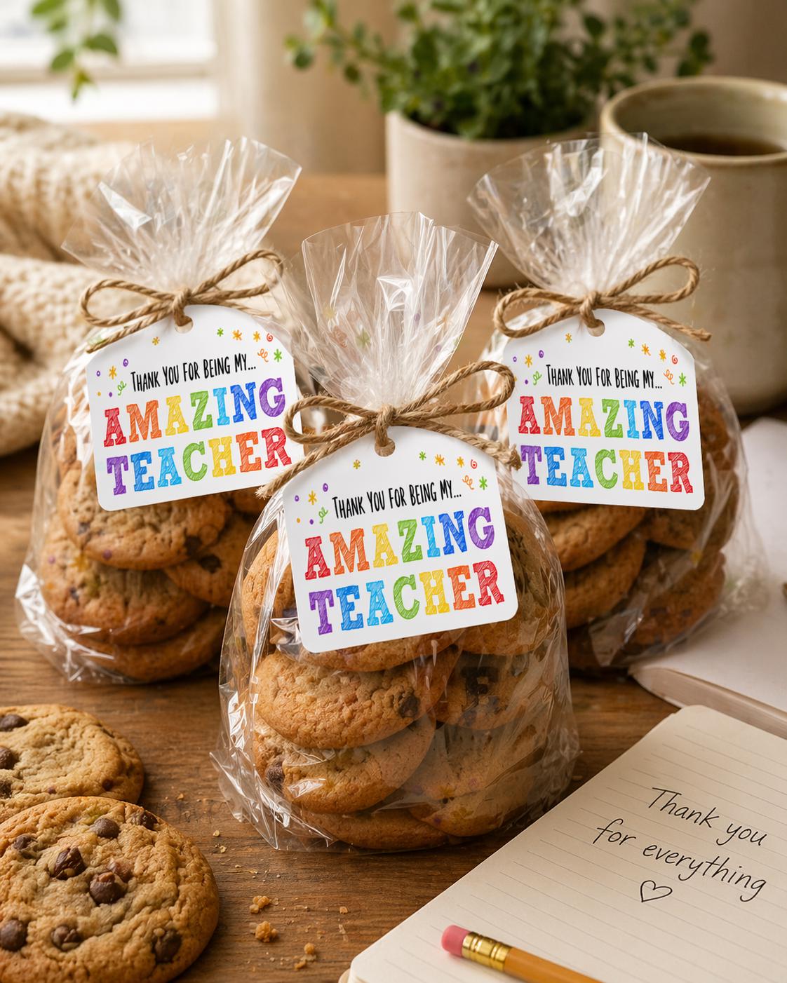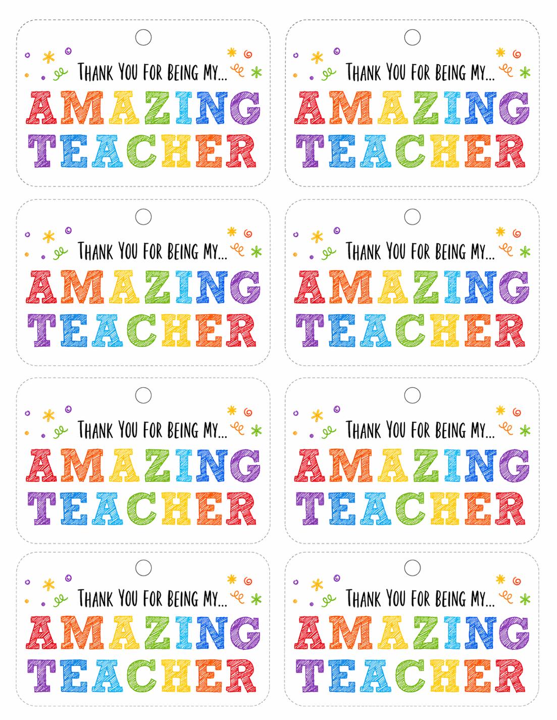 Printable “thank you for being my amazing teacher” Teacher Appreciation Week gift tags for teacher colorful gift tags. This fun colorful design is ready to download instantly and print, then attached to your gift for a personal touch.