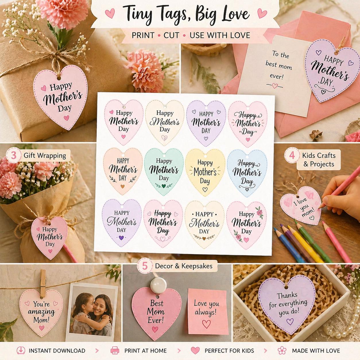 💝WAYS TO USE: ✔ Gift tags for Mother's Day presents ✔ Card decorations & envelope seals ✔ Scrapbooks & memory keepsakes ✔ Kids craft activities ✔ Treat bags & handmade gifts ✔ Home decor or fridge display